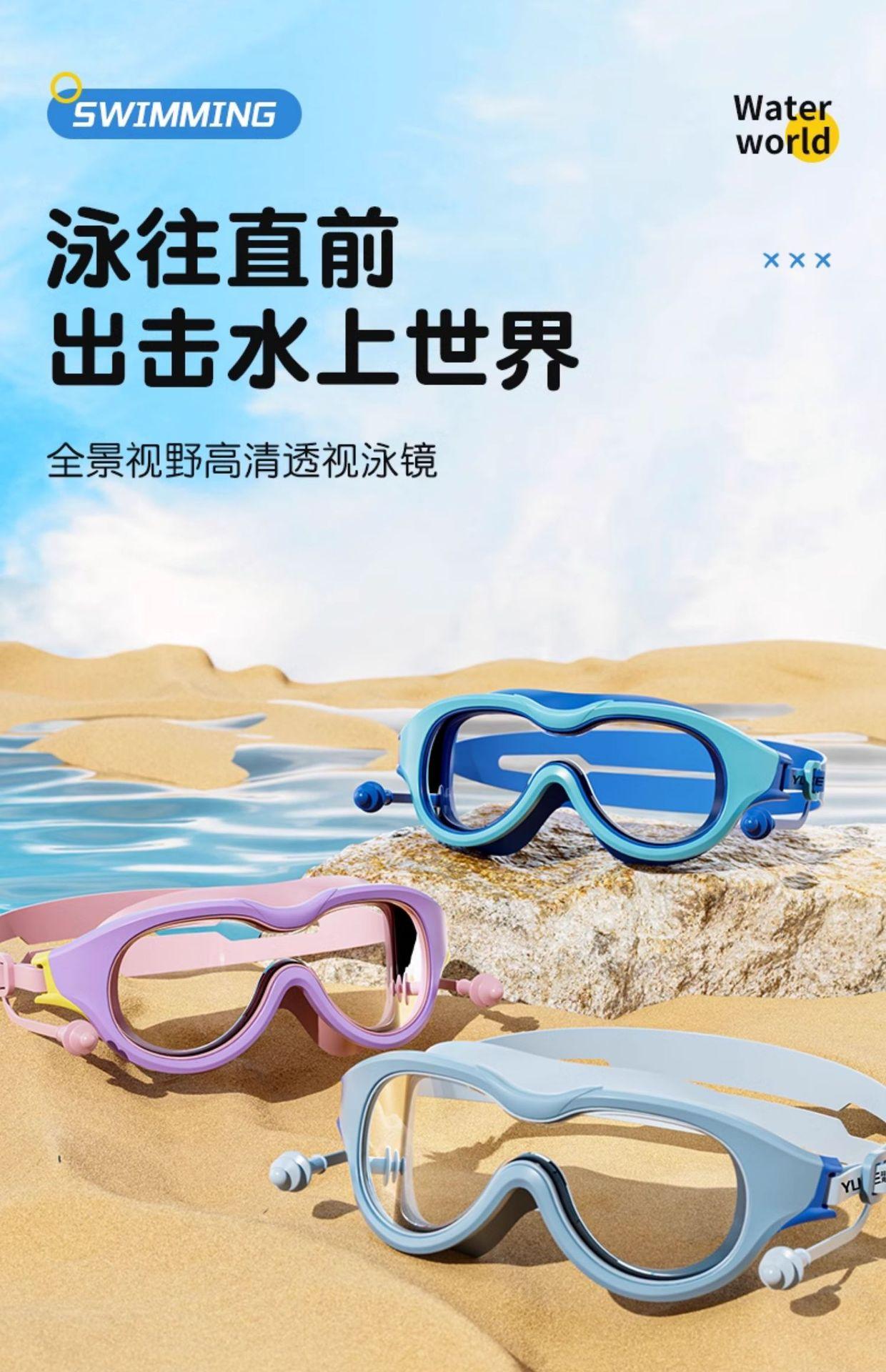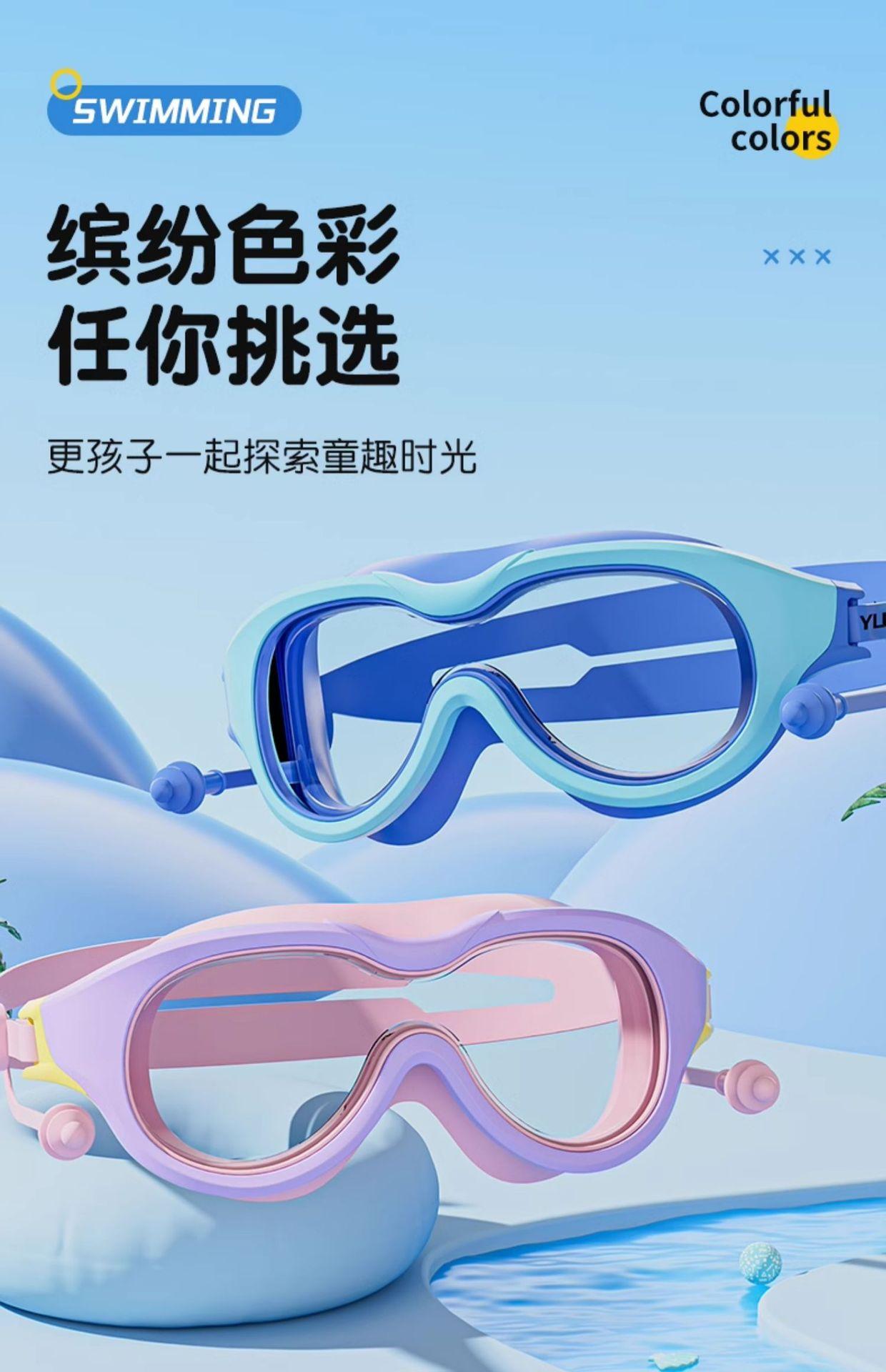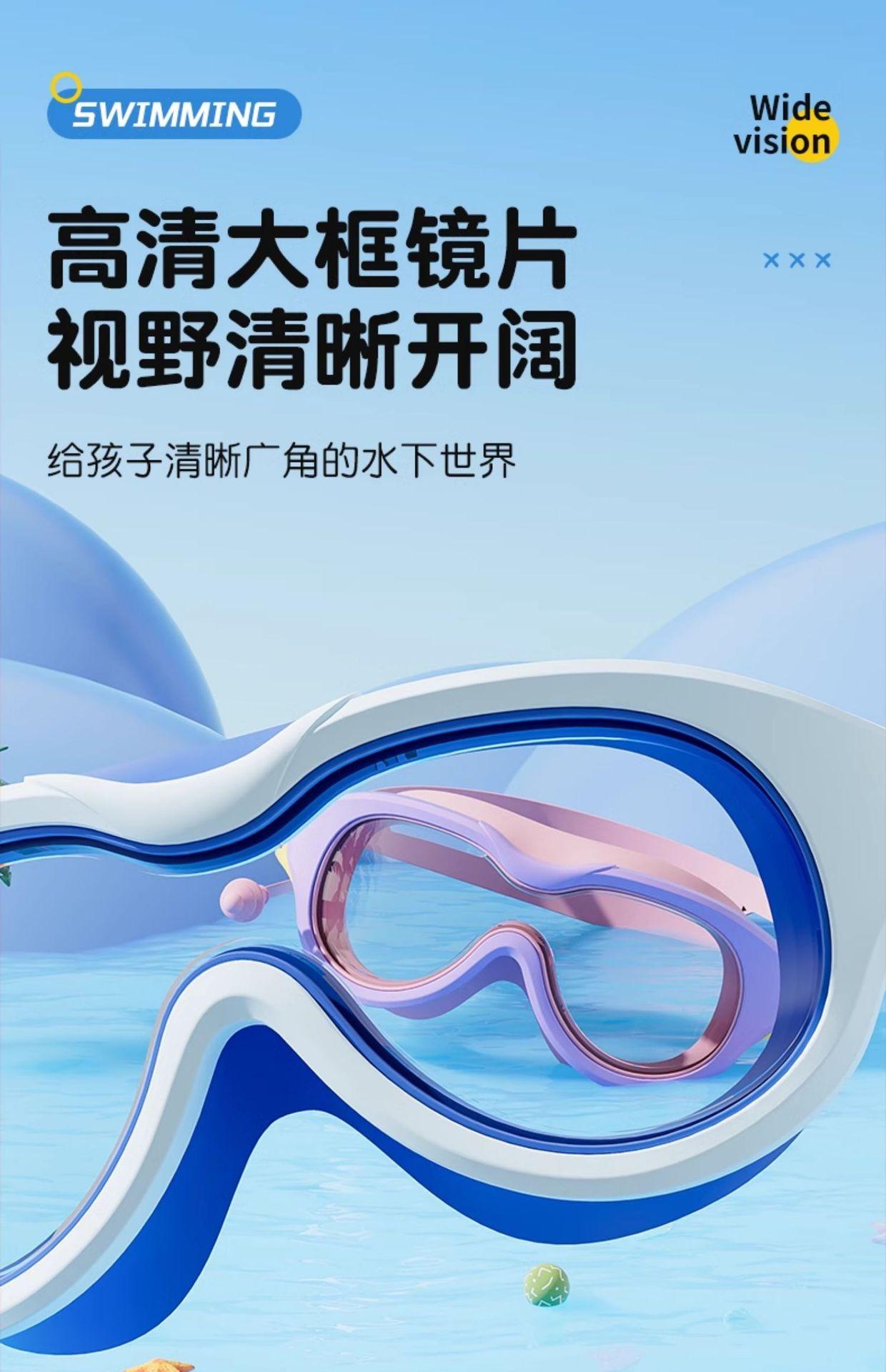 Gafas de natación para niños, montura grande, impermeables, antivaho, HD, gorro de buceo profesional, juego de gafas de natación para niños y niñas