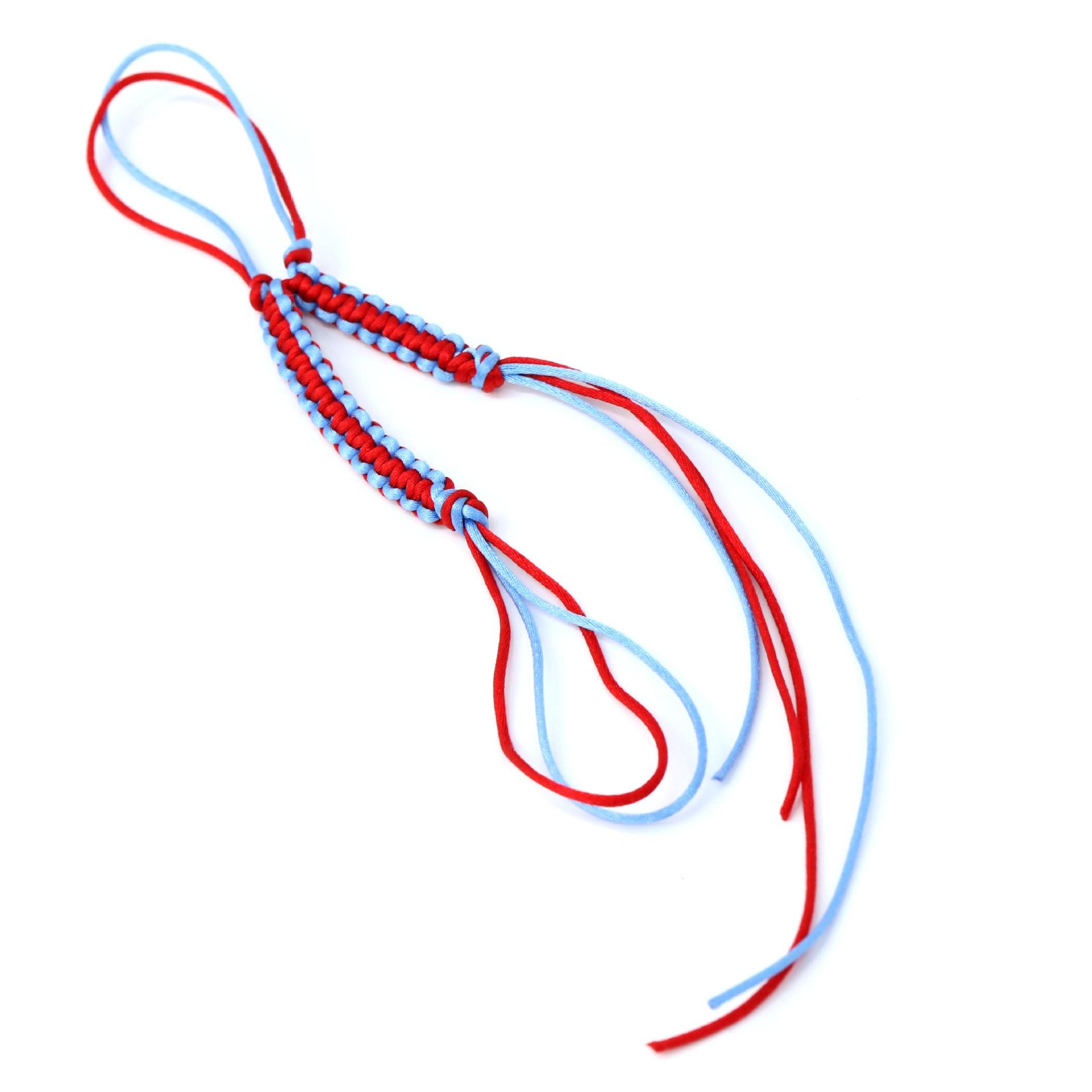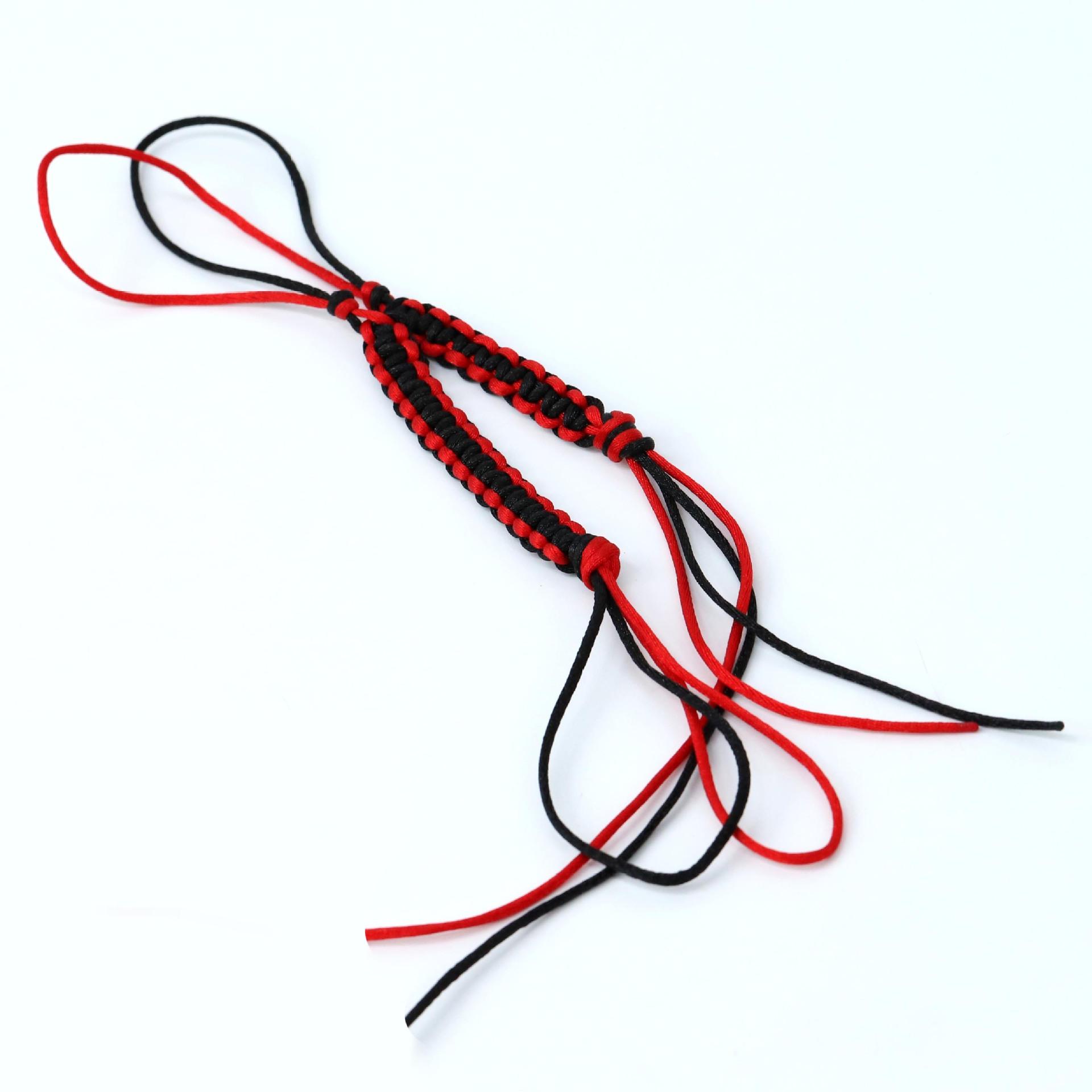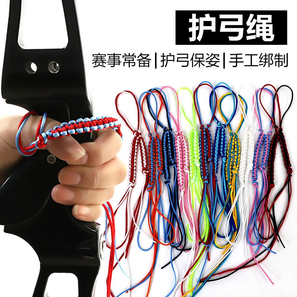 Para reducir la influencia de la mano sobre el arco, los jugadores de recurvo de competición suelen empujarlo en lugar de sujetarlo. Por lo tanto, el arco saltará hacia adelante tras disparar una flecha. Para evitar que el arco se caiga, es necesario atarlo a la mano con una cuerda.Coloque un extremo de la cuerda en su dedo índice. Después de sujetar el arco, enróllelo alrededor del extremo delantero del mango y coloque el otro extremo de la cuerda en su pulgar.