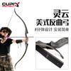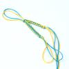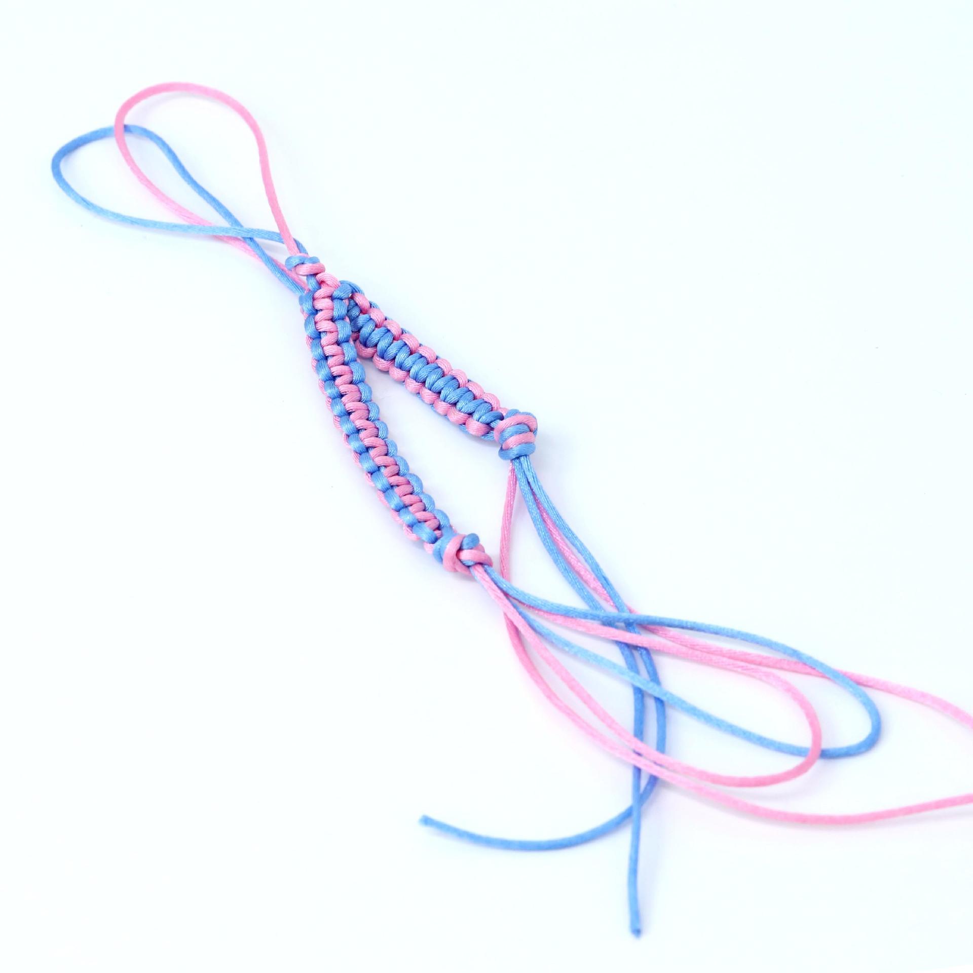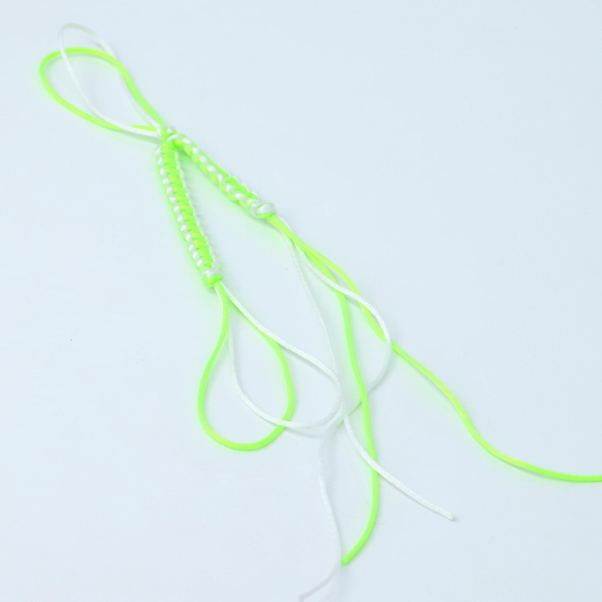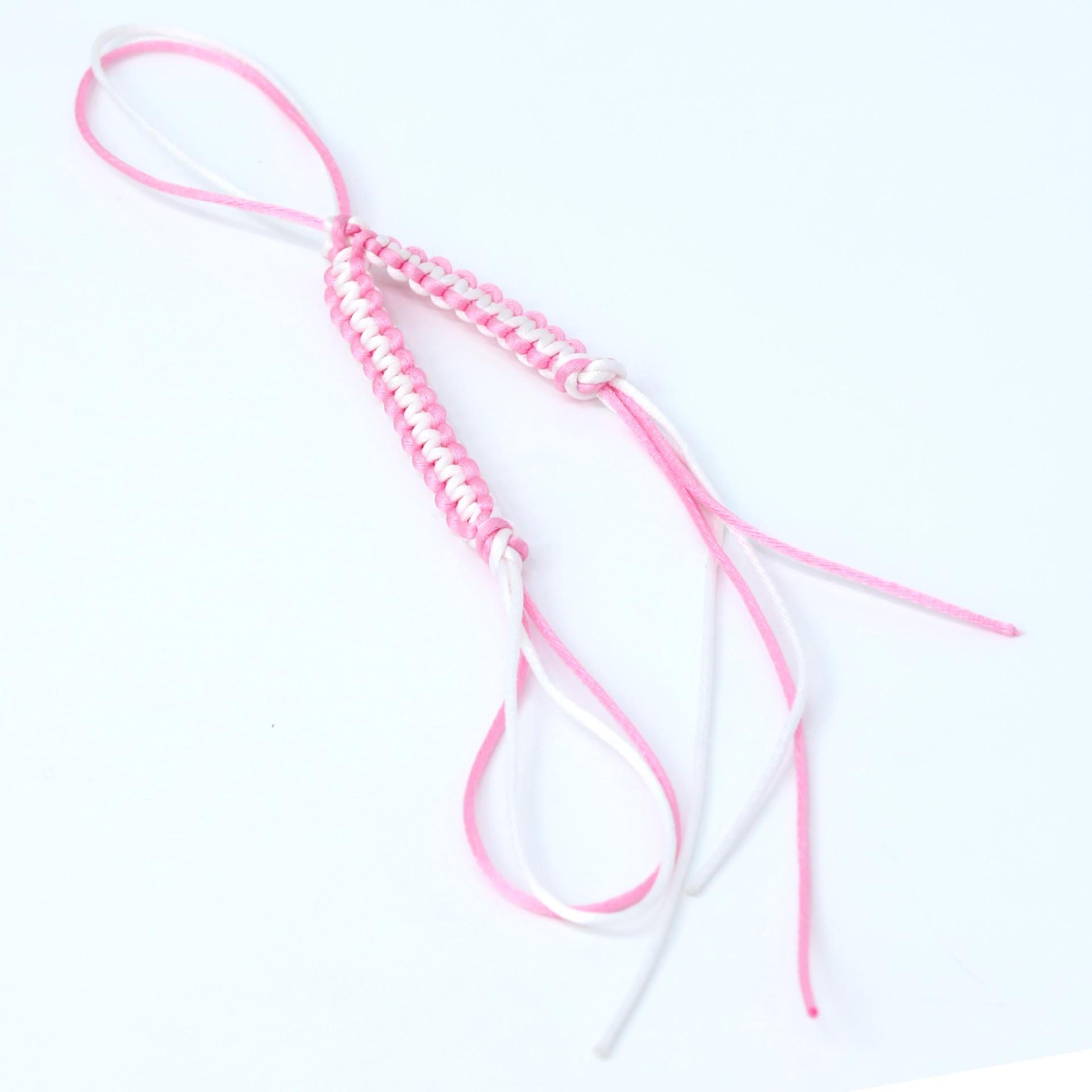 Para reducir la influencia de la mano sobre el arco, los jugadores de recurvo de competición suelen empujarlo en lugar de sujetarlo. Por lo tanto, el arco saltará hacia adelante tras disparar una flecha. Para evitar que el arco se caiga, es necesario atarlo a la mano con una cuerda.Coloque un extremo de la cuerda en su dedo índice. Después de sujetar el arco, enróllelo alrededor del extremo delantero del mango y coloque el otro extremo de la cuerda en su pulgar.