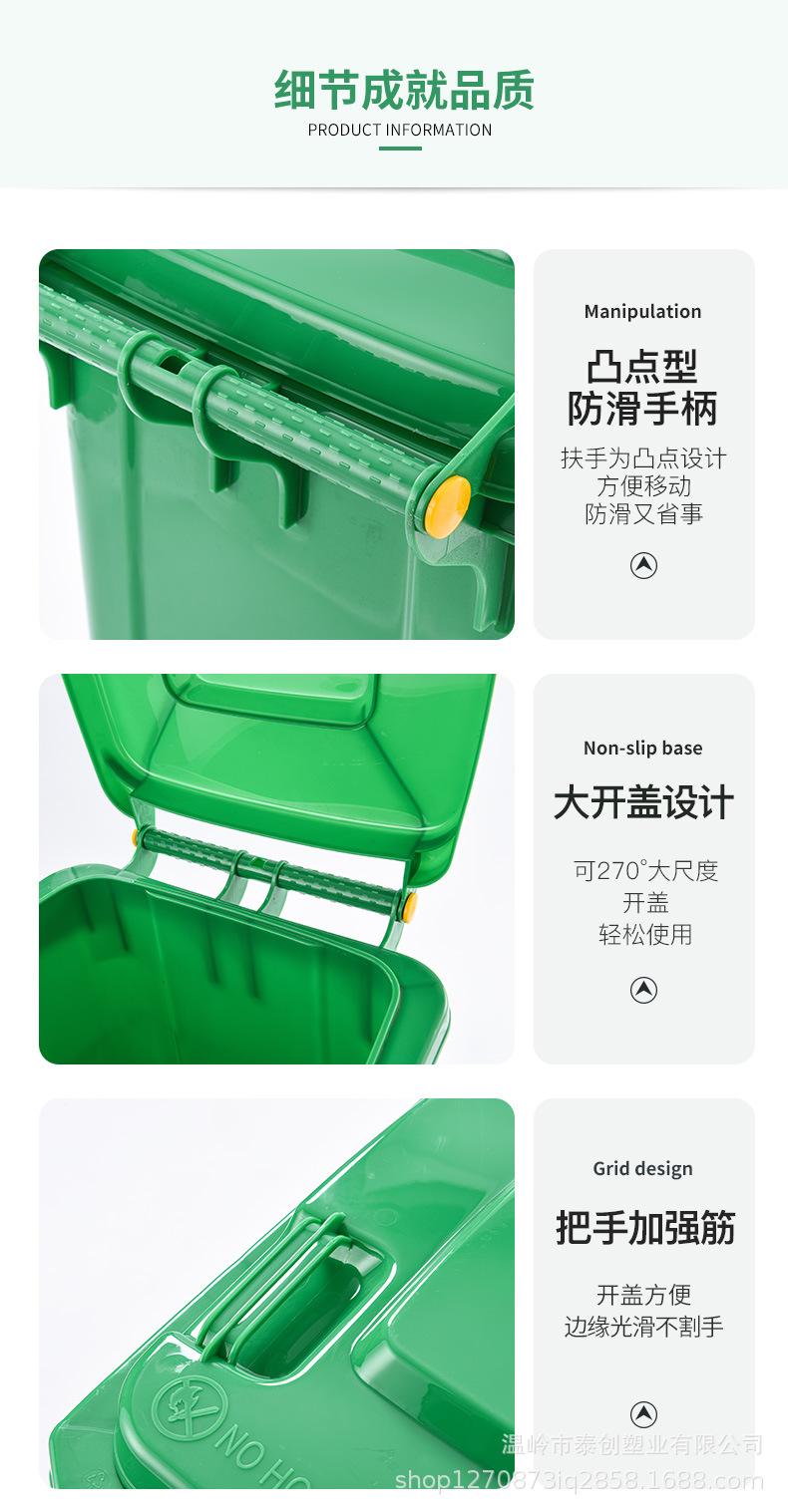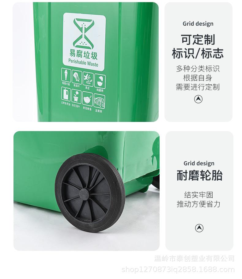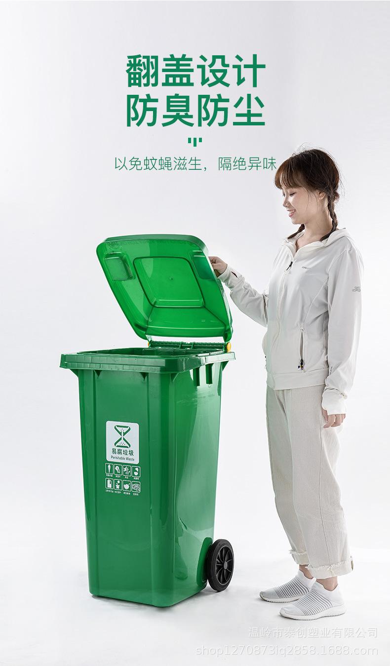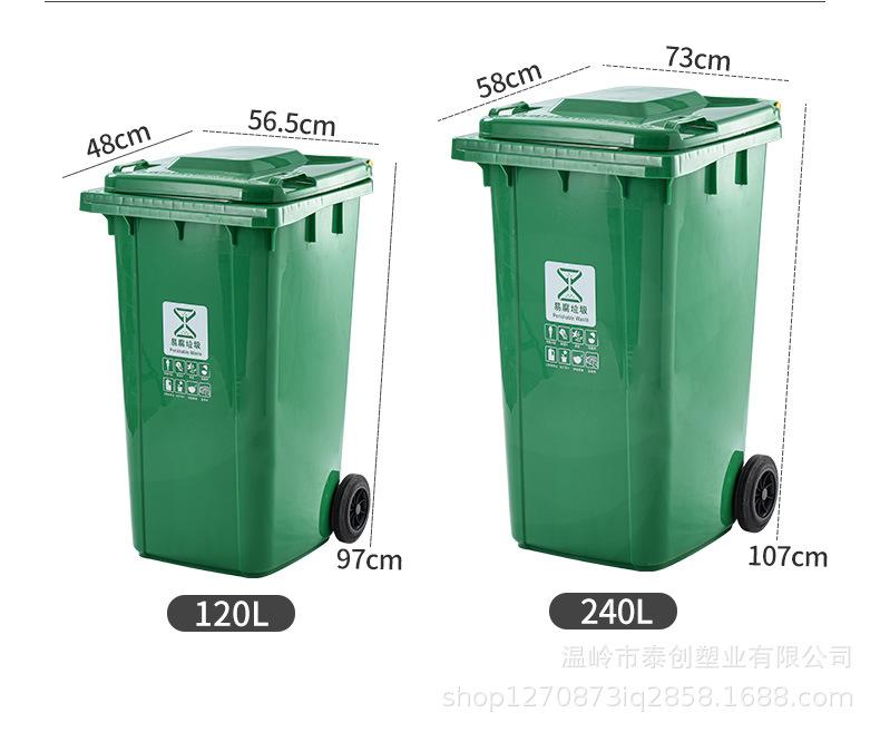 Contenedor de basura sanitario para exteriores grande con tapa de 240 litros de espesor, contenedor de basura de clasificación de barril de remolque de plástico de 120 litros, fabricantes de contenedores de basura