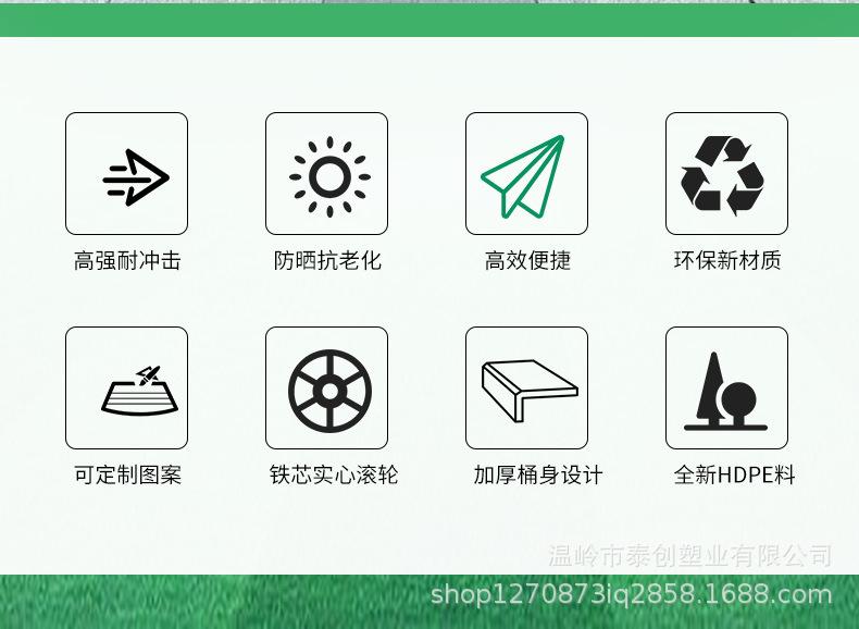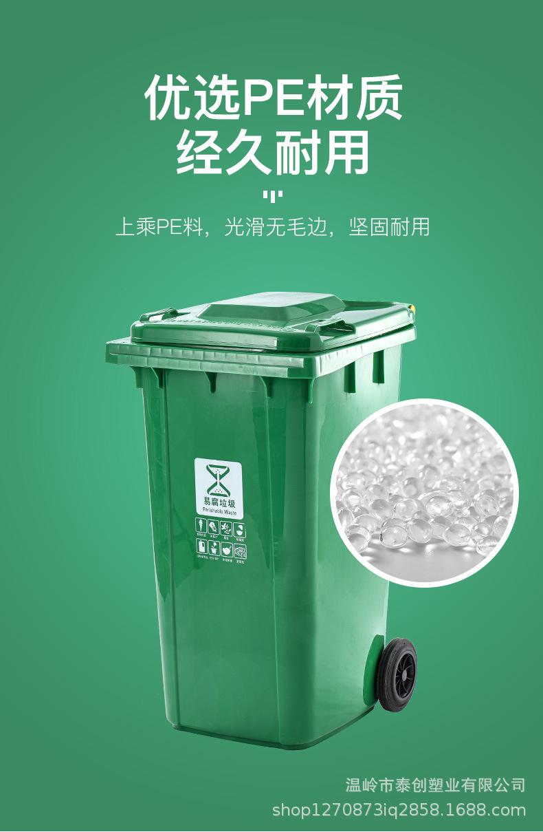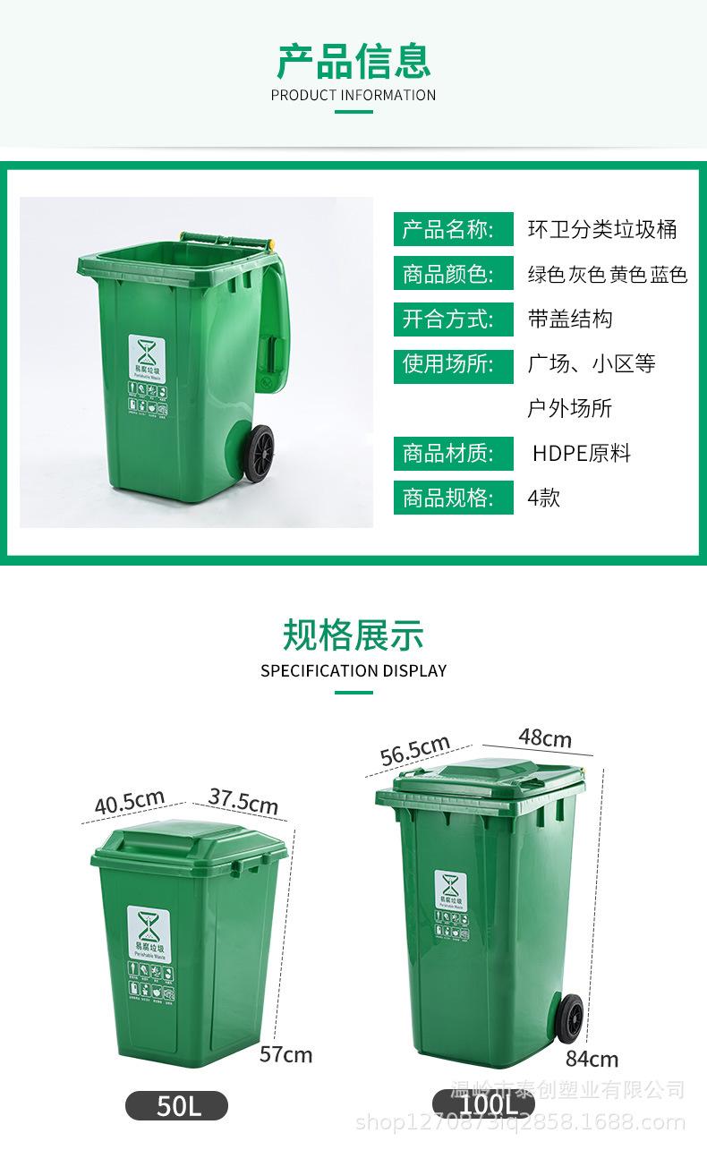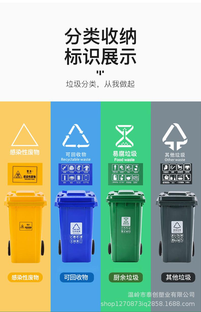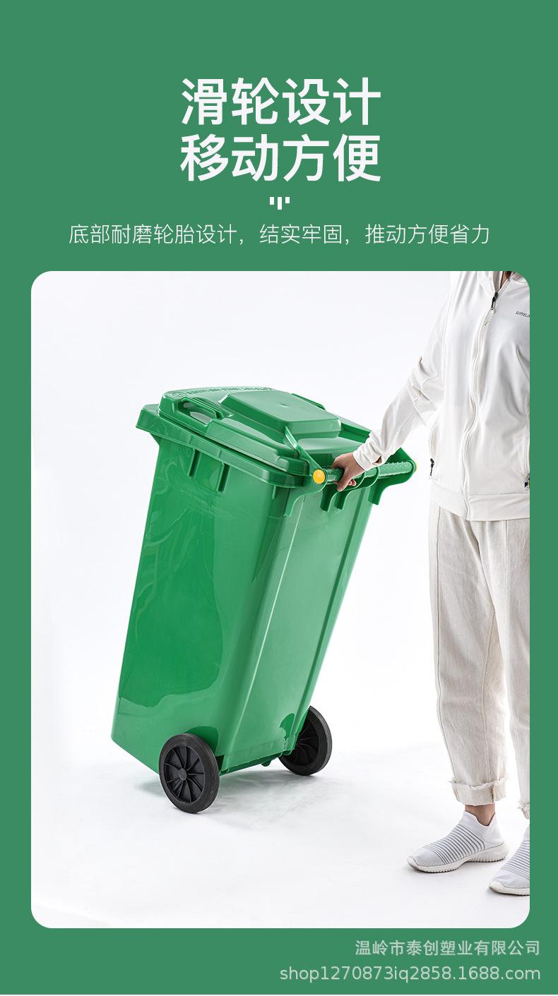 Contenedor de basura sanitario para exteriores grande con tapa de 240 litros de espesor, contenedor de basura de clasificación de barril de remolque de plástico de 120 litros, fabricantes de contenedores de basura
