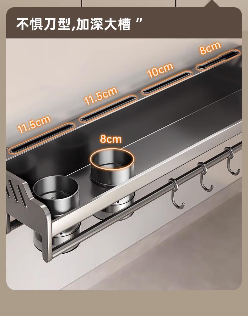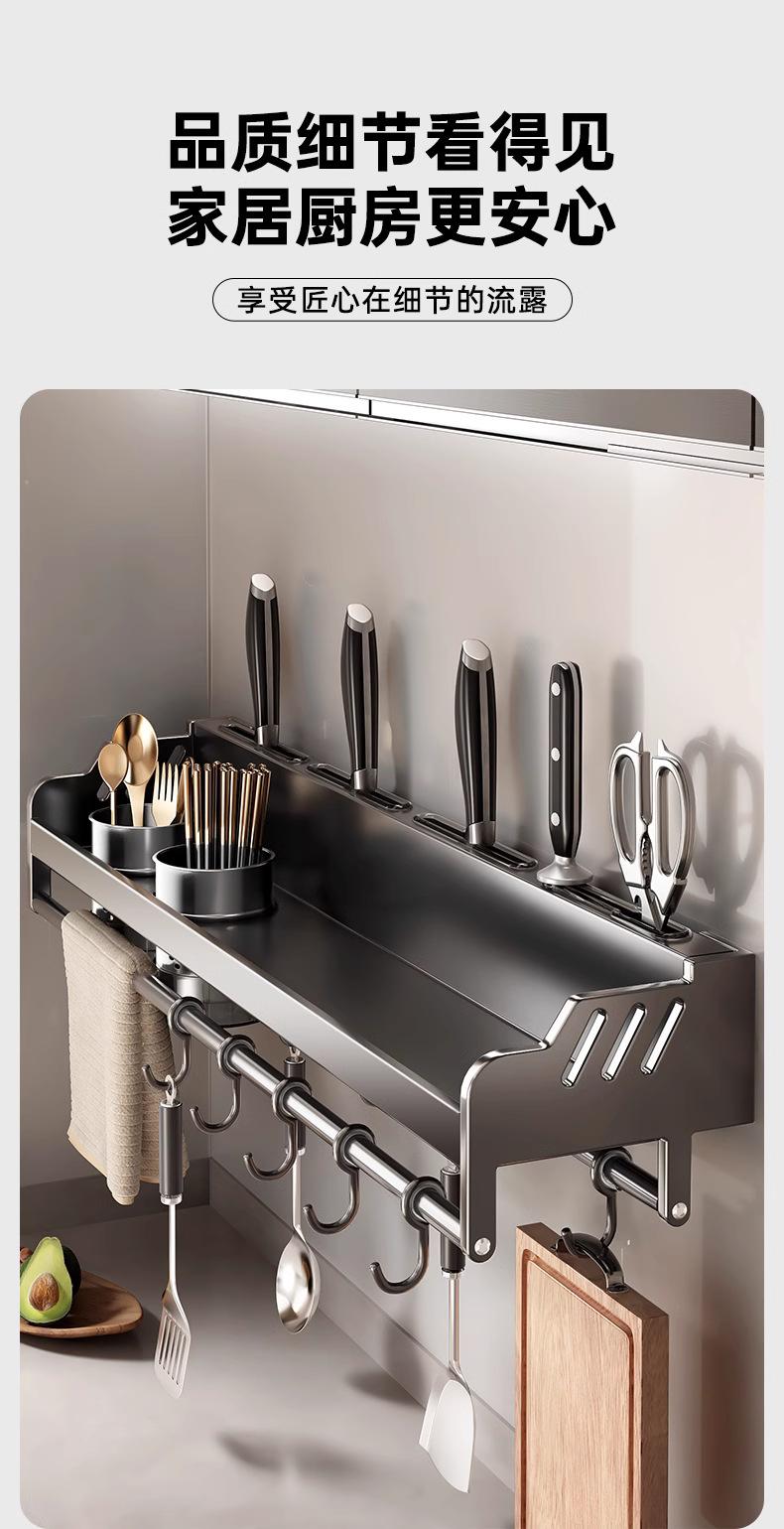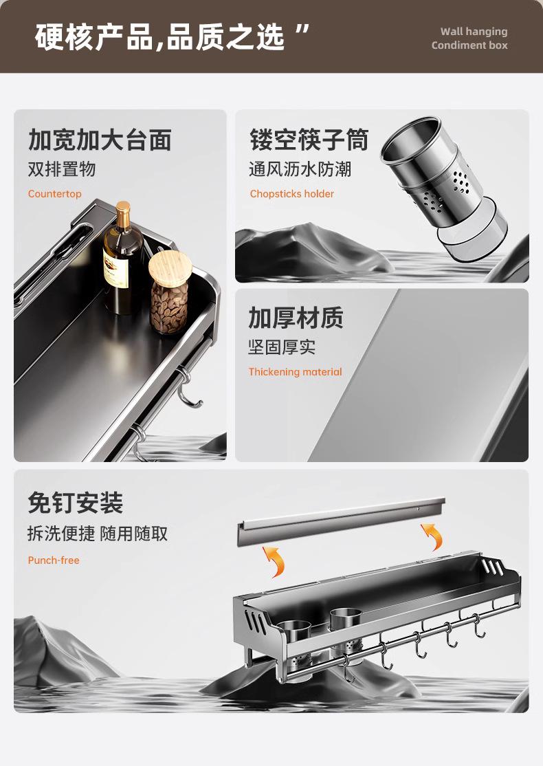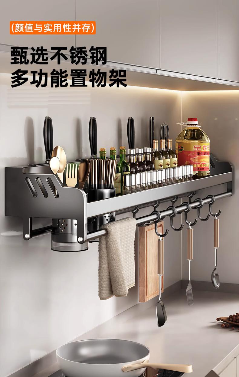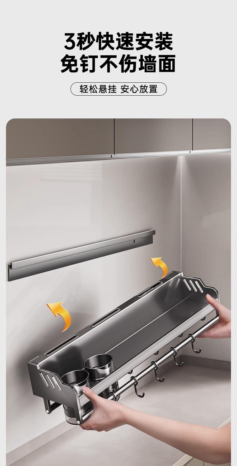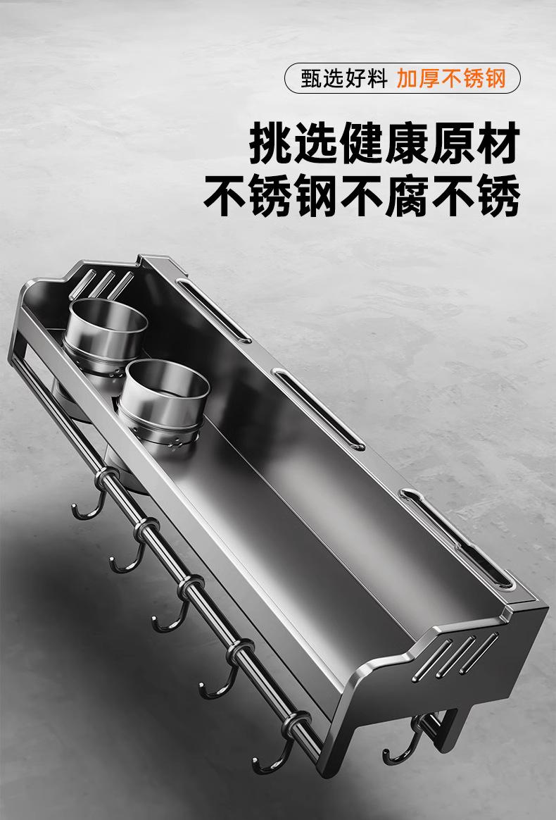Estante de almacenamiento de cocina de acero inoxidable sin perforaciones, soporte para cuchillos y palillos para condimentos montado en la pared para el hogar, suministros, estante de almacenamiento completo