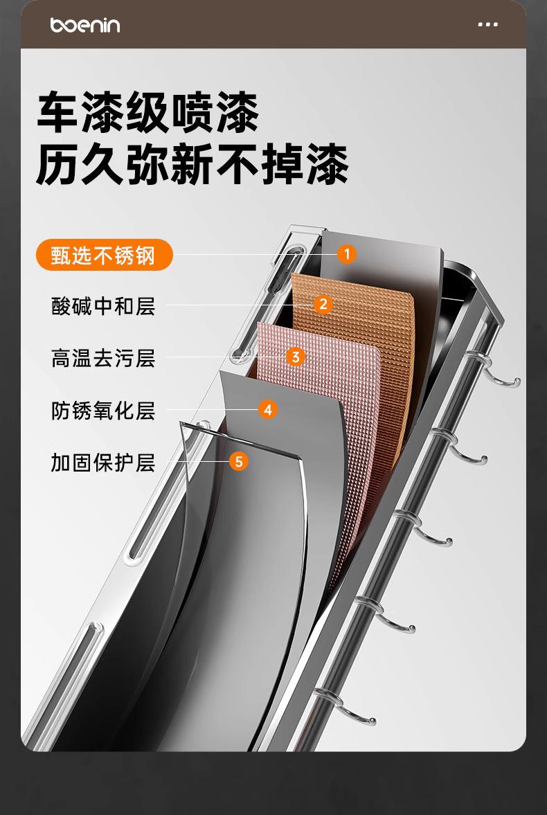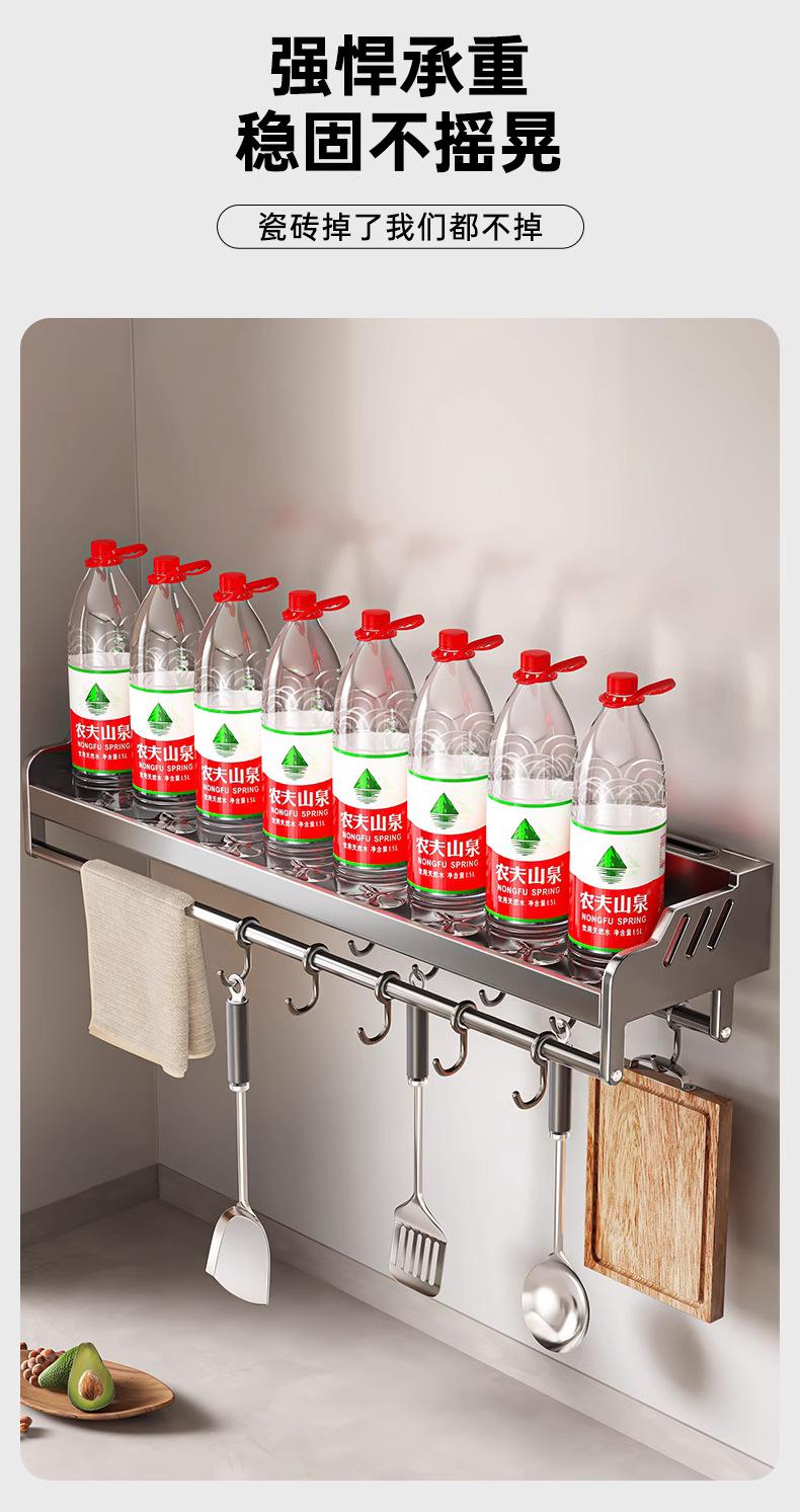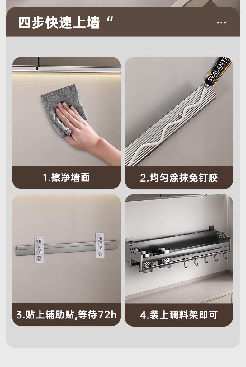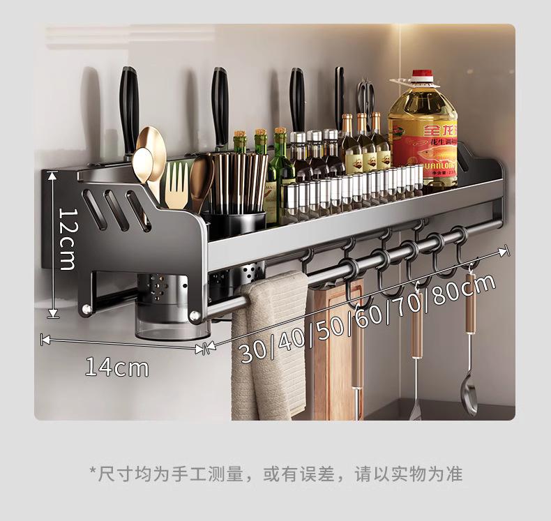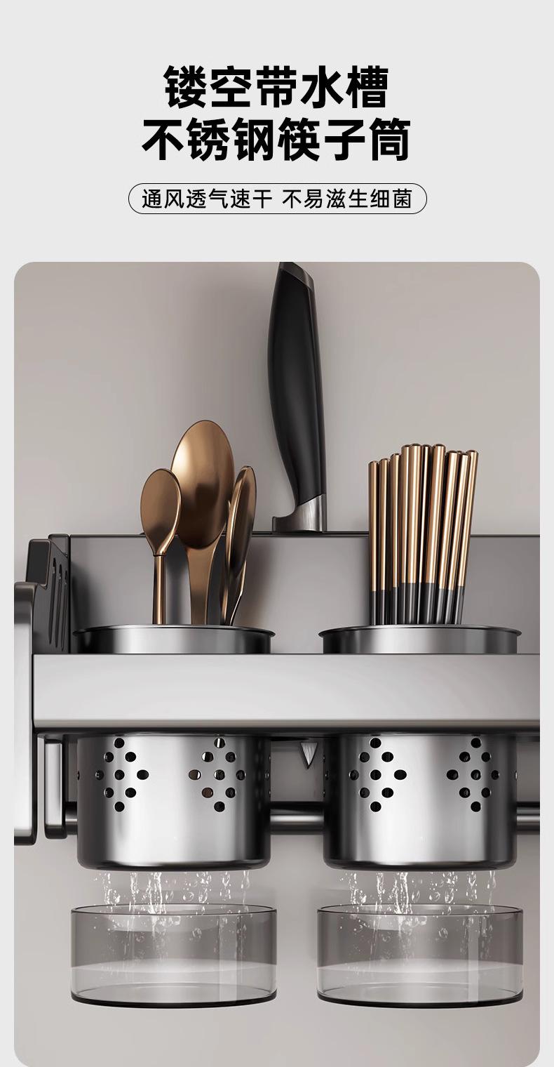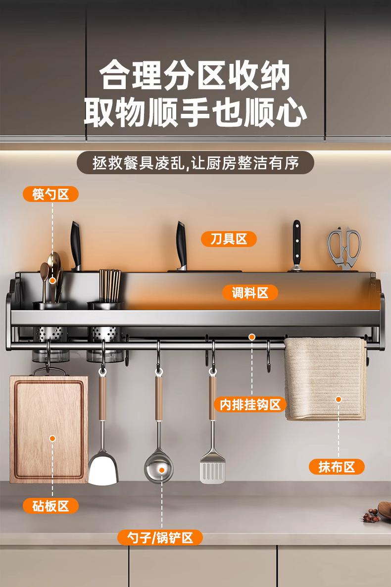 Estante de almacenamiento de cocina de acero inoxidable sin perforaciones, soporte para cuchillos y palillos para condimentos montado en la pared para el hogar, suministros, estante de almacenamiento completo