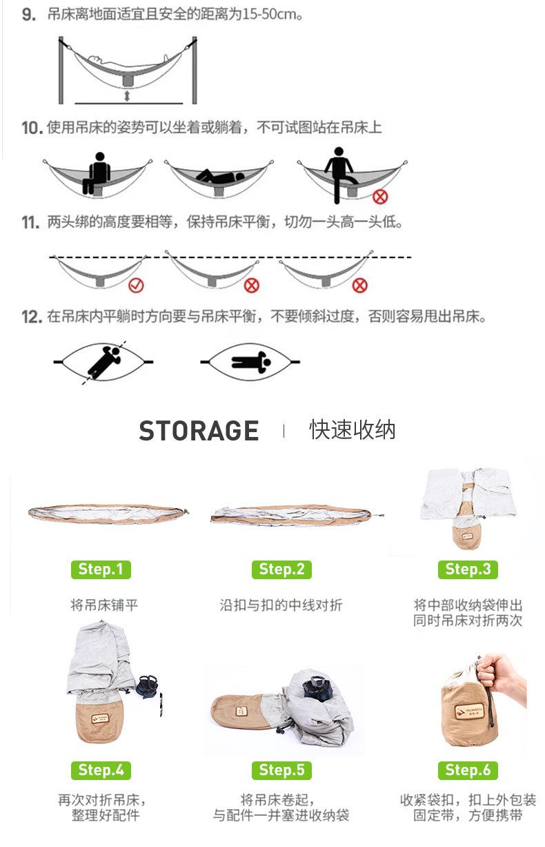 Hamaca doble para acampar al aire libre, hamaca antivuelco, hamaca para la siesta de verano, puede acostarse, fuente, fabricantes, generación mayorista