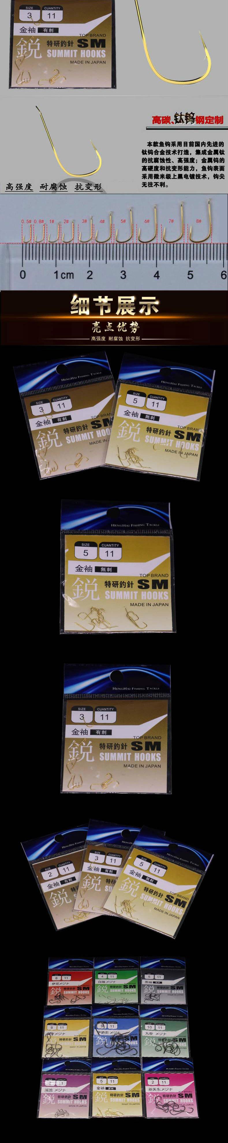 Manga: Este tipo de anzuelo no tiene púas. La punta es afilada, el mango es largo, el anzuelo es delgado y el cuerpo es ligero. Es adecuado para peces pequeños que se alimentan por succión. Es rápido de atrapar y de morder. Se utiliza principalmente para capturar carpas blancas, pequeños peces blancos, etc.