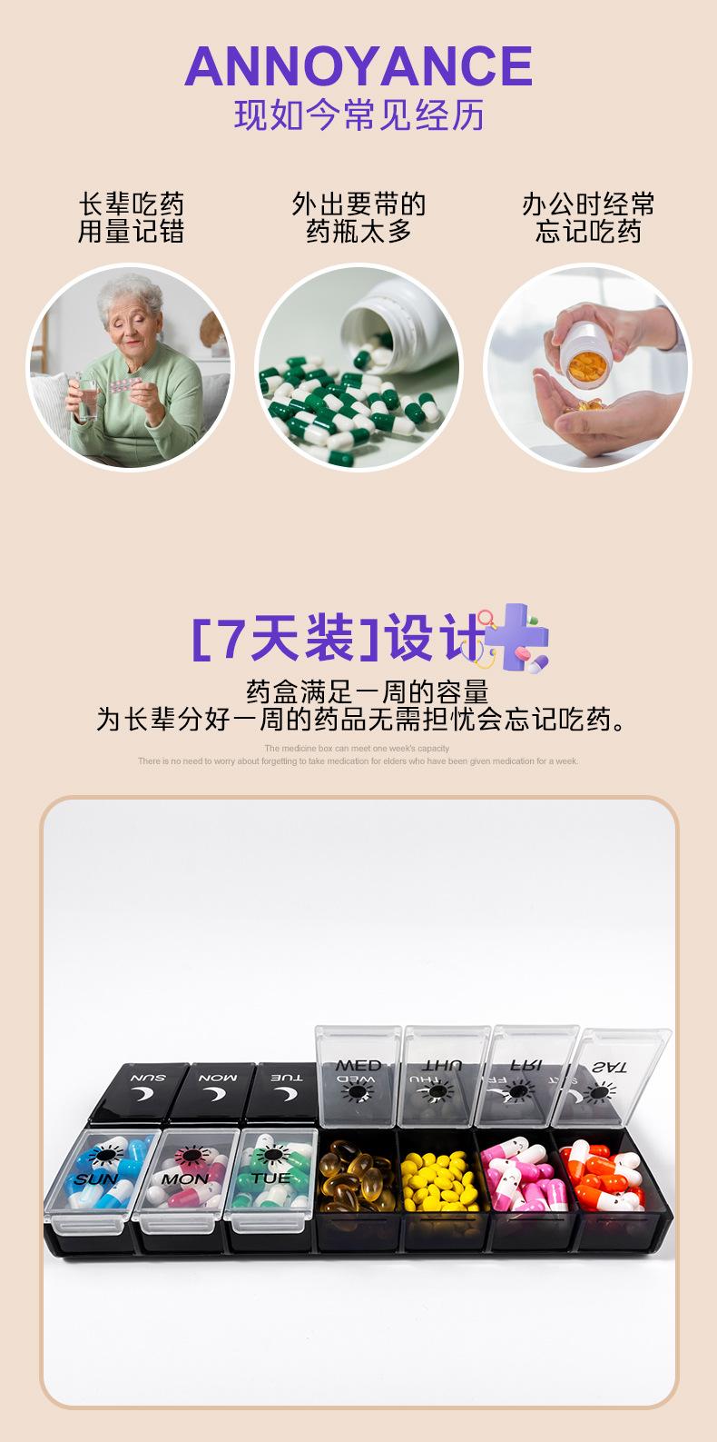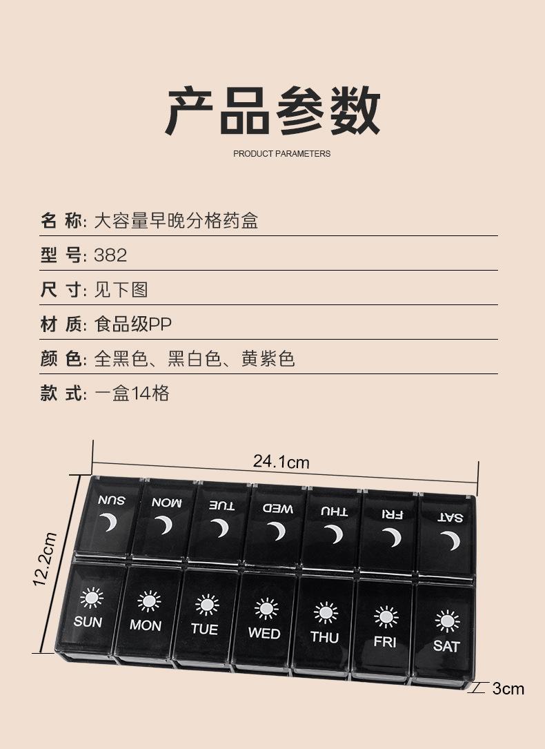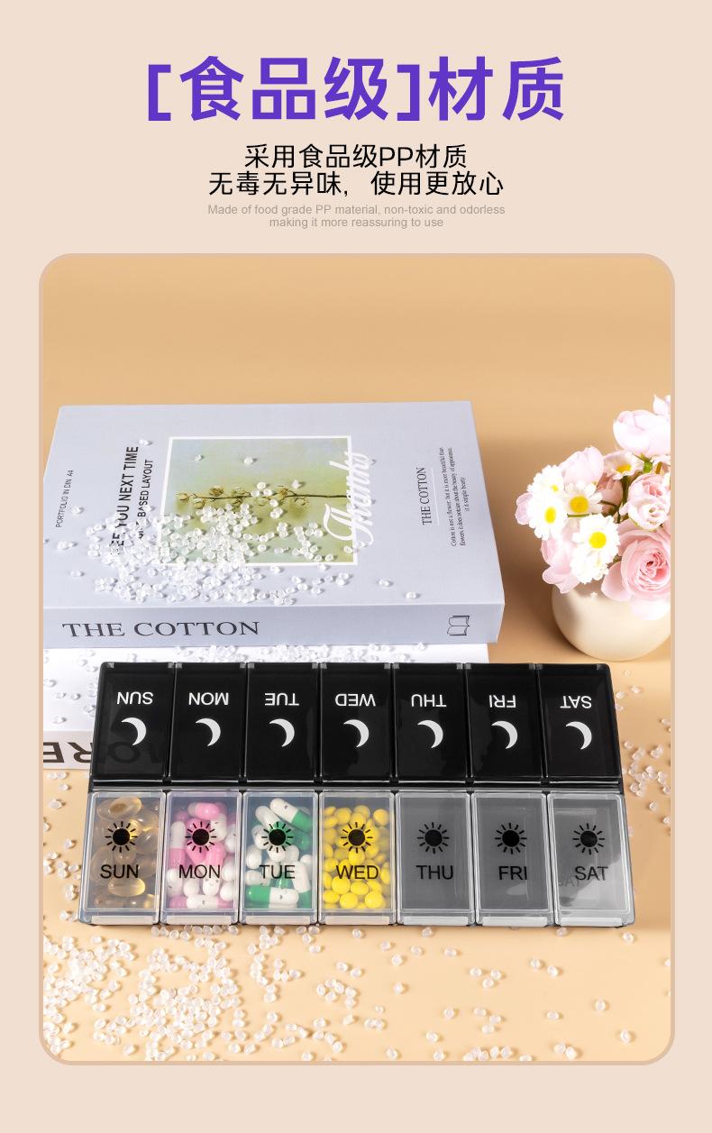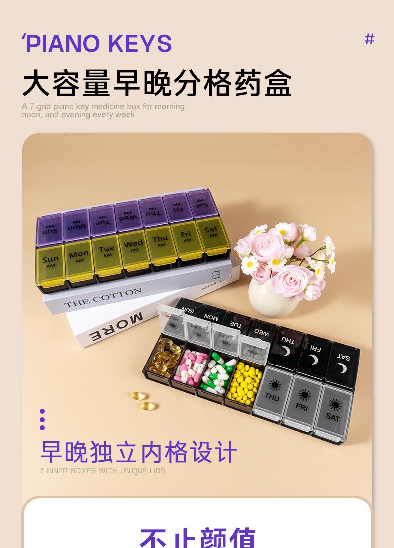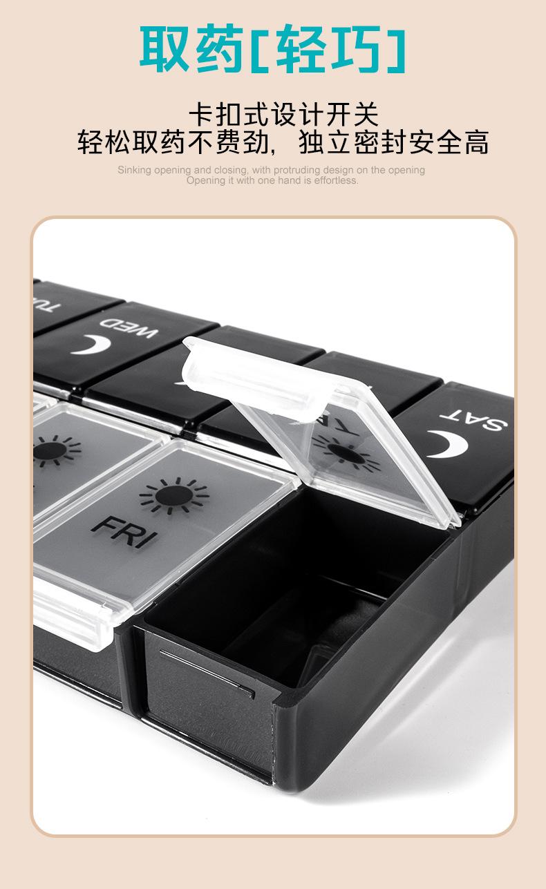 Pastillero portátil de 14 compartimentos, Caja compacta para guardar pastillas, Almacenamiento multi-compartimento, Caja sellada para embalaje de pastillas y medicamentos