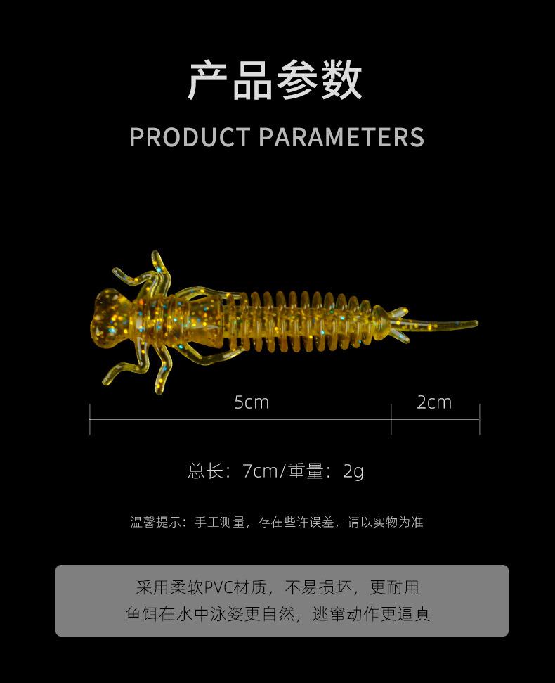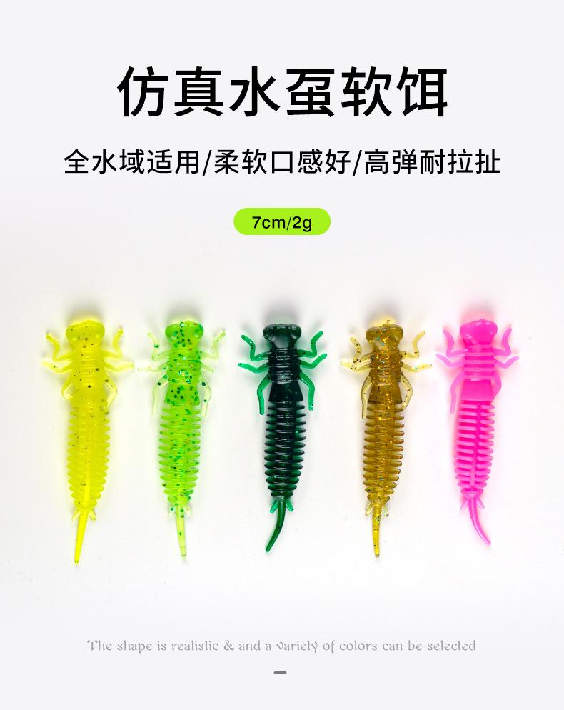 Cebo blando Luya con forma de camarón para pesca en el agua, larva de libélula biónica, lubina, pesca en el mar, cebo blando sumergido en agua dulce.