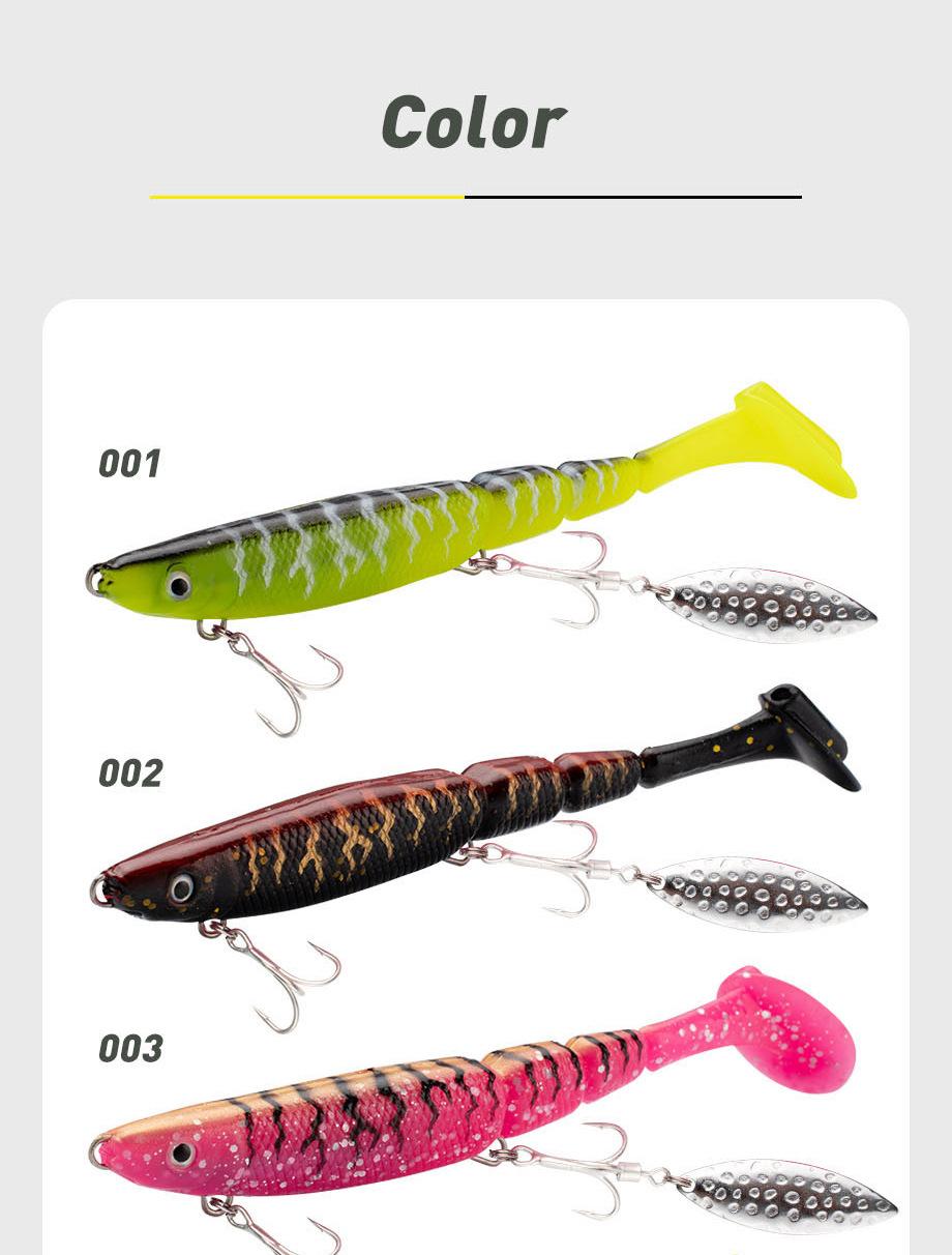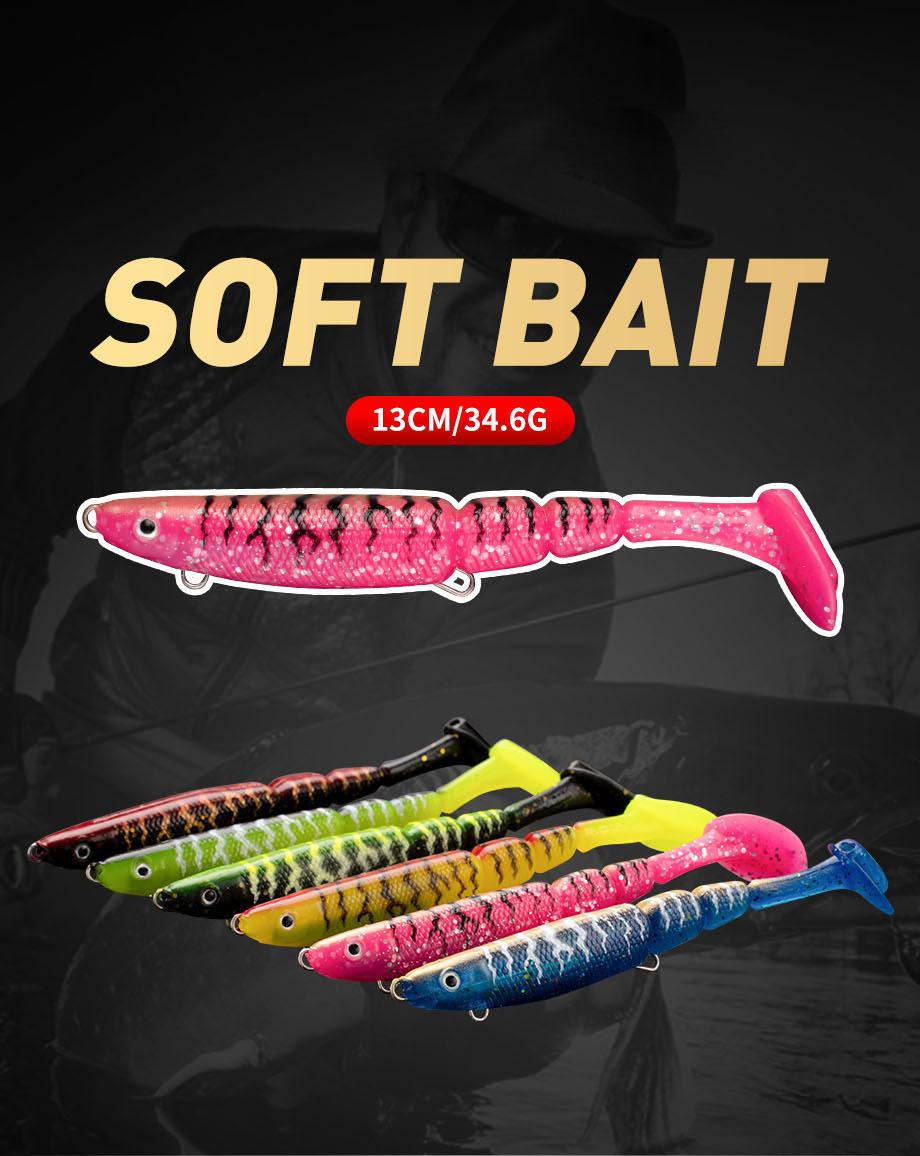 Paquete Cola T Cabeza de Plomo 130mm 34.6g Lentejuela Giratoria Cebo Blando Señuelo Pez Blando Tres Anzuelos Lubina Pez Mandarín Venta al por Mayor