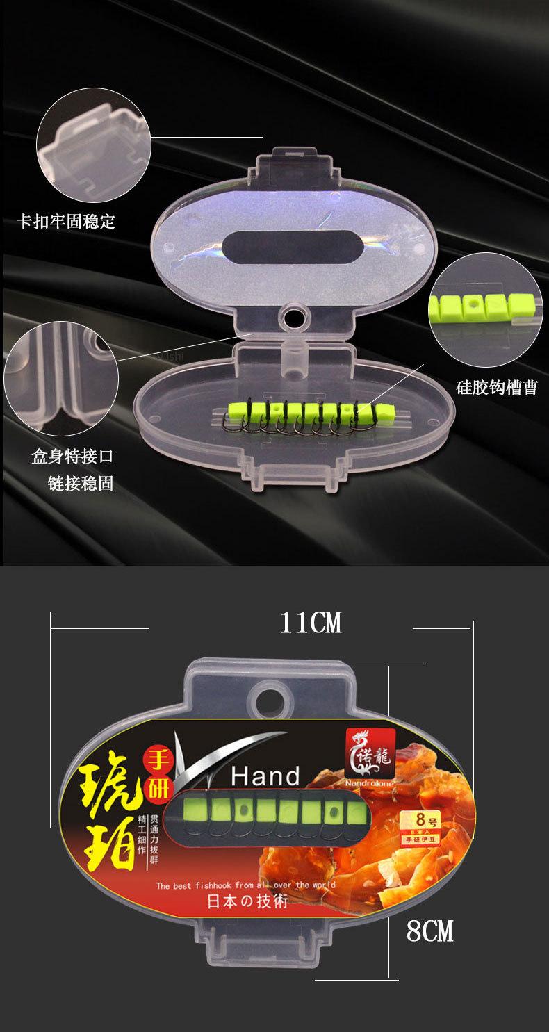 Los tipos representativos de anzuelos de mango corto incluyen los de forma Maru, Ise-ni, Maru-sode y Turtle, etc. Se utilizan principalmente para pescar en aguas poco profundas, en zonas de pesca con una profundidad de agua de 2 metros o menos. Dado que la tasa de mordida de los anzuelos de mango corto es mayor que la de los anzuelos de mango largo, se utilizan en una gama más amplia. Muchos pescadores los reprocesan y sueldan un anzuelo (anzuelo ascendente) con una ranura para atar la línea en el ojo del anzuelo para pescar peces de agua dulce. La diferencia entre los anzuelos de mango largo y los de mango corto es que los primeros se utilizan principalmente para pescar peces de aguas profundas, como carpas, carpas negras y carpas herbívoras. Los segundos se utilizan principalmente para pescar carpas crucianas, doradas y sargos en aguas poco profundas, etc.