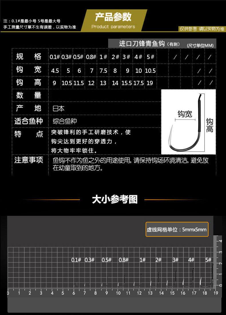 Para la pesca de peces pequeños como la carpa cruciana y la dorada en estanques y zanjas, se recomienda usar anzuelos de manga corta y boca redonda. Los modelos incluyen 4-7, Ise 3-5 y Chimata 0.8-1. Para la pesca competitiva, elija Kanto 5-8 e Izu 5-8. Al elegir un anzuelo, puede usar la punta para arrastrarlo suavemente sobre la uña del pulgar. Elija anzuelos que no sean fáciles de arrastrar sobre la uña, ya que son pegajosos y astringentes, y pueden dejar marcas blancas con un poco de fuerza. Dentro del mismo tipo de anzuelos, elija el más delgado posible, con mayor dureza y elasticidad. En cuanto al color del anzuelo, puede elegir anzuelos negros, verdes, azules, blancos metalizados y rojos, según sus preferencias.