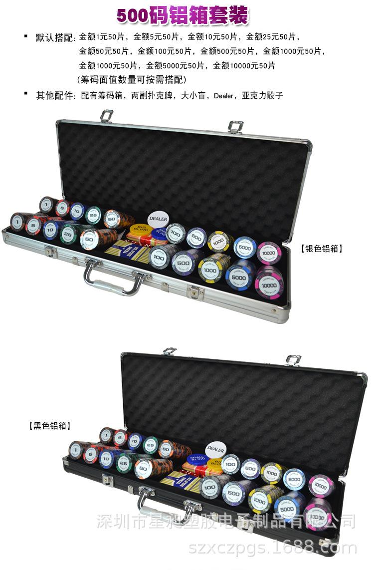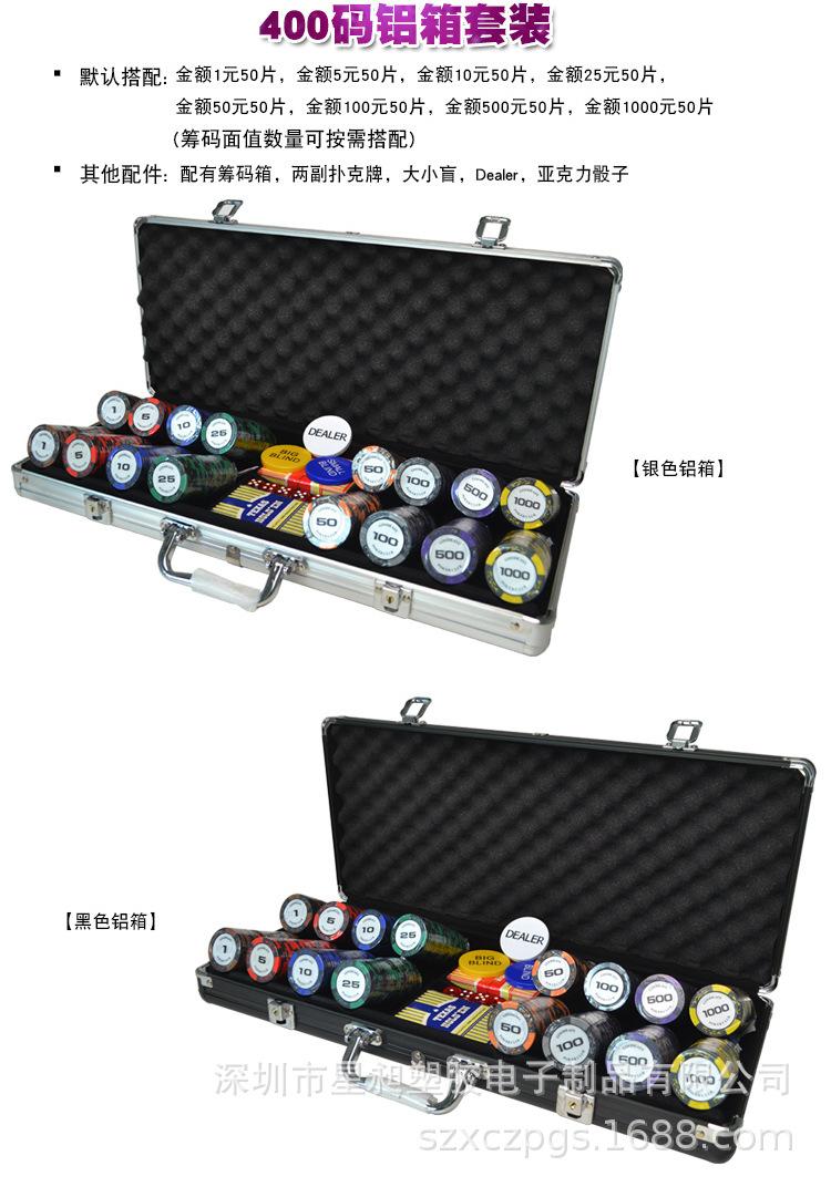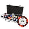『Material』: Fichas - arcilla (con lámina de hierro en el interior), Caja de fichas - aluminio + separador, Rejilla para fichas - acrílico