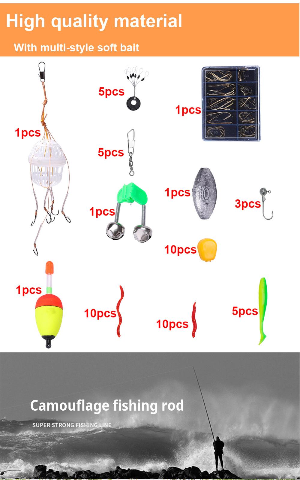 Traje de caña de mar FISHKING, juego de 55 piezas, 1,8 m, telescópico Luya, traje portátil, combinación para principiantes, pesca de carpas con cebo blando