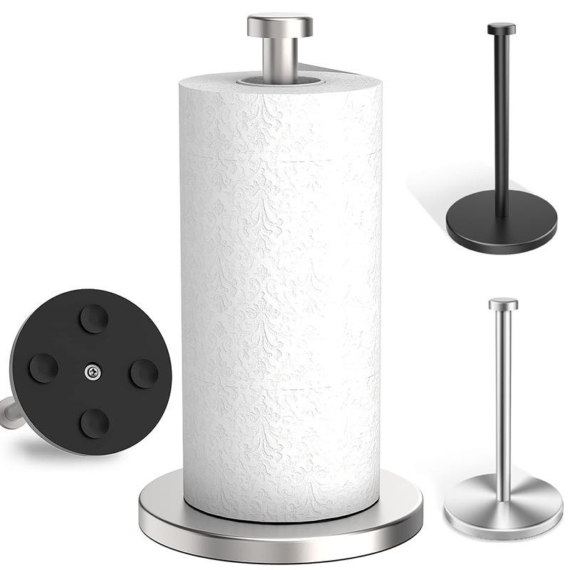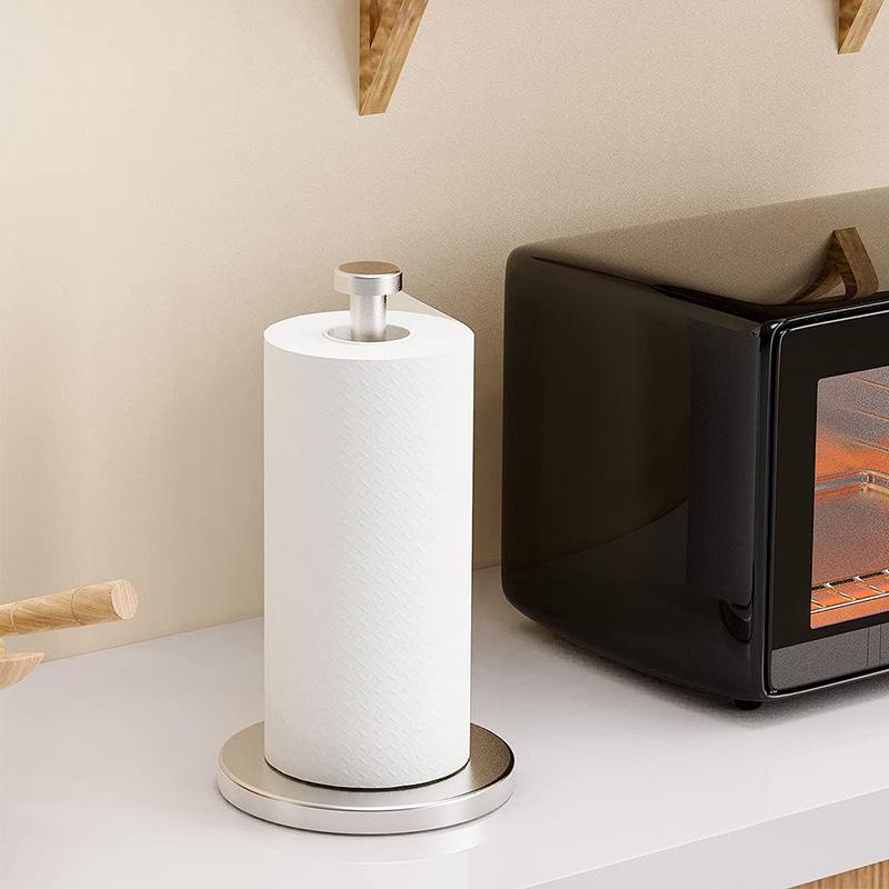 Soporte para Toallas de Papel de Acero Inoxidable para Mostrador Vertical Soporte para Rollo de Cocina Sin Perforaciones Estante de Almacenamiento de Toallas de Papel de Escritorio Estante para Envoltura de Plástico con
