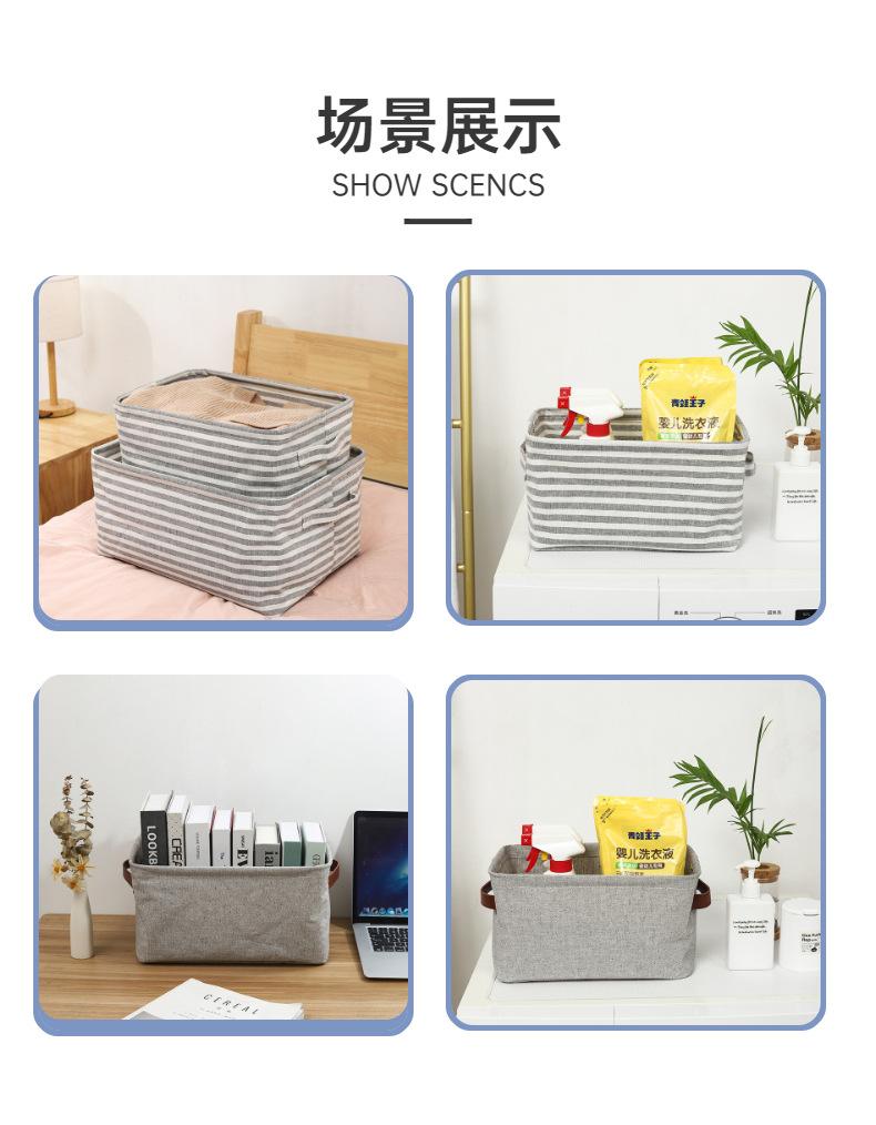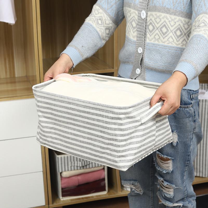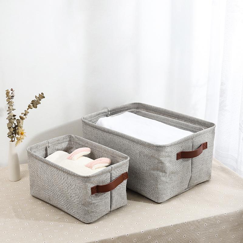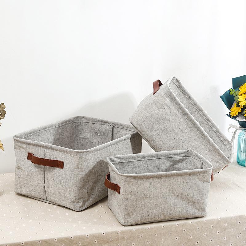 Cesta de almacenamiento de escritorio de tela de algodón y lino con asa, plegable, lavable, para guardar ropa, juguetes y artículos diversos, gruesa