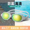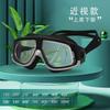 Fabricantes al por mayor de gafas de natación antivaho con galvanoplastia coloridas de alta definición con marco grande de silicona para miopía, los ojos izquierdo y derecho se pueden combinar.