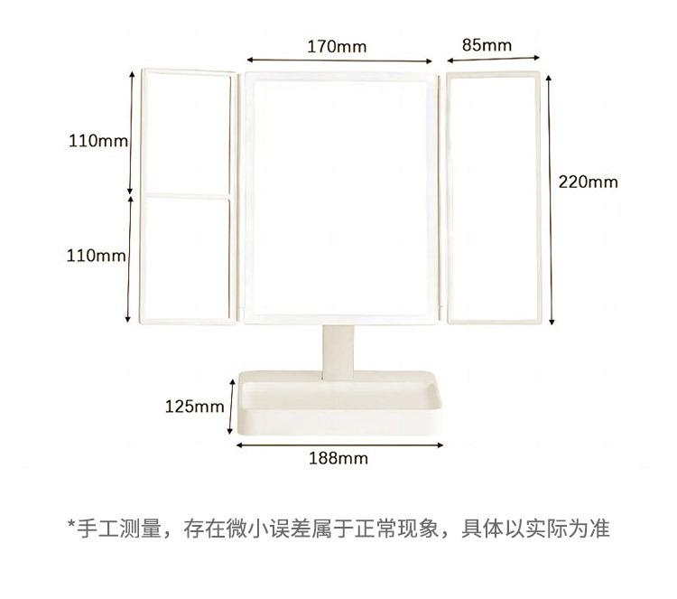 Tamaño del producto: espejo principal 170*220mm, espejo de aumento 110*85mm, espejo plano de la puerta lateral 85*220mm, base 125*188mm