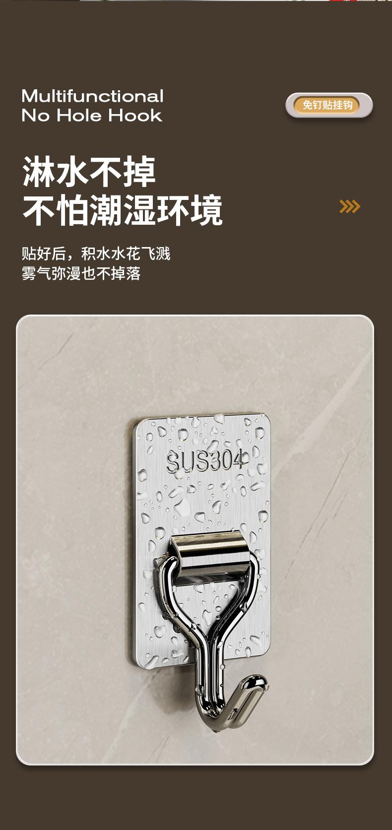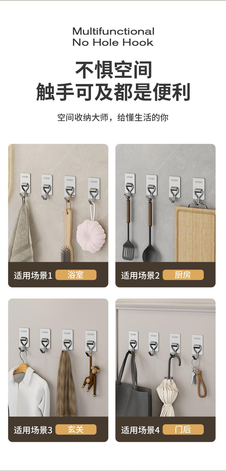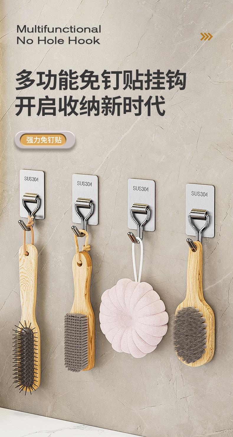 Gancho adhesivo de acero inoxidable sin perforaciones para baño, colgador de ropa para puerta, sala de estar, cocina, dormitorio, almacenamiento