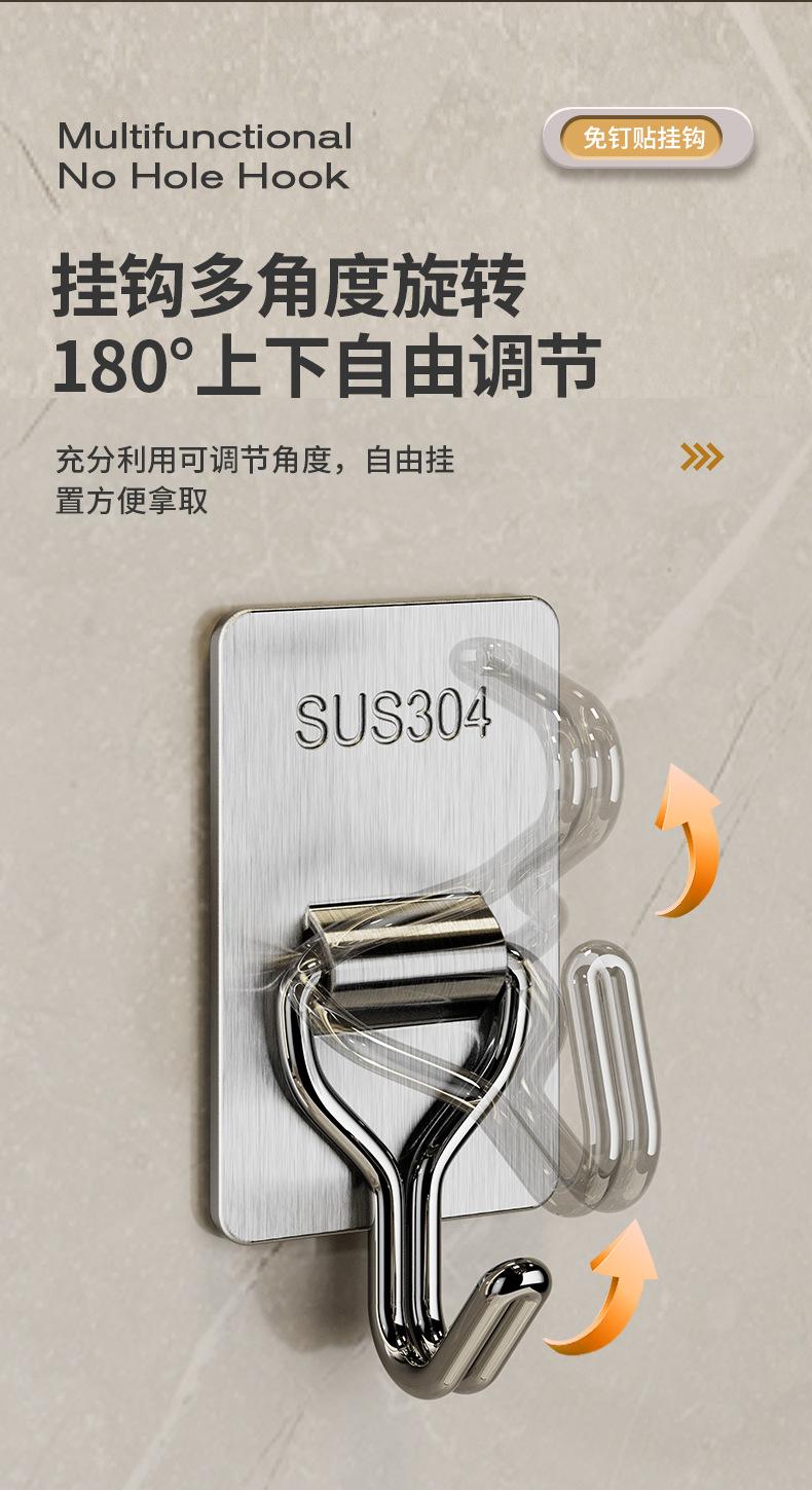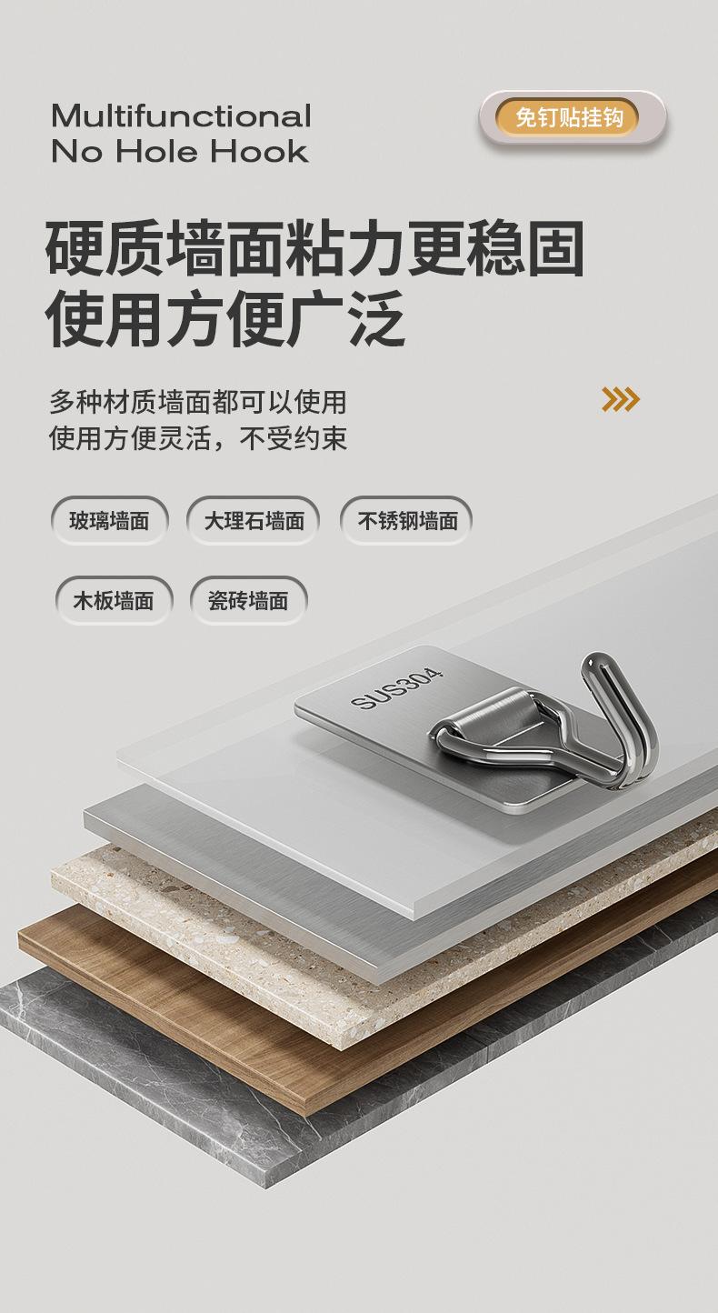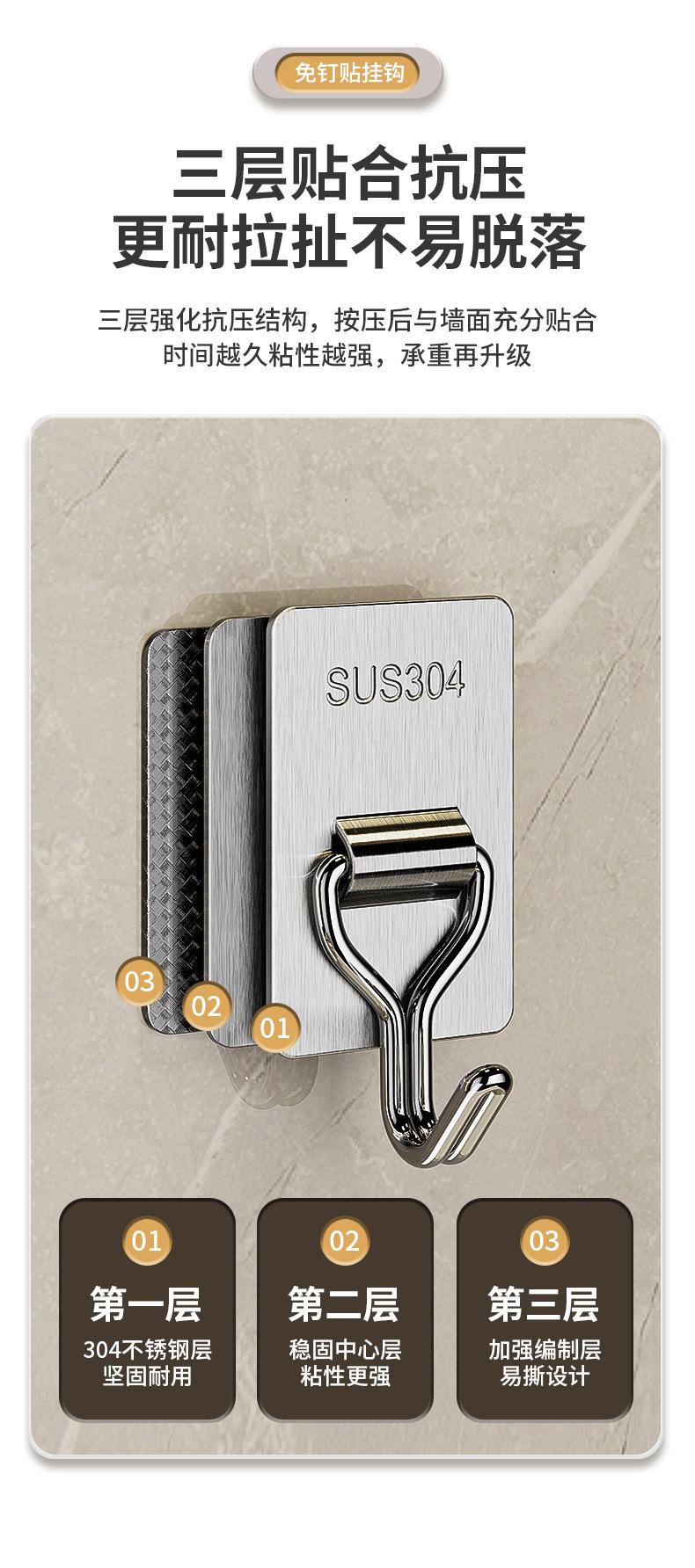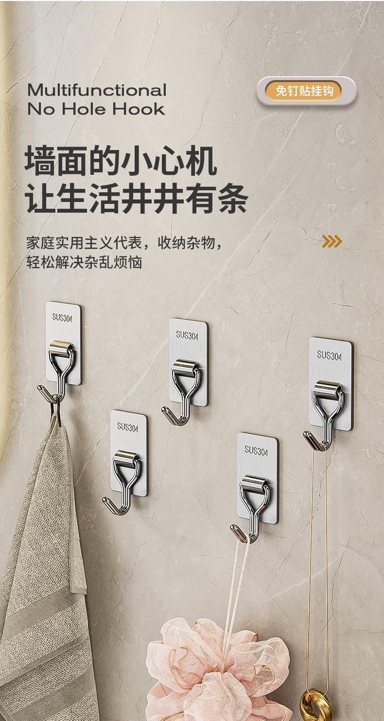Gancho adhesivo de acero inoxidable sin perforaciones para baño, colgador de ropa para puerta, sala de estar, cocina, dormitorio, almacenamiento