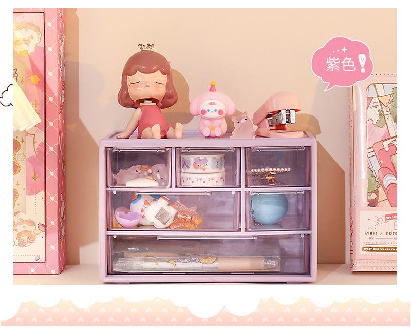 Caja de almacenamiento de cosméticos de escritorio, cajón de seis rejillas, caja de almacenamiento de joyas de acrílico, caja de almacenamiento apilable, a prueba de polvo