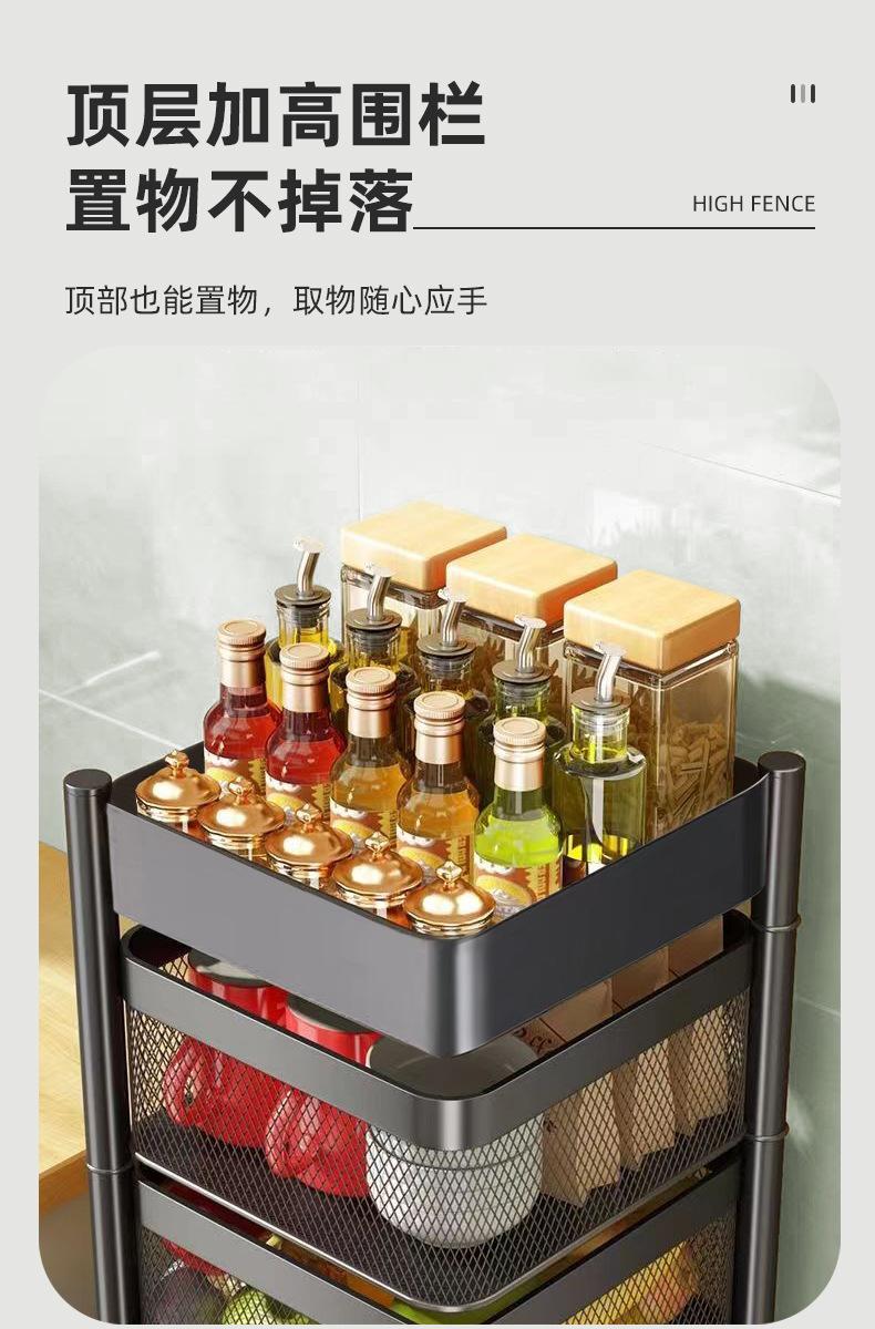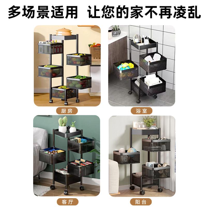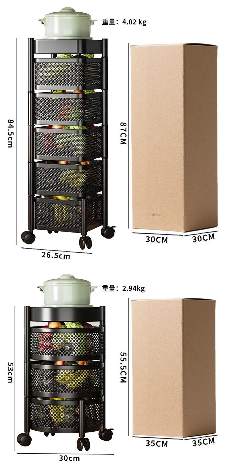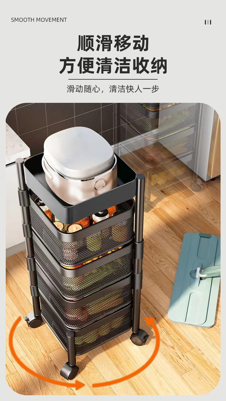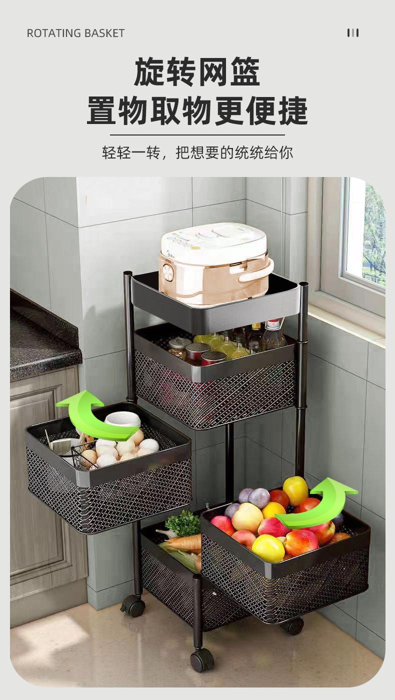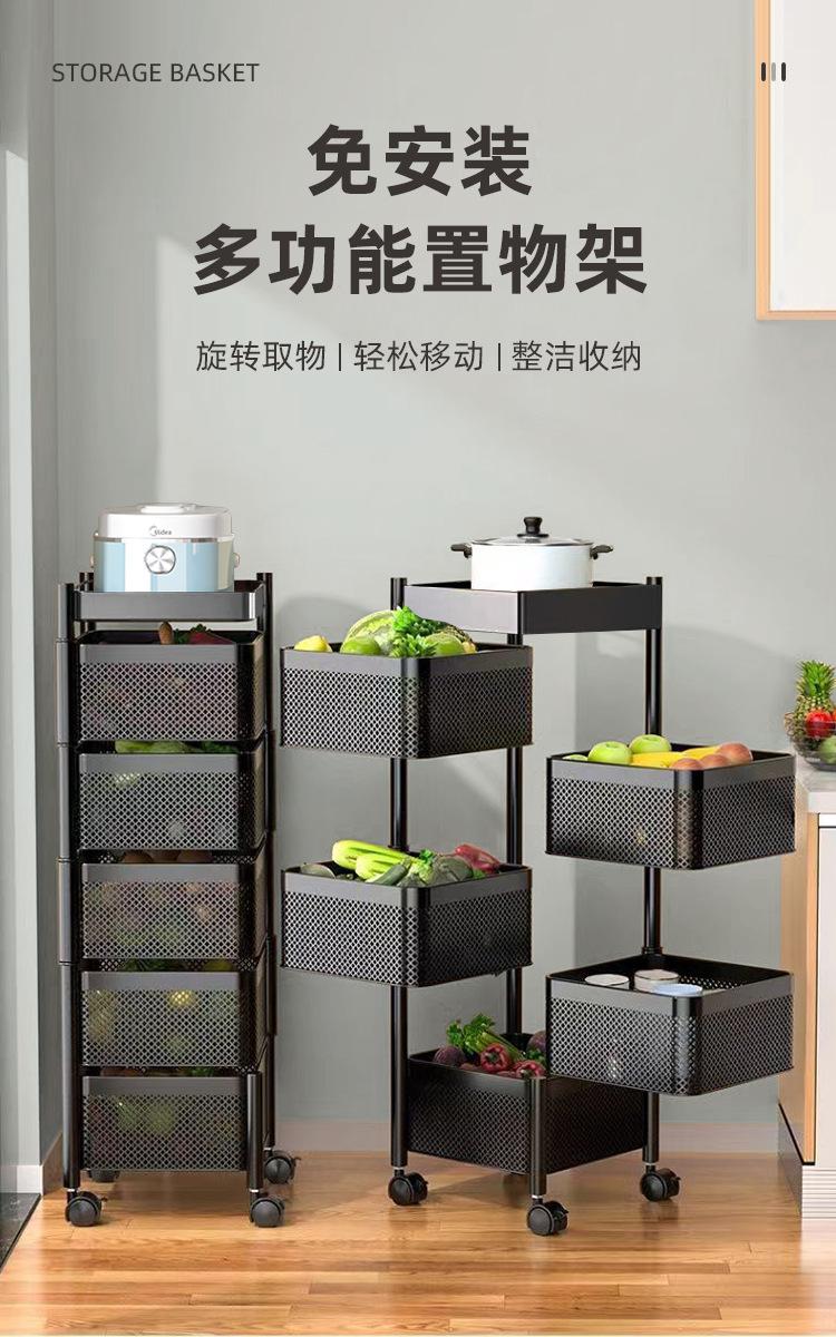Estante de Almacenamiento Sin Instalación para el Hogar Acero al Carbono Estante para Verduras de Pie Móvil Multicapa Cuadrado Cocina Estante de Almacenamiento Giratorio
