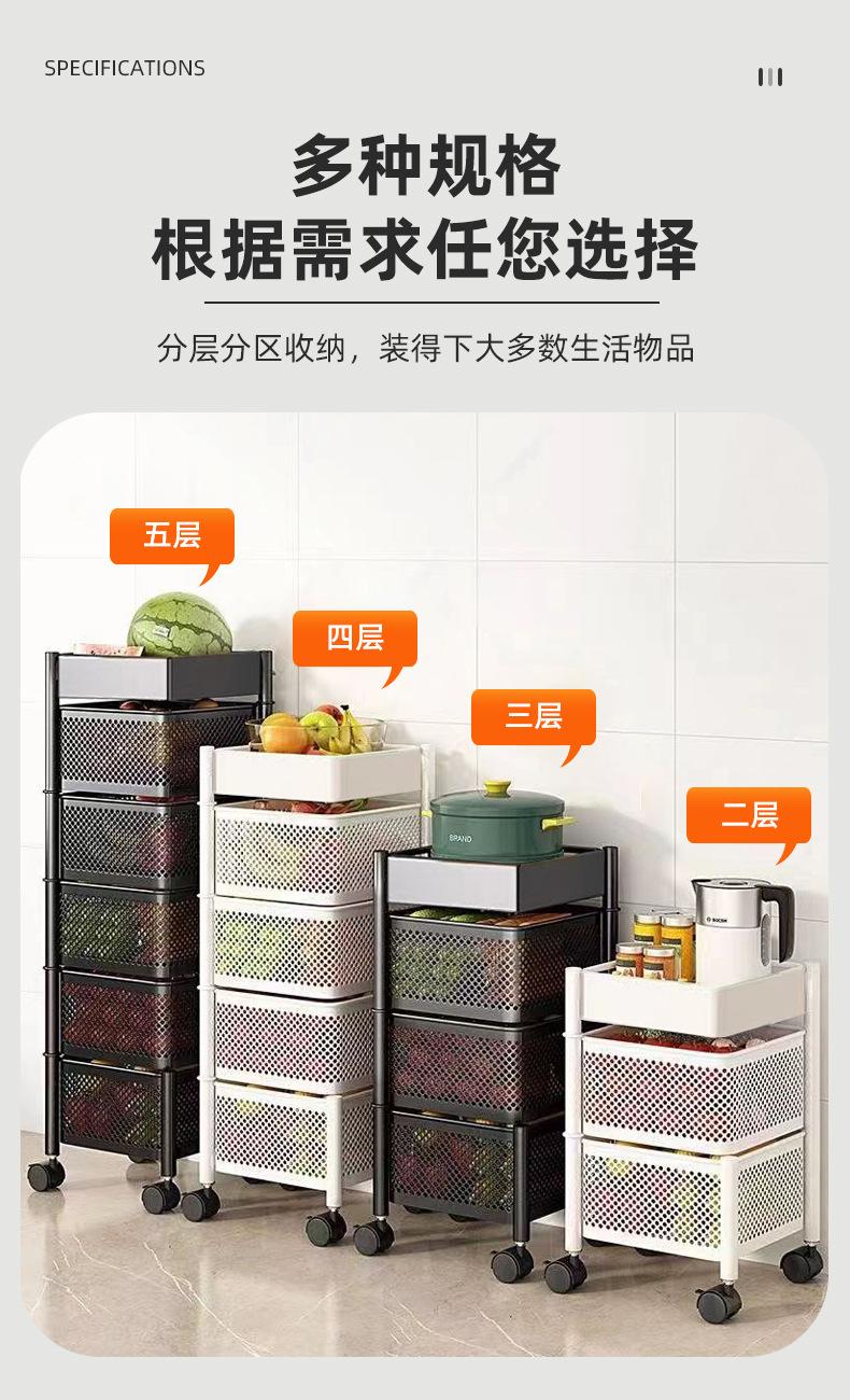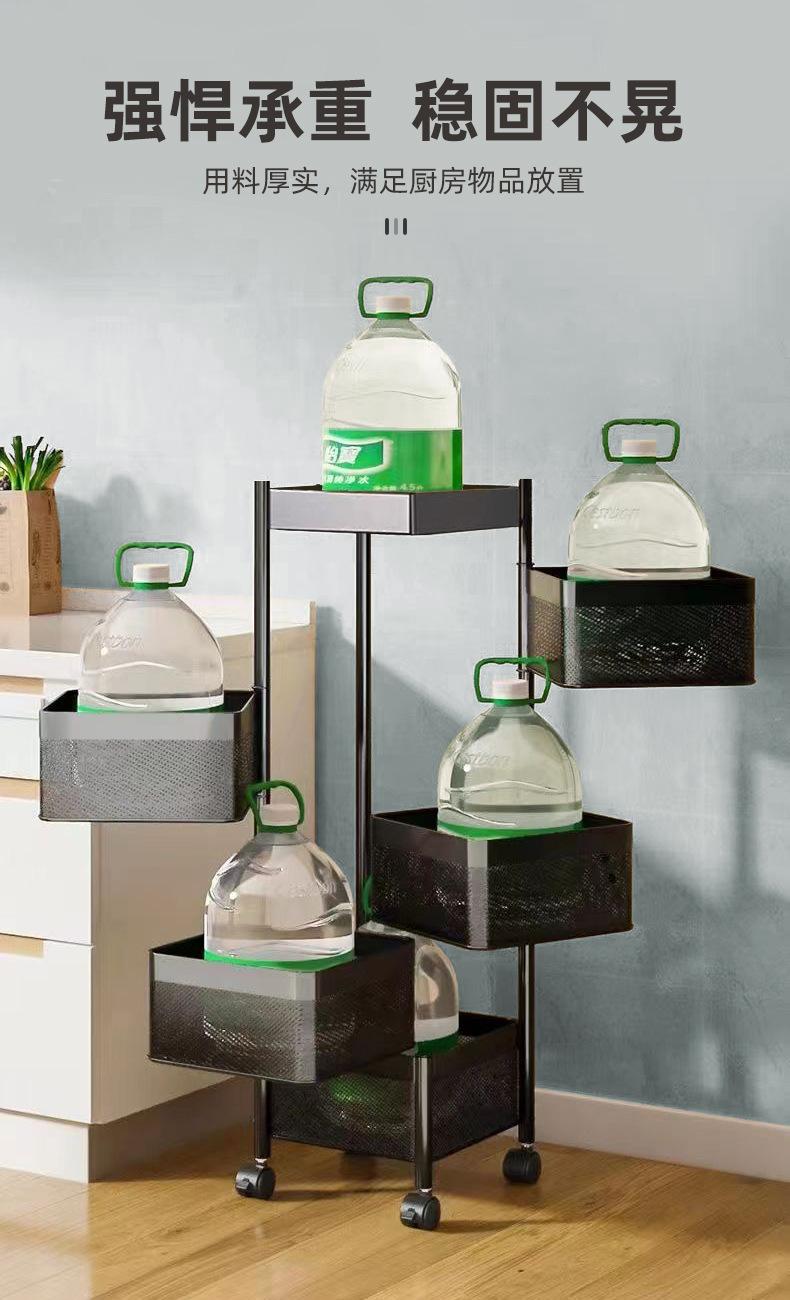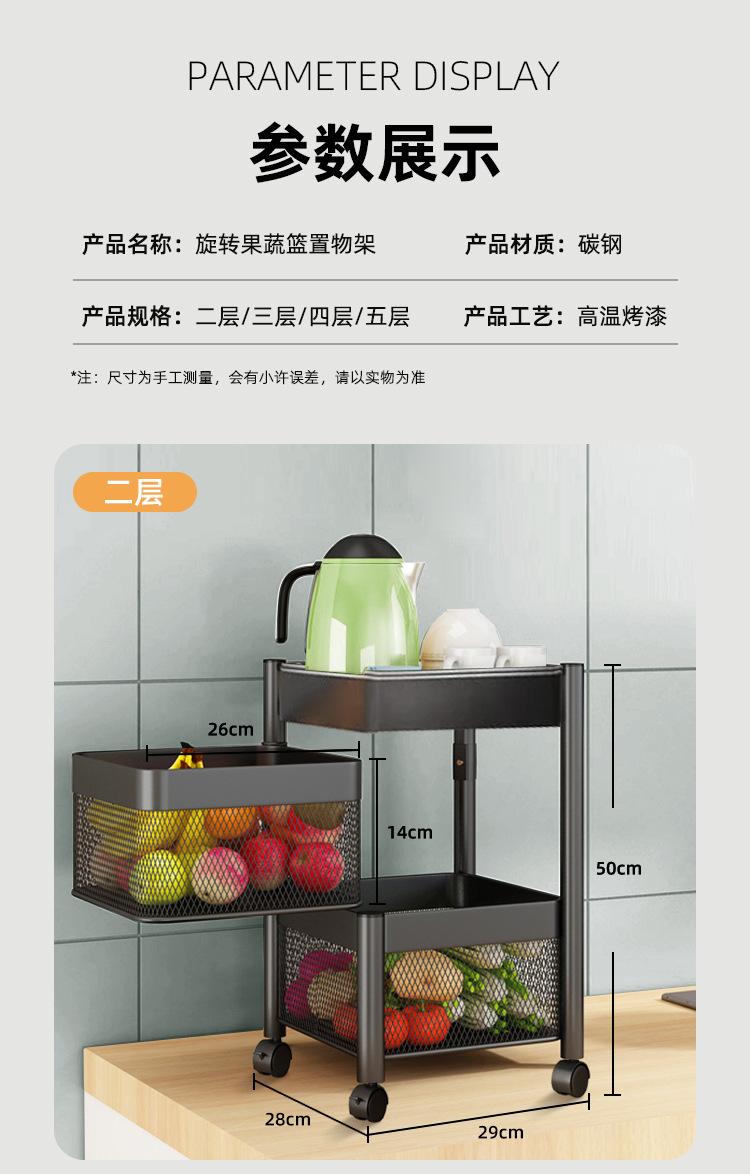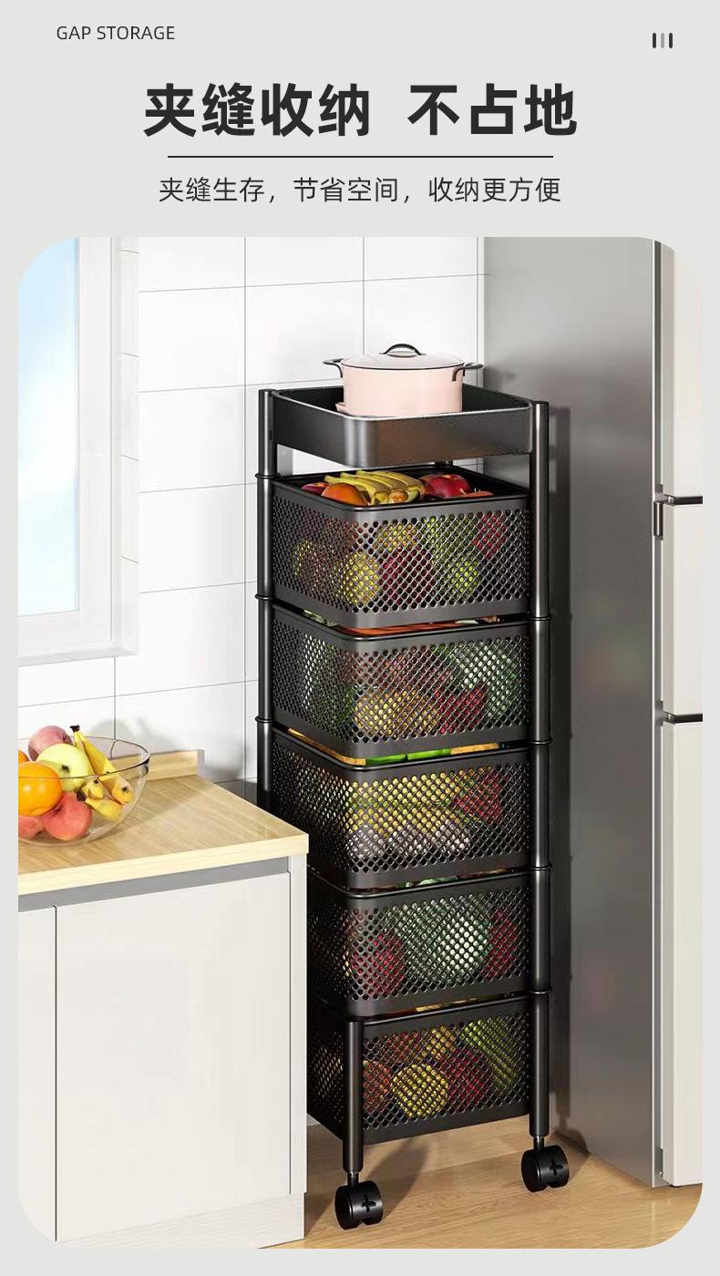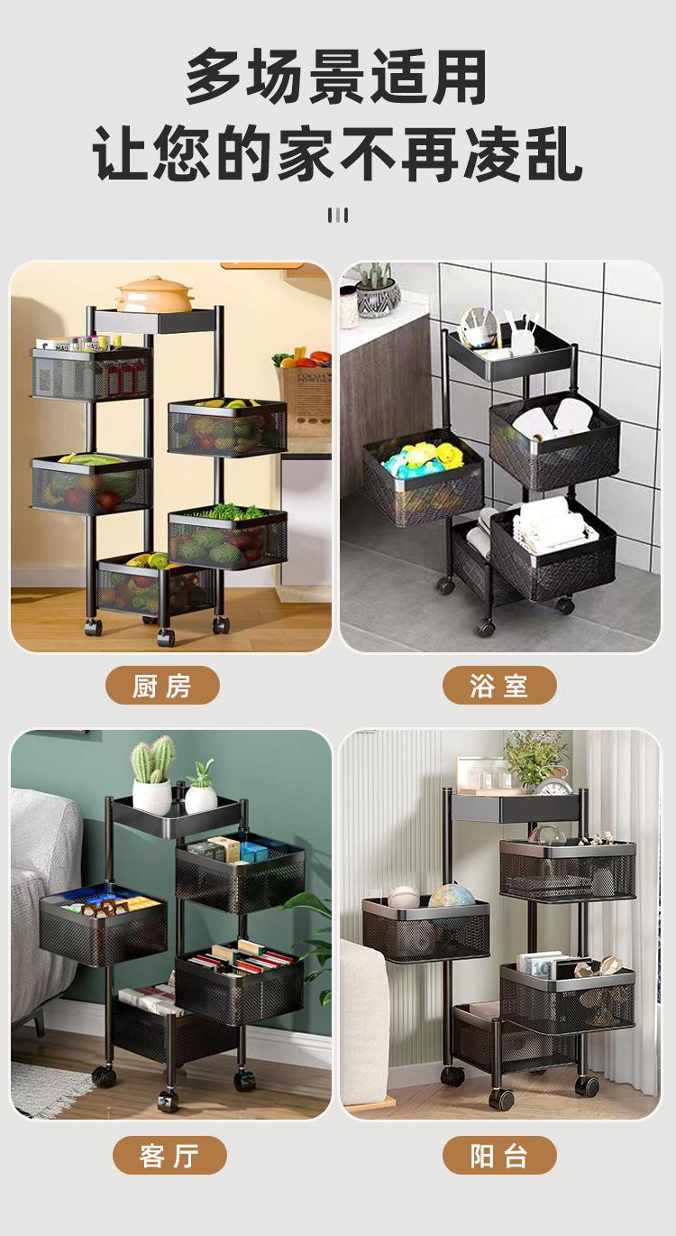 Estante de Almacenamiento Sin Instalación para el Hogar Acero al Carbono Estante para Verduras de Pie Móvil Multicapa Cuadrado Cocina Estante de Almacenamiento Giratorio