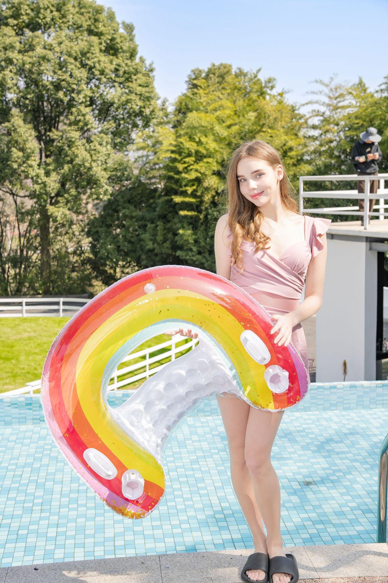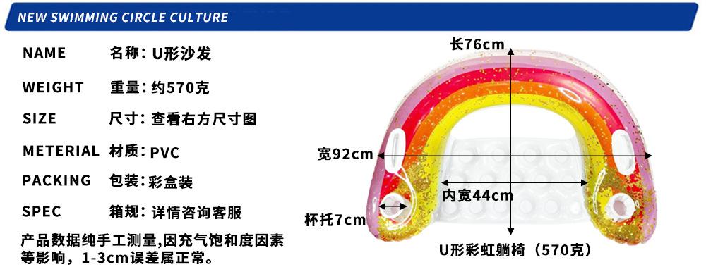 Pareja transfronteriza en stock inflable agua lentejuelas arcoíris reclinable en forma de U fila flotante de agua sofá hamaca anillo de natación engrosado