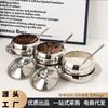 Tarro de condimentos integrado con tapa de cuchara, tarro de sal de vidrio sellado a prueba de humedad, juego de caja de condimentos de lujo ligero, tarro de azúcar MSG para cocina del hogar
