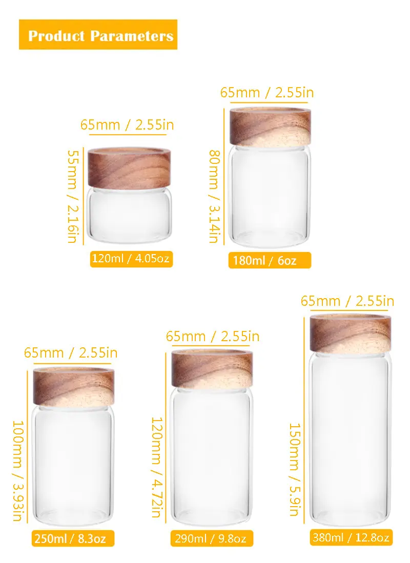 65*55 120ml, 65*80 180ml, 65*100 250ml, 65*120 290ml, 65*150 380ml, 80*60 250 ml, 80*80 300ml, 80*100 335ml, 8...