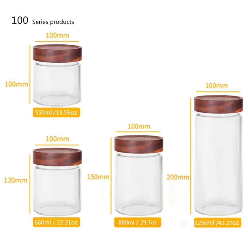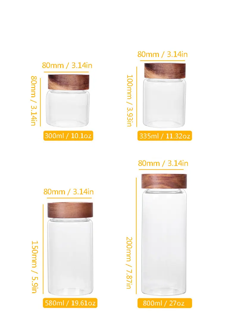 Frasco de Almacenamiento de Vidrio Roscado de Madera de Acacia Engrosada Botella de Miel Frasco para Empaque de Alimentos Botella de Almacenamiento de Vidrio Transparente Grande