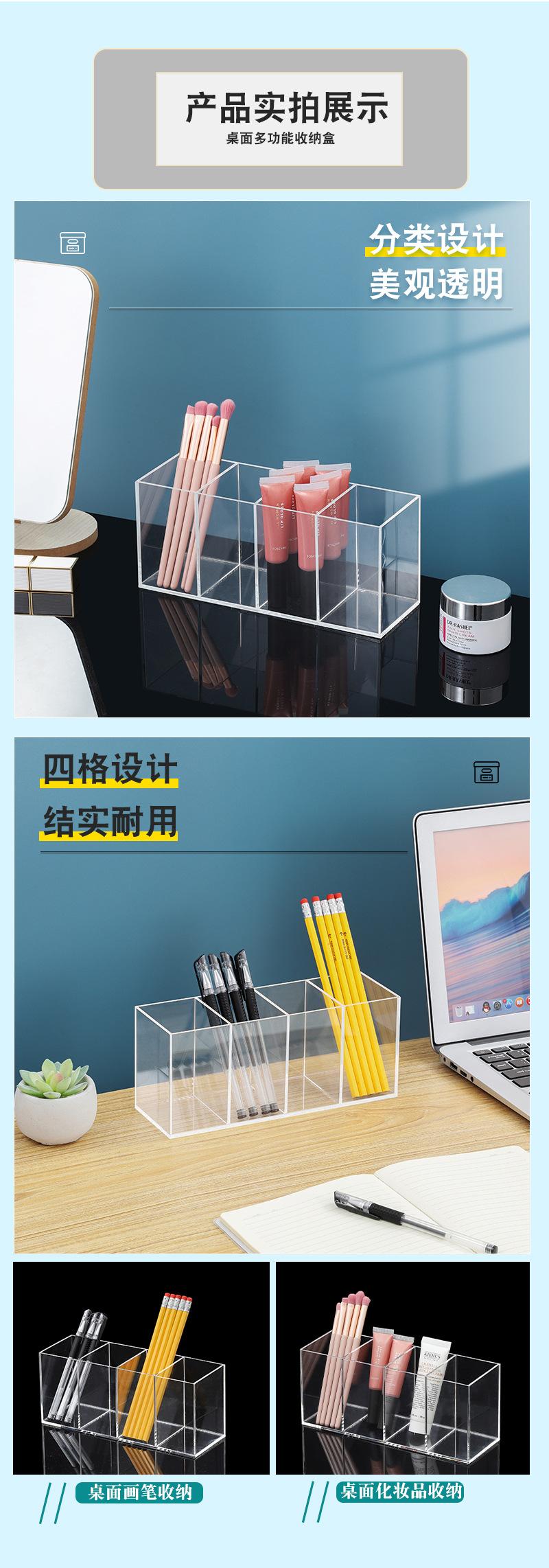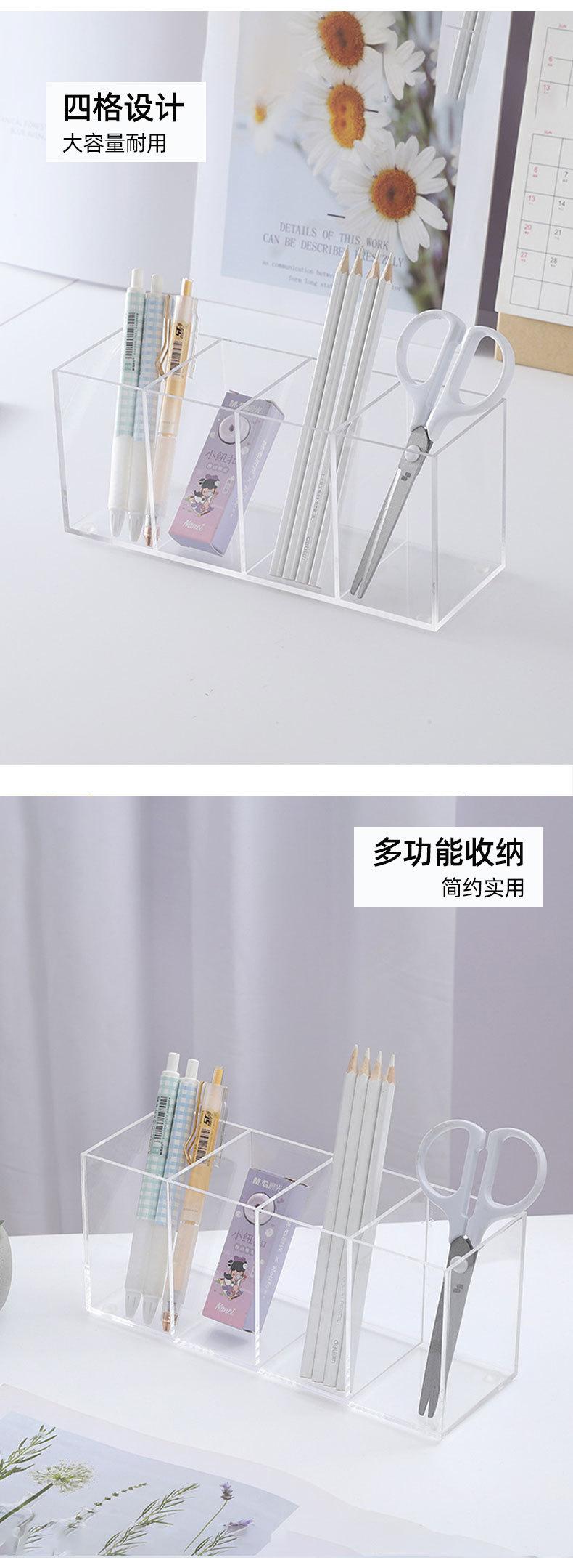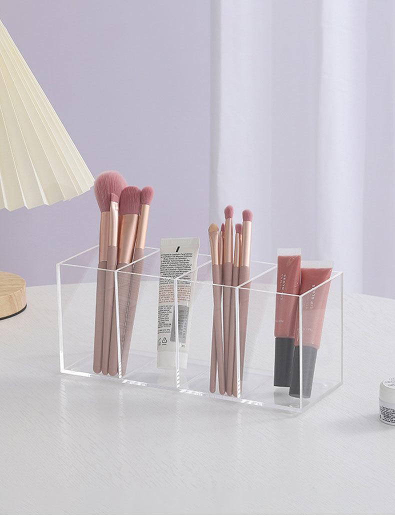 Organizador Acrílico para Bolígrafos, Caja de Almacenamiento de Cuatro Compartimentos, Organizador de Escritorio para Brochas de Maquillaje y Cosméticos, Cajón con Compartimento, Almacenamiento para Tocador