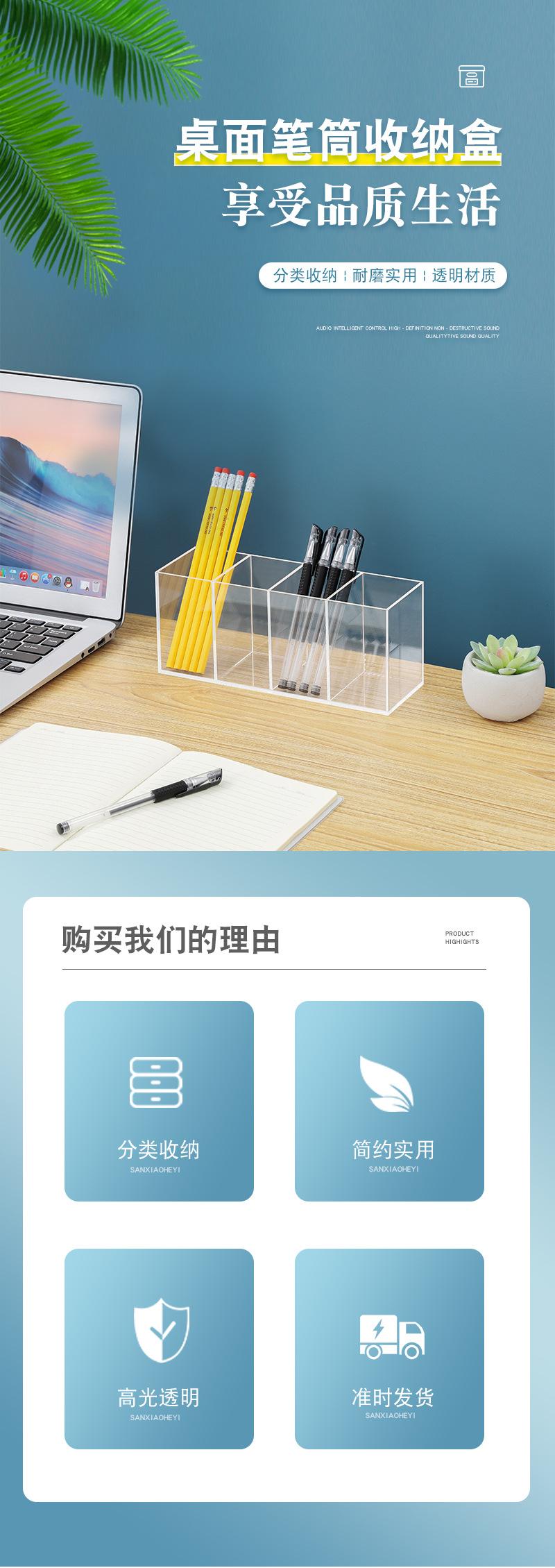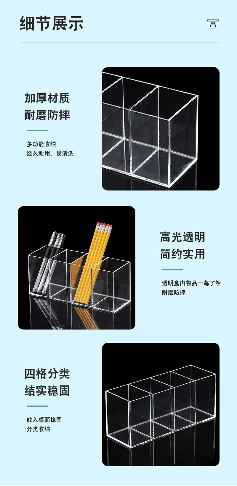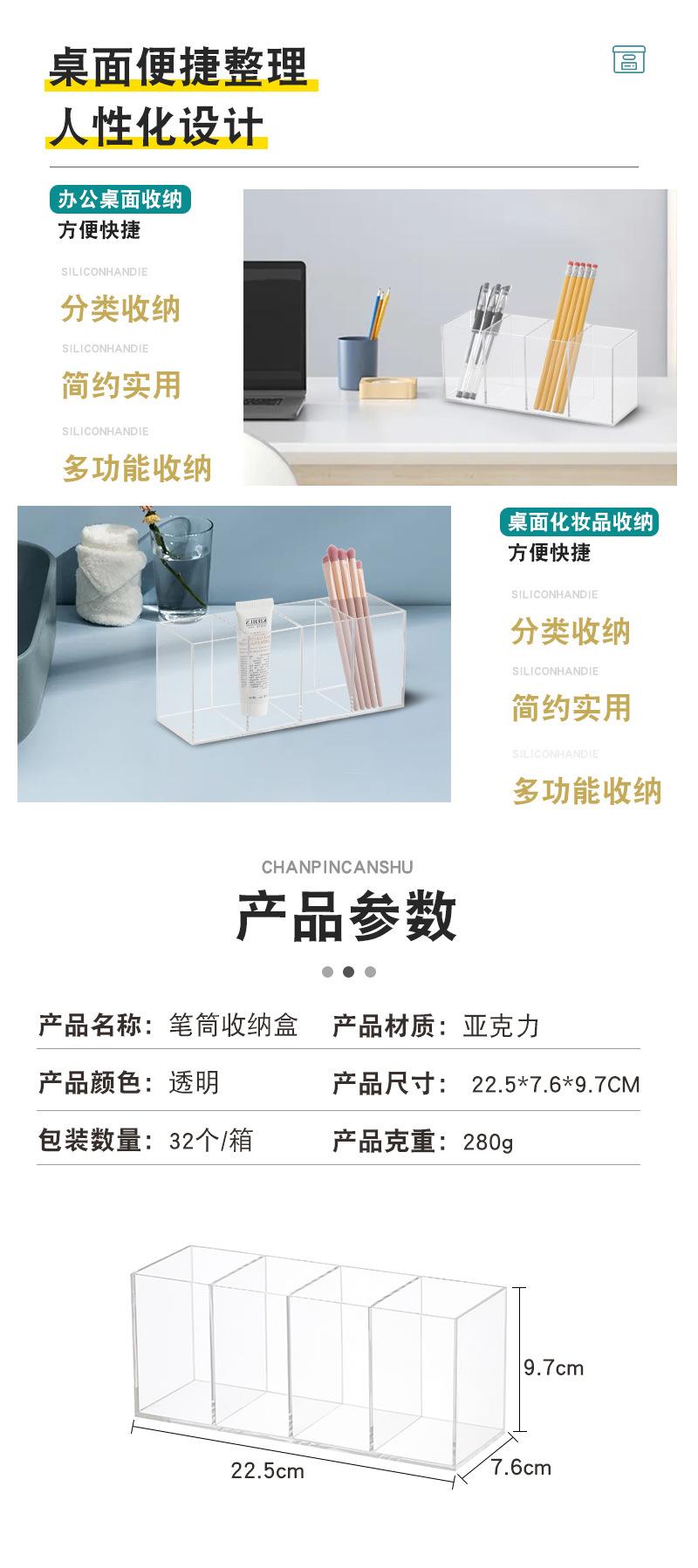Organizador Acrílico para Bolígrafos, Caja de Almacenamiento de Cuatro Compartimentos, Organizador de Escritorio para Brochas de Maquillaje y Cosméticos, Cajón con Compartimento, Almacenamiento para Tocador