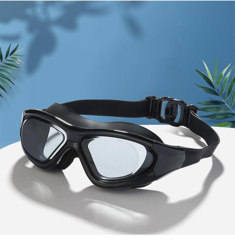 | Gafas de natación con tapones para los oídos, gafas de natación antivaho de alta definición integradas para adultos, hombres y mujeres, gafas de buceo galvanizadas con marco grande, gafas de natación |