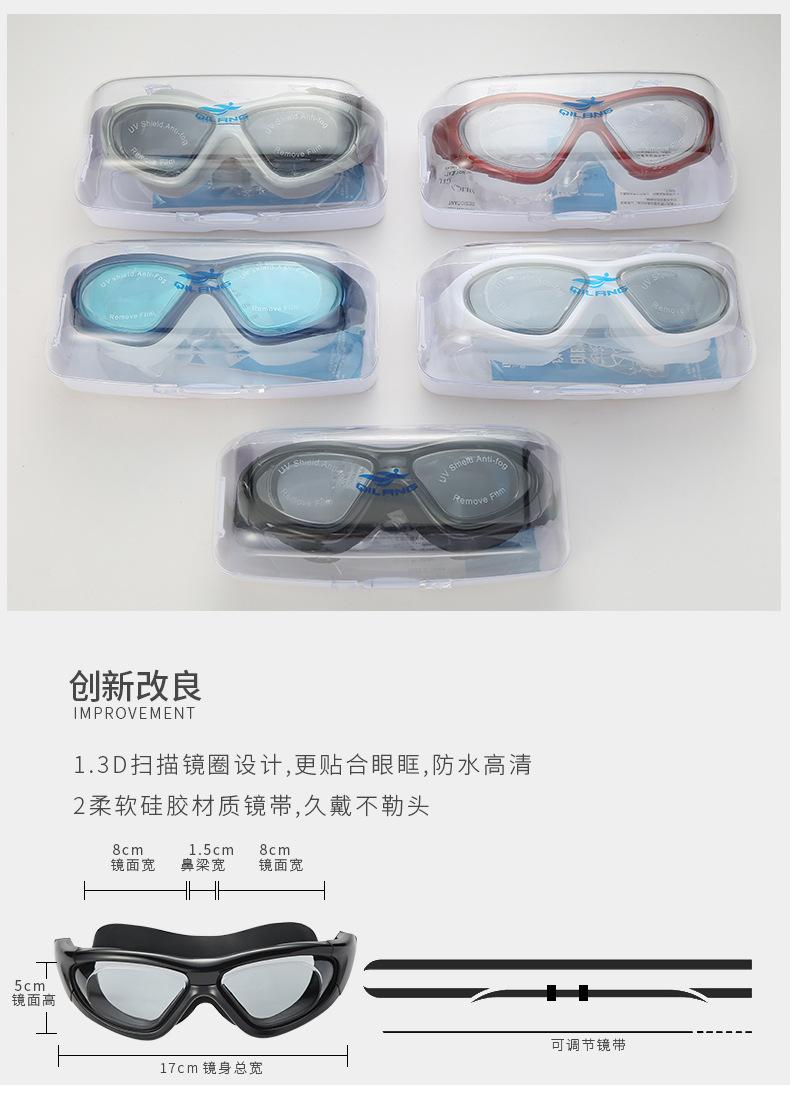 Gafas de natación Qilang HD impermeables y antivaho transparentes para adolescentes y adultos, gafas de buceo planas para hombres y mujeres en caja con logotipo impreso |