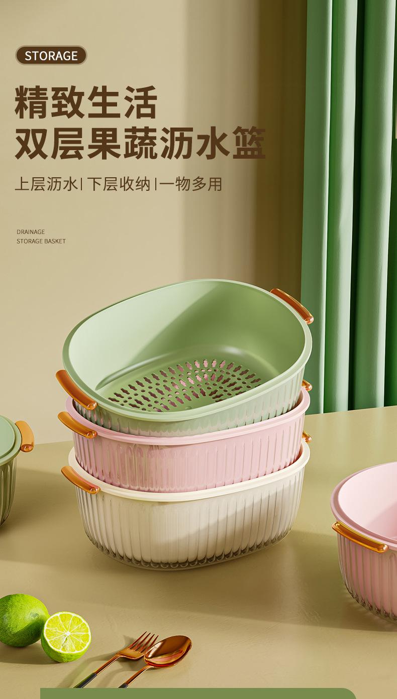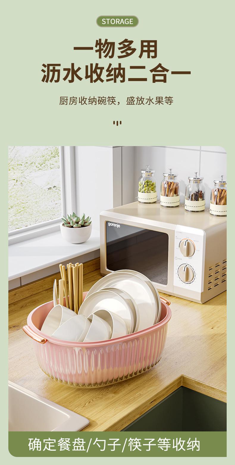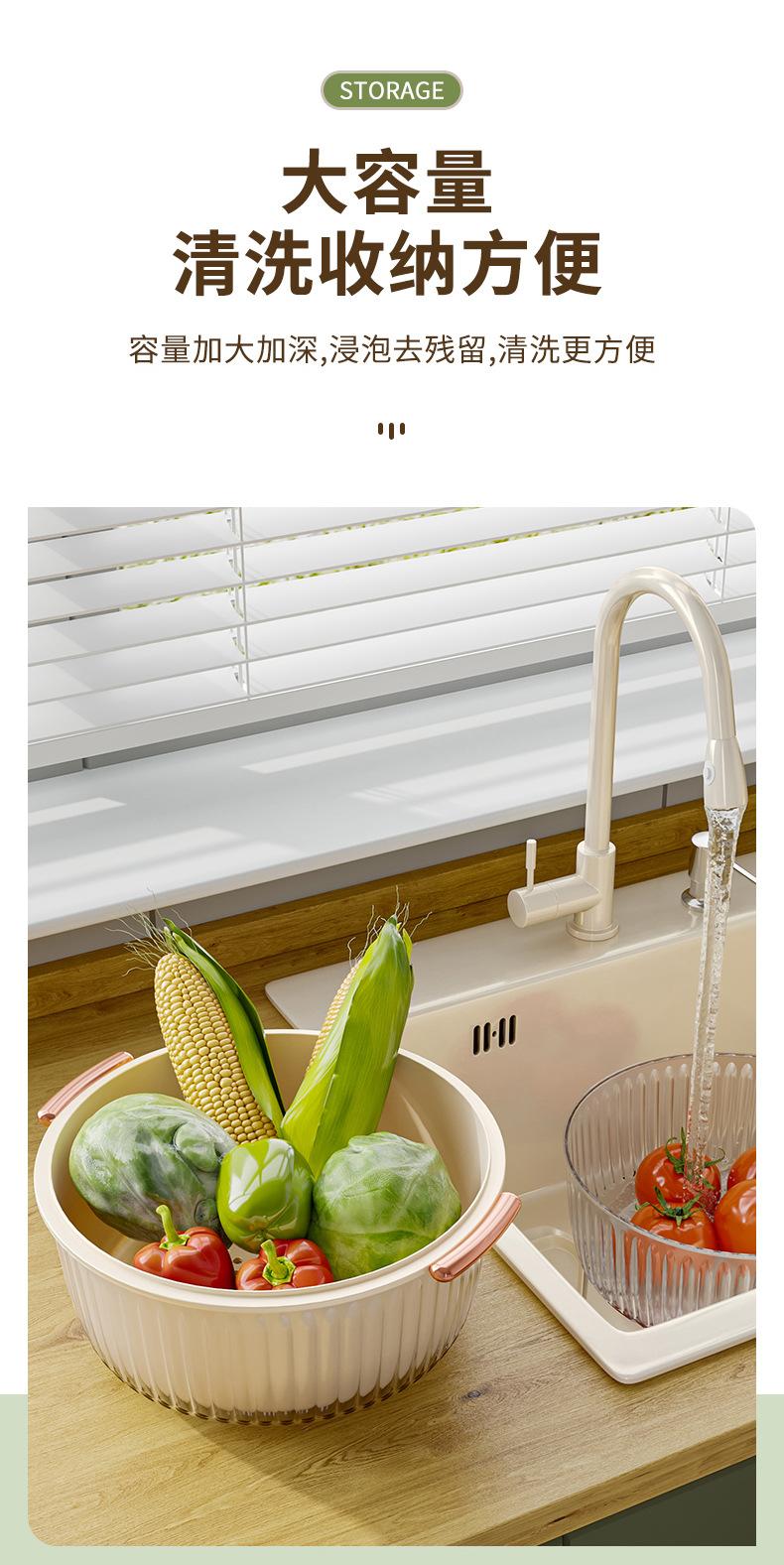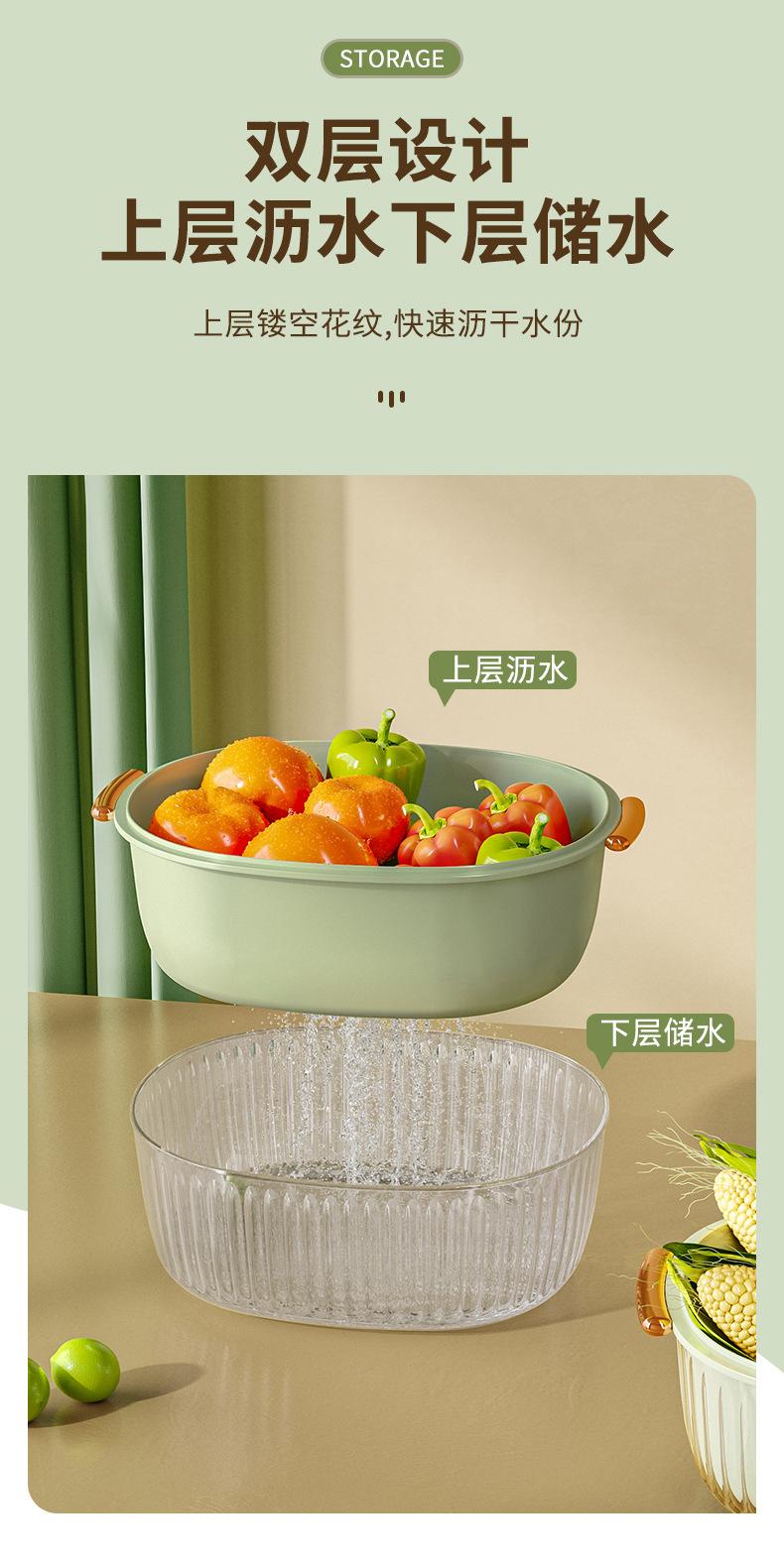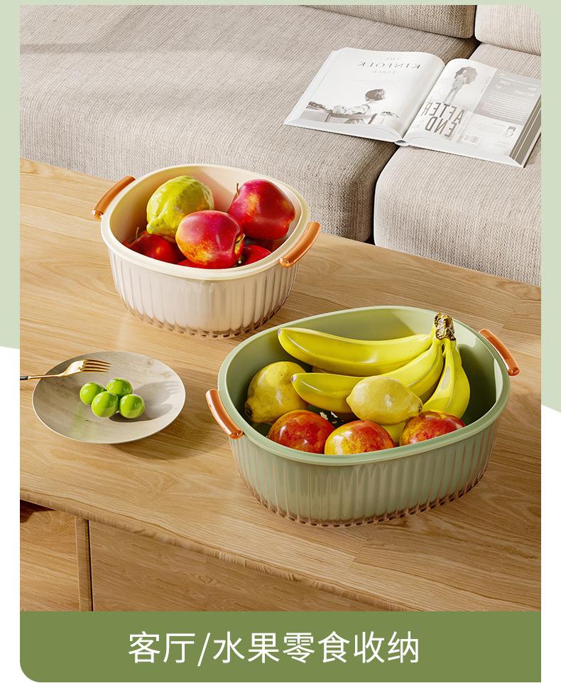 Fregadero Grande para Verduras para Cocina Casera y Sala de Estar Plato de Frutas de Plástico Artefacto para Lavar Verduras Cesta de Drenaje Simple Redonda de Doble Capa