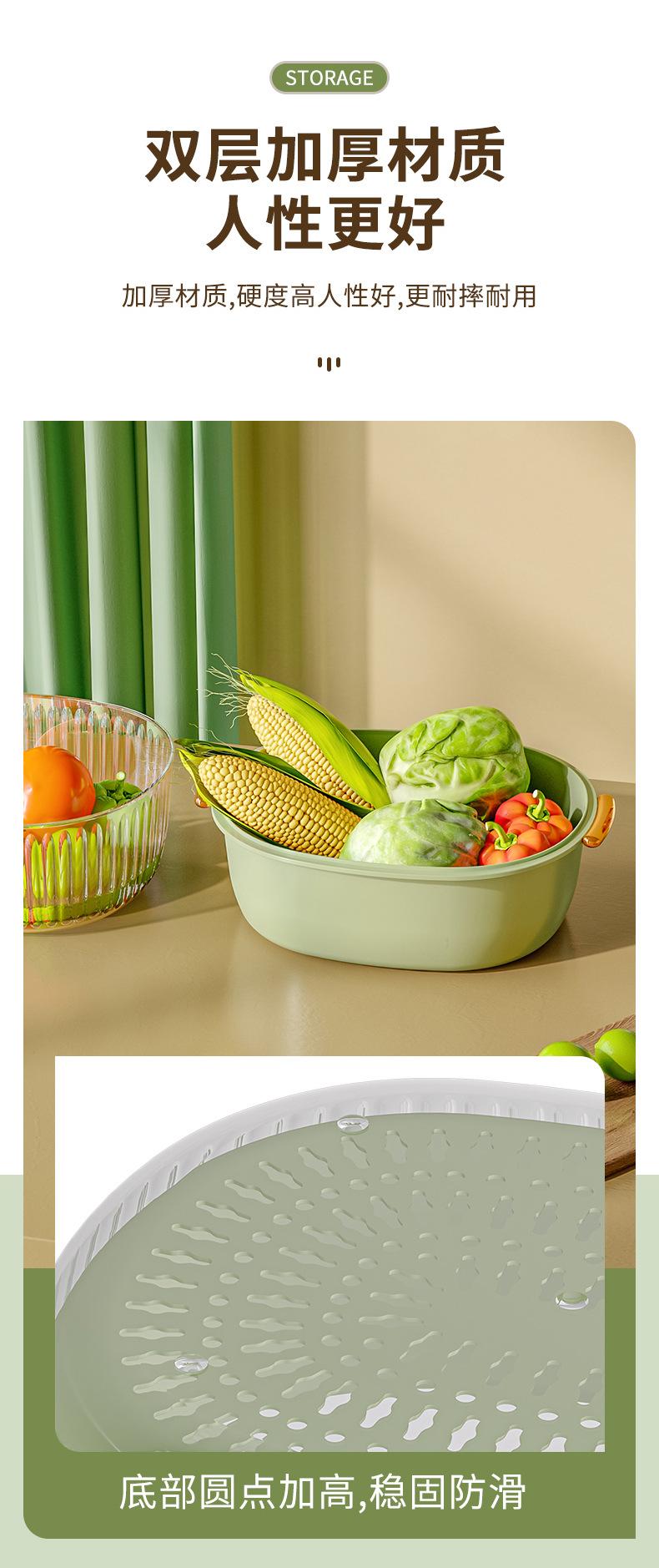 Tazón Grande para Lavar Verduras Hogar Cocina Sala de Estar Plástico Plato de Fruta Artefacto Simple Redondo de Doble Capa Cesta de Drenaje Tazón para Lavar Verduras Plato de Fruta Cesta de Drenaje