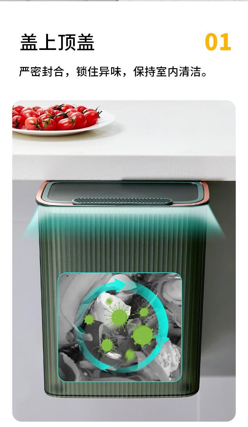 Cubo de basura de cocina colgante, cesta de papel higiénico para el hogar, sala de estar, con tapa, cubo de almacenamiento de residuos de cocina montado en la pared