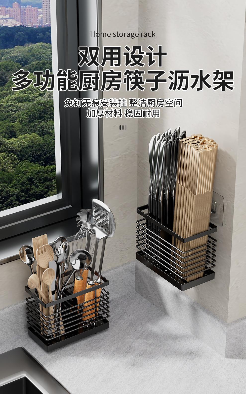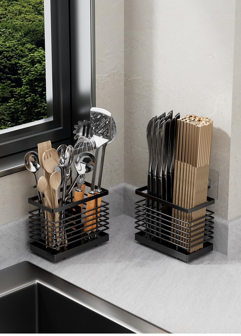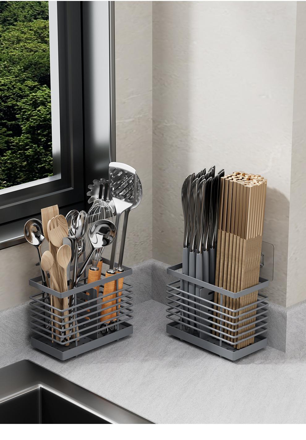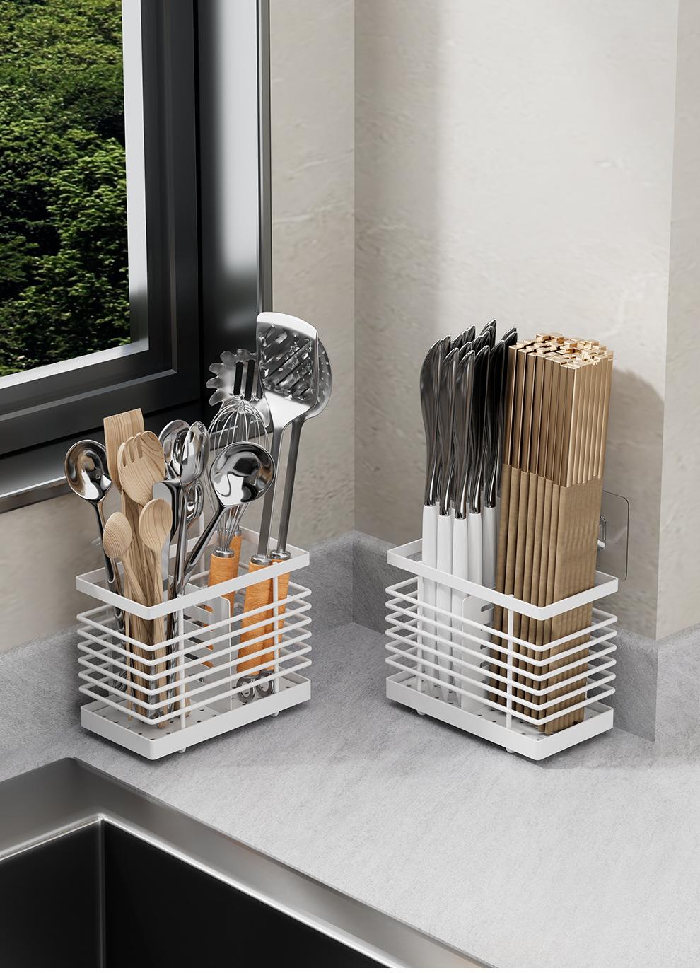 Soporte para Palillos Montado en la Pared Cubo para Palillos Multifuncional Soporte para Cucharas Cocina Escurridor Tubo para Palillos Caja de Almacenamiento Utensilios de Cocina