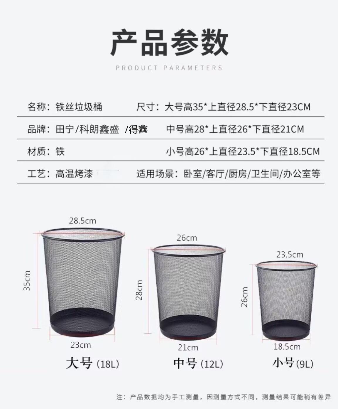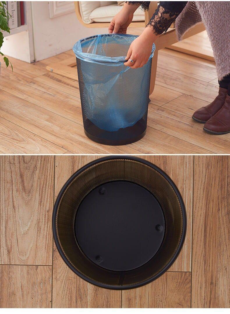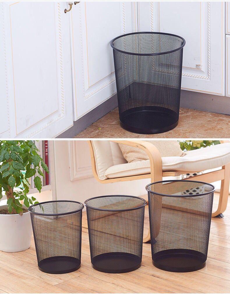 Bote de basura de malla de hierro engrosado antioxidante, bote de basura de metal para el hogar, bote de basura de alambre de púas para oficina, baño sin tapa