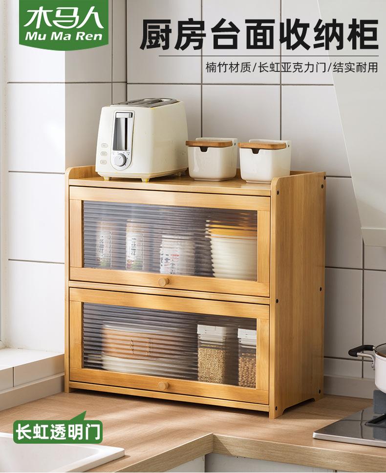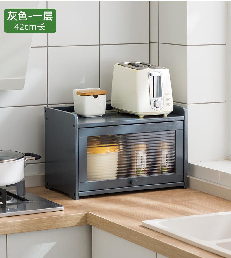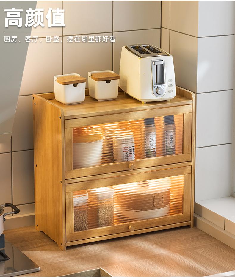 Estante de almacenamiento para condimentos de superficie de mesa de cocina, estante de fijación de suministros, gabinete de almacenamiento multifuncional en capas, artefacto de gabinete