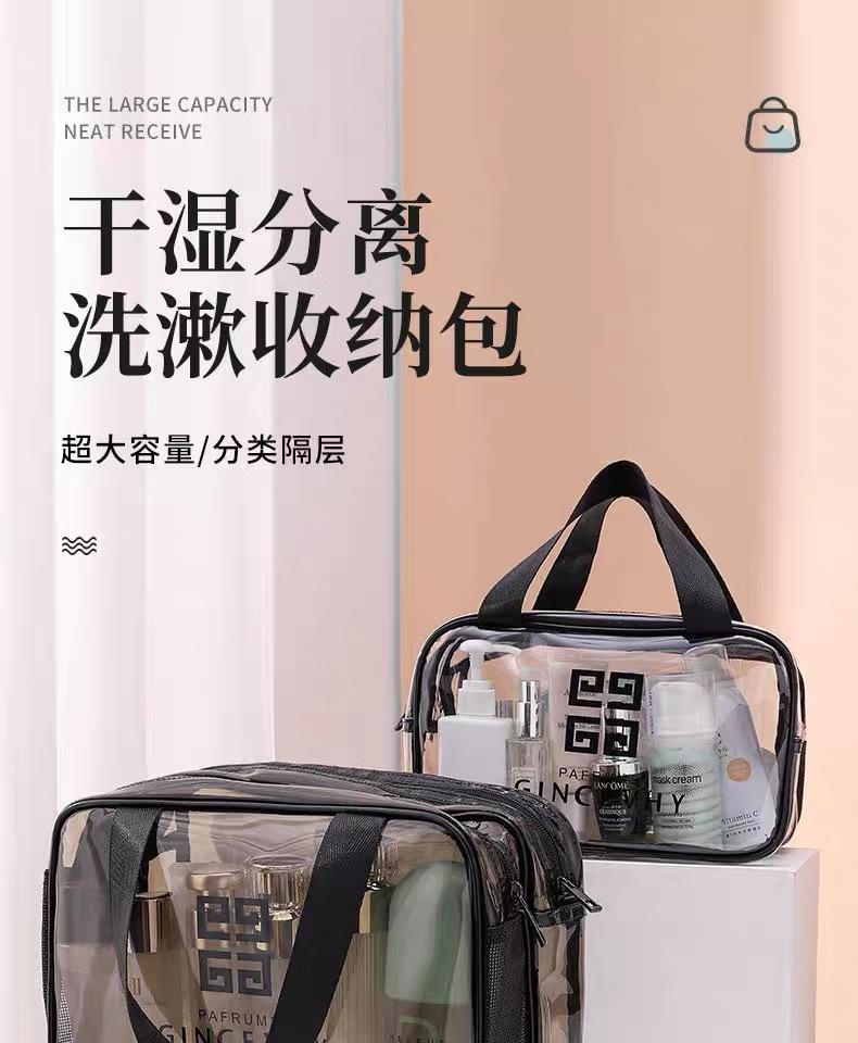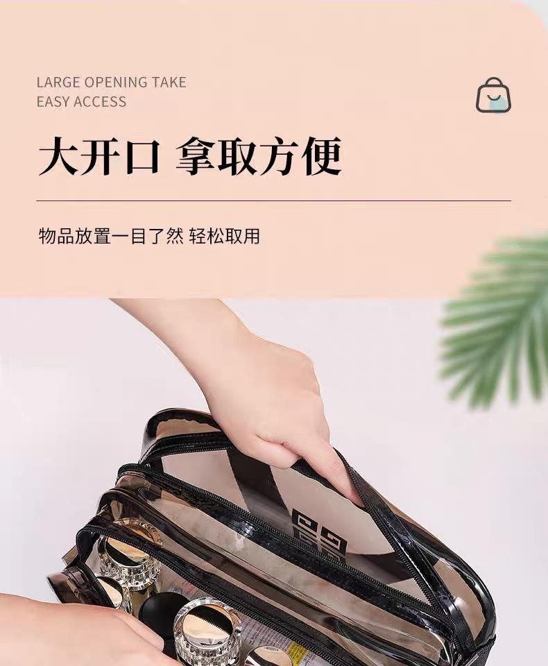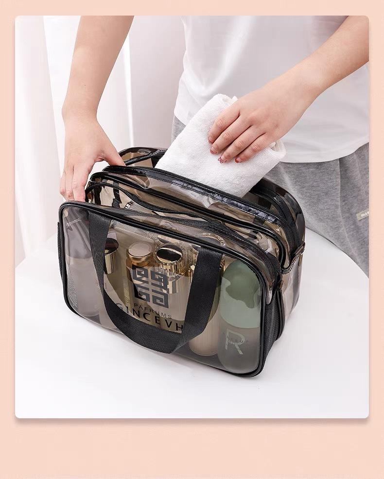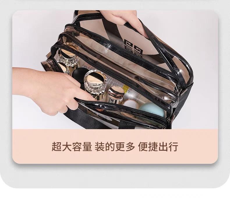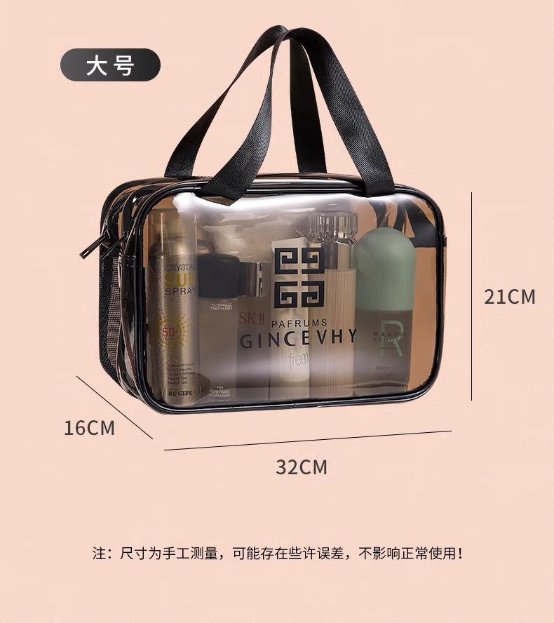 Bolsa de cosméticos portátil transparente de gran capacidad, bolsa de almacenamiento para cosméticos, bolsa de viaje para lavado en seco y húmedo, venta al por mayor