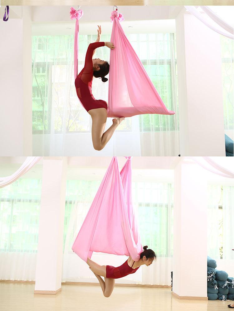 Hamaca de yoga aérea antigravedad para estudio de yoga, elástica, para interiores, con tela de satén elástica.