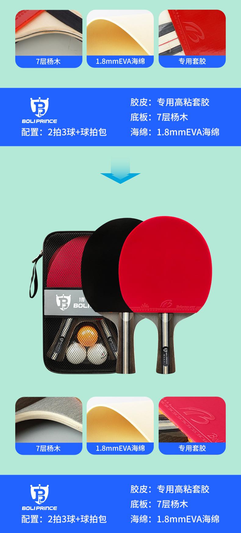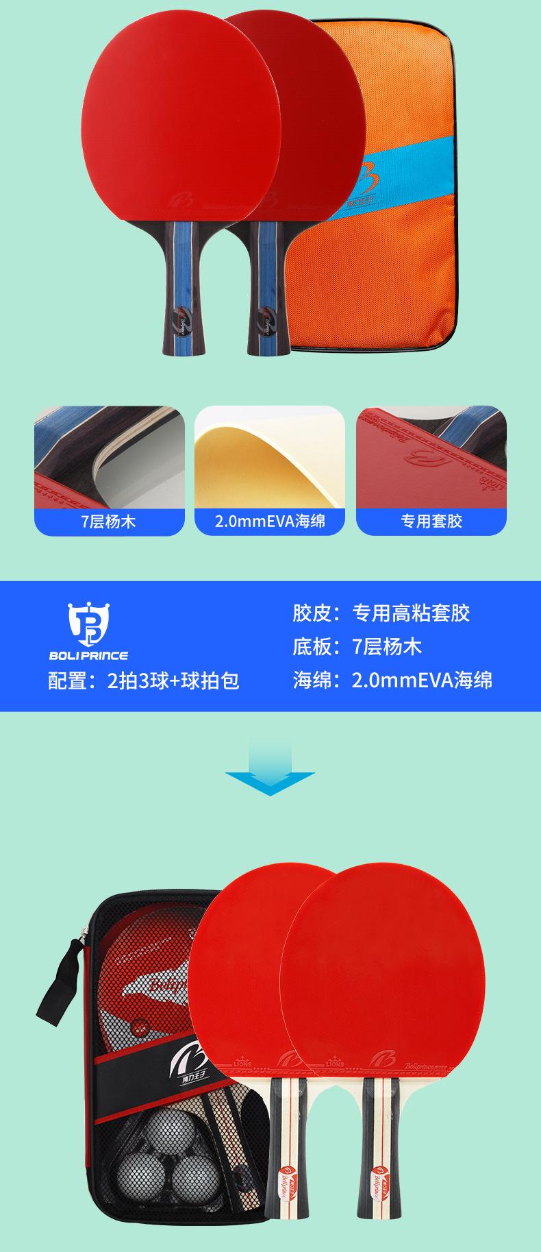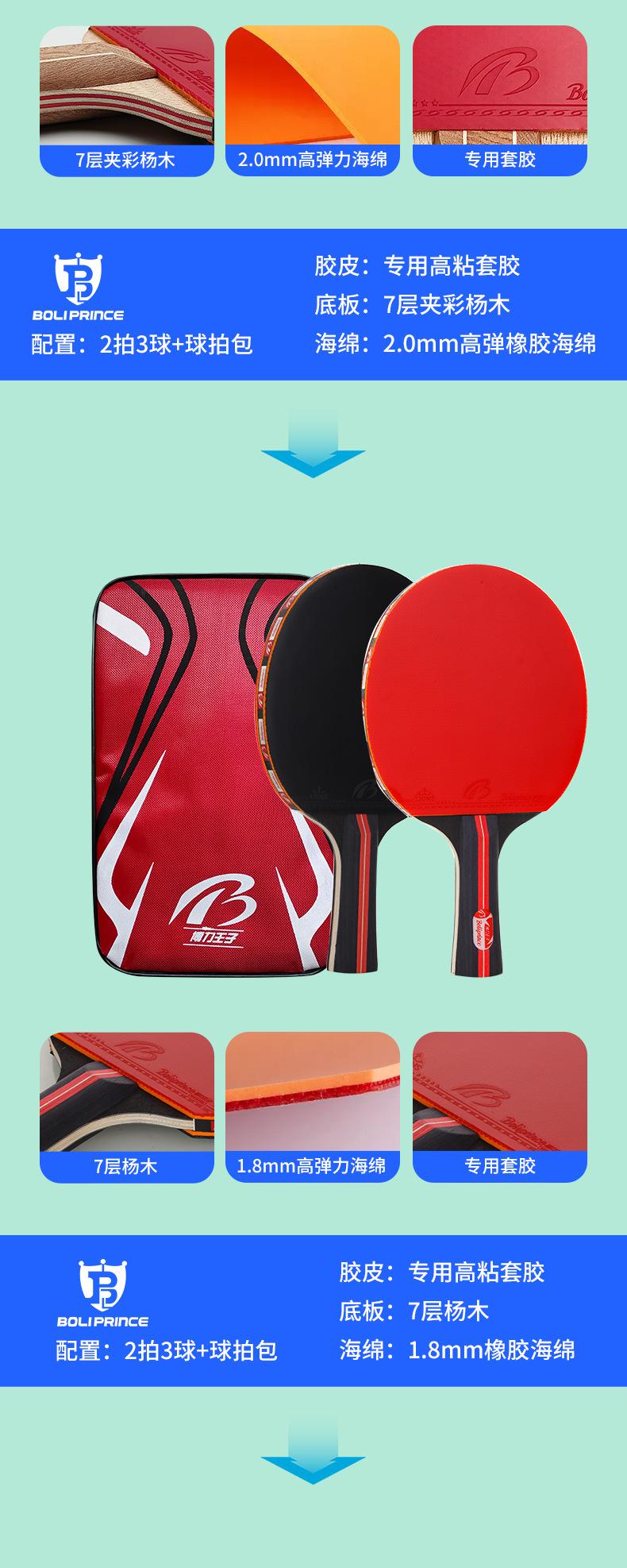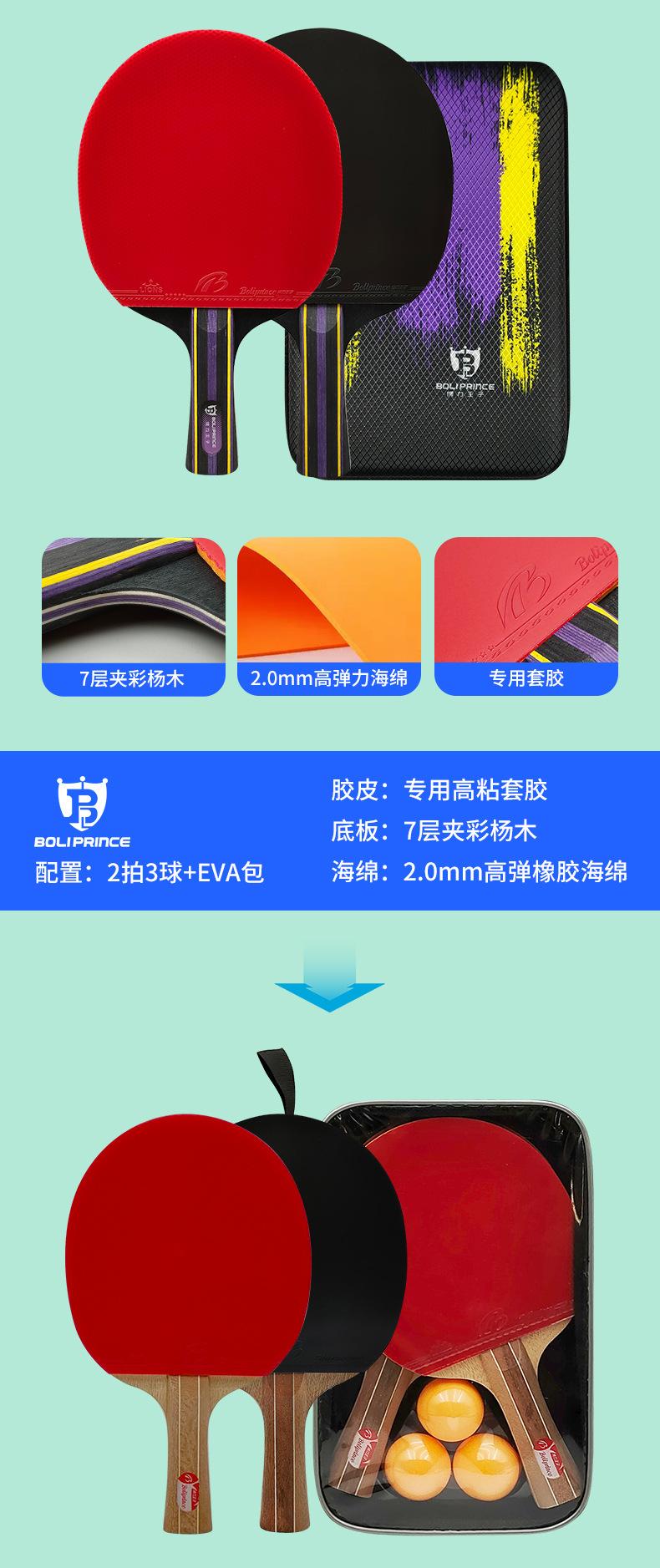 Los estudiantes practican raqueta de moda, raqueta horizontal, raqueta de tenis de mesa, entrenamiento para principiantes, juego de raquetas de tenis de mesa al por mayor, Prince Boli