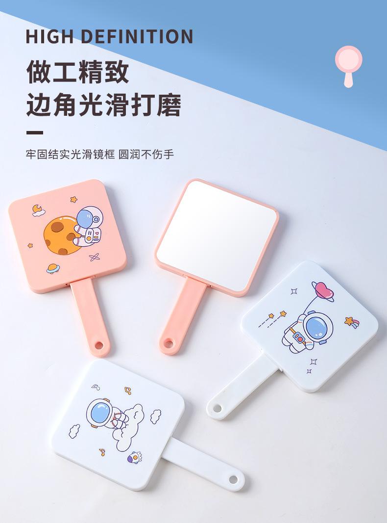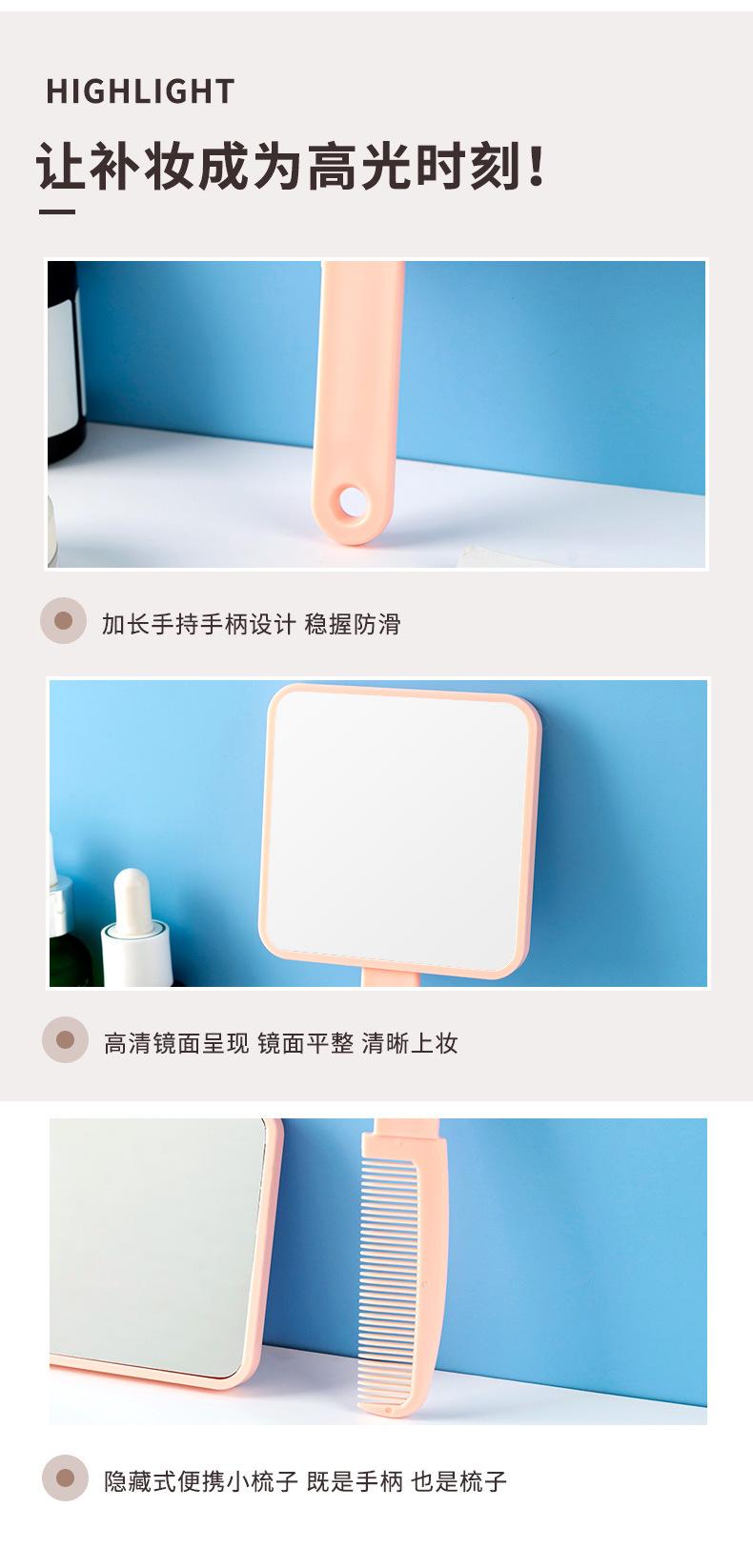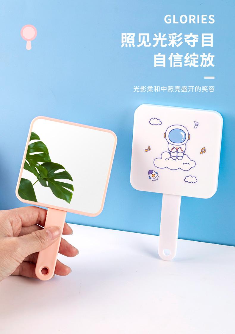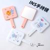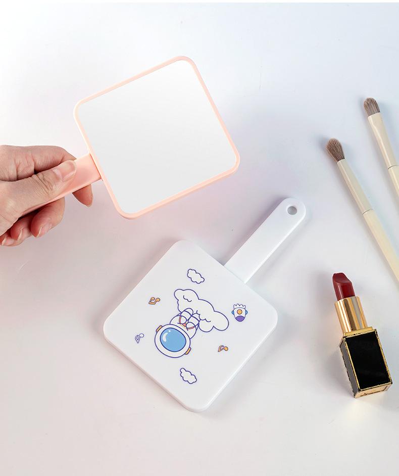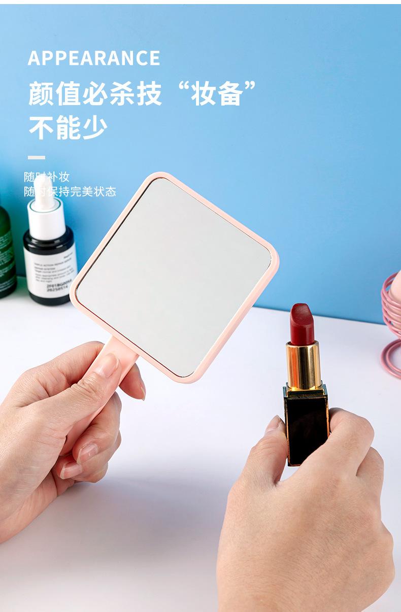 Espejo de maquillaje de mano portátil lindo con mango espejo pequeño portátil cuadrado para estudiantes