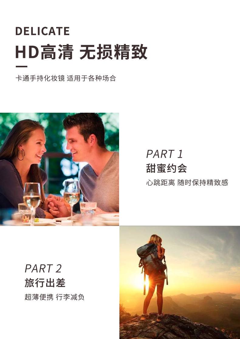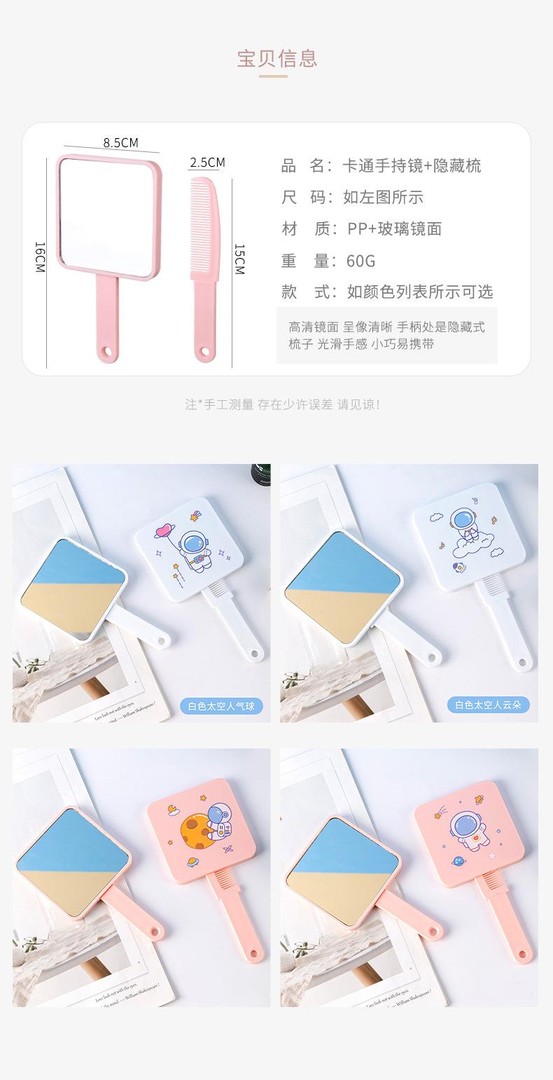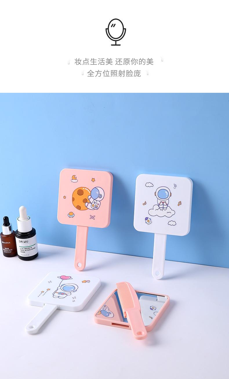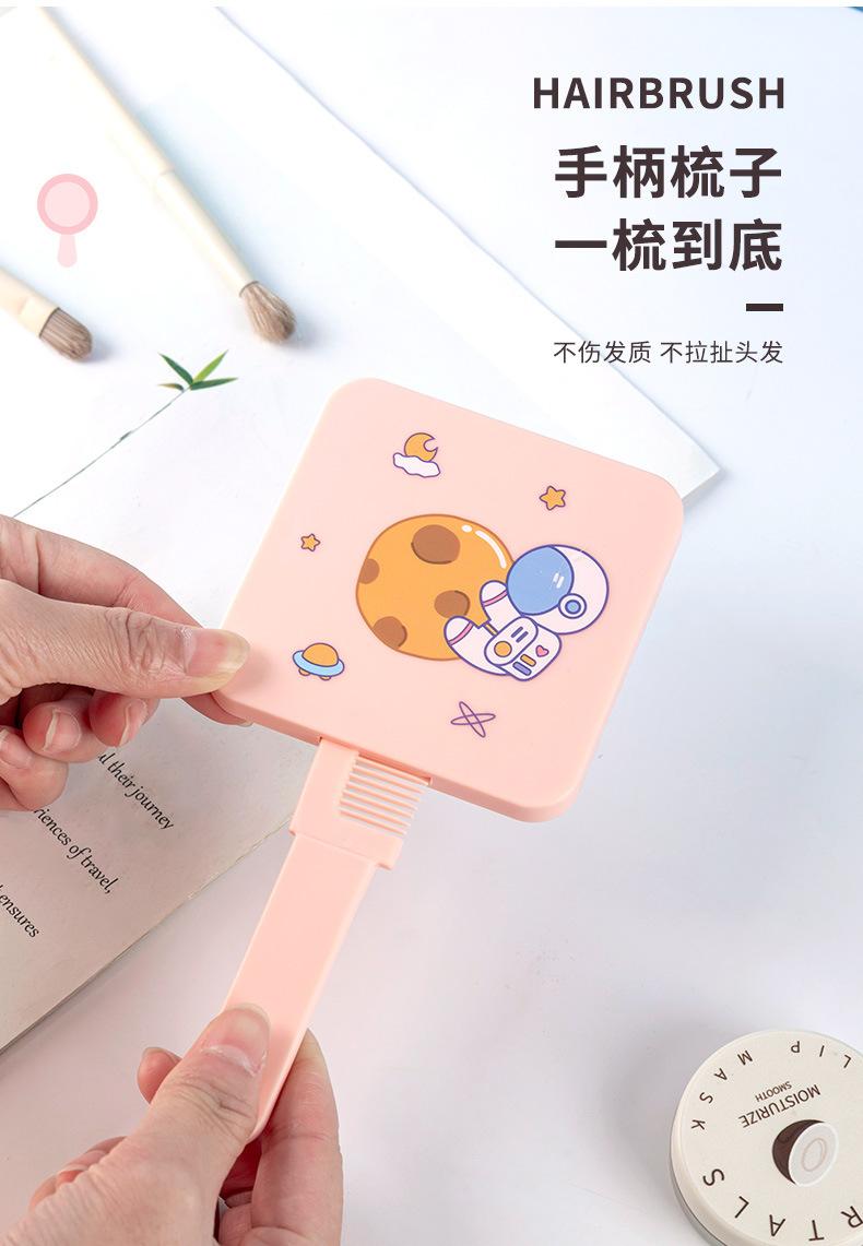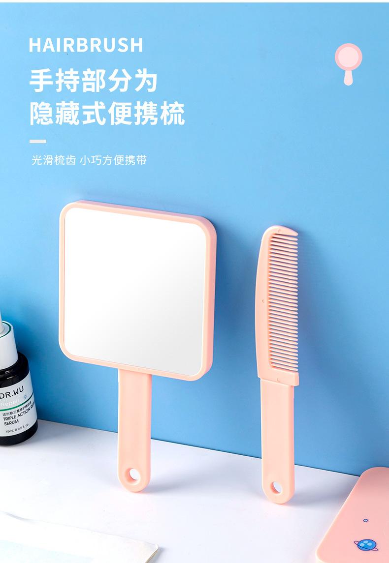 Espejo de maquillaje de mano portátil lindo con mango espejo pequeño portátil cuadrado para estudiantes