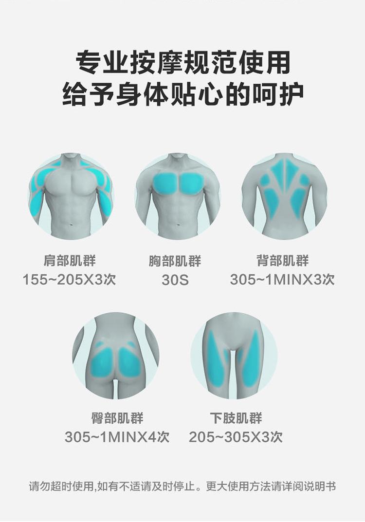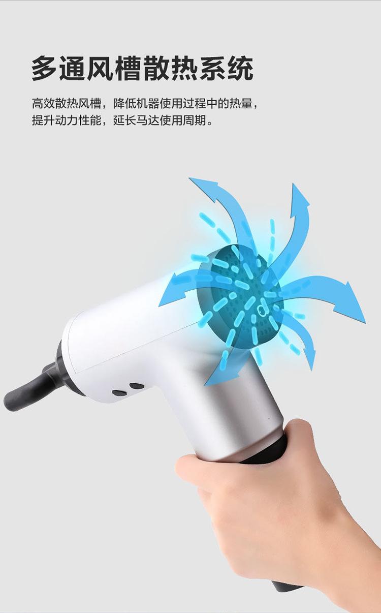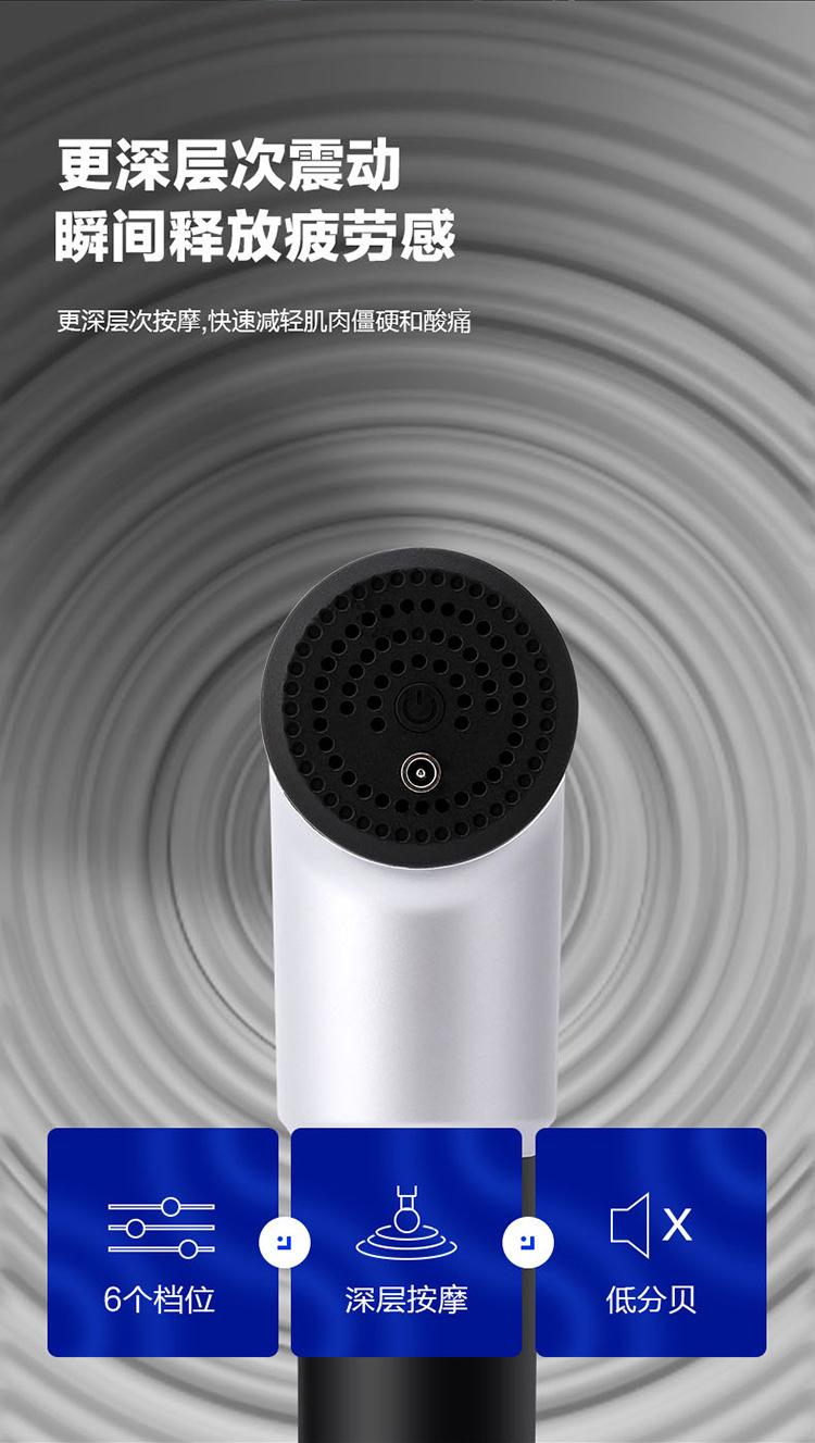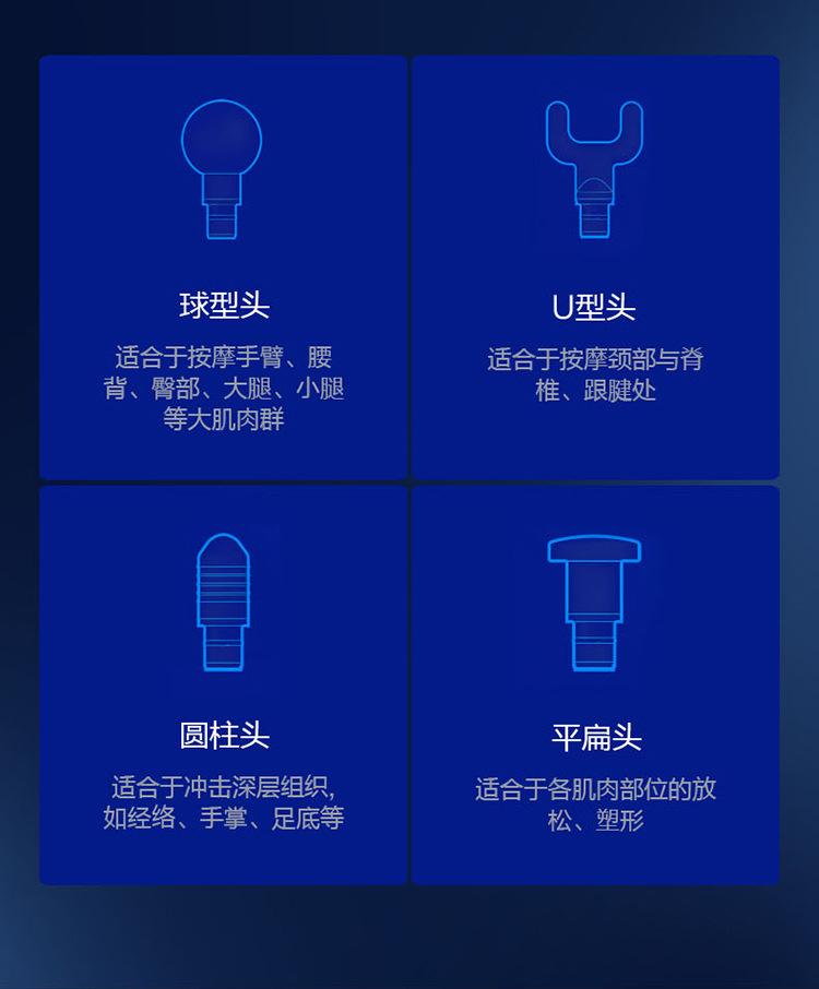 Masaje profundo de alta frecuencia de seis velocidades, cuatro cabezales de masaje reemplazables.