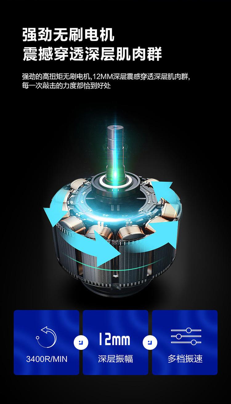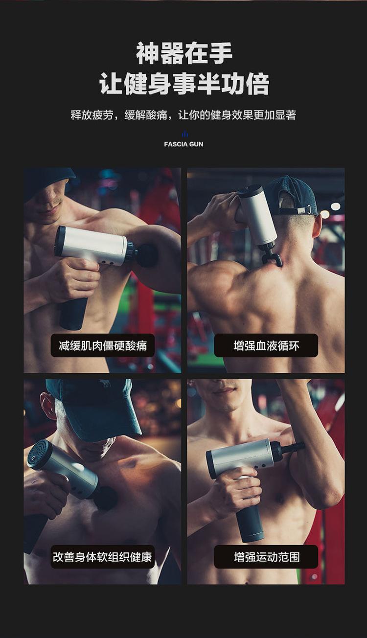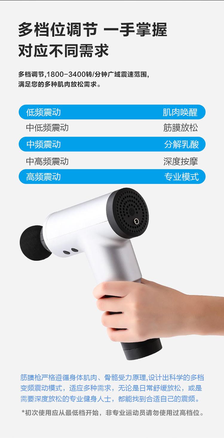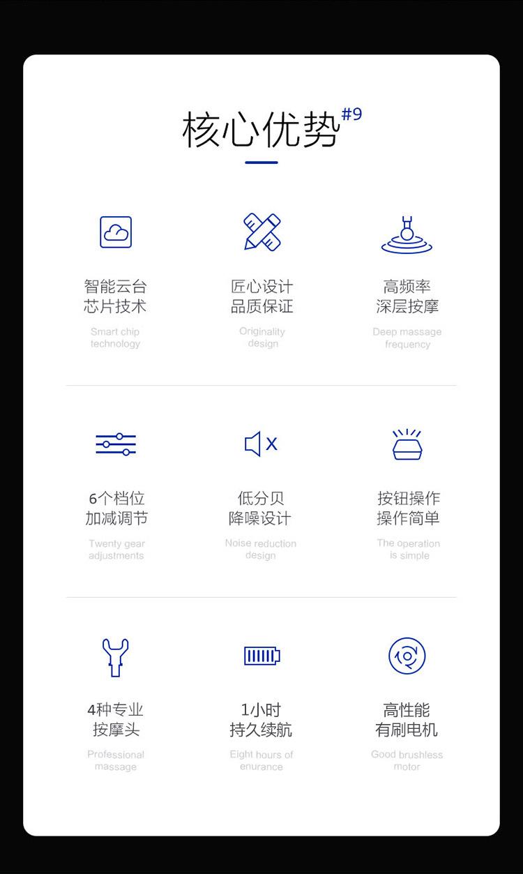 Masaje profundo de alta frecuencia de seis velocidades, cuatro cabezales de masaje reemplazables.