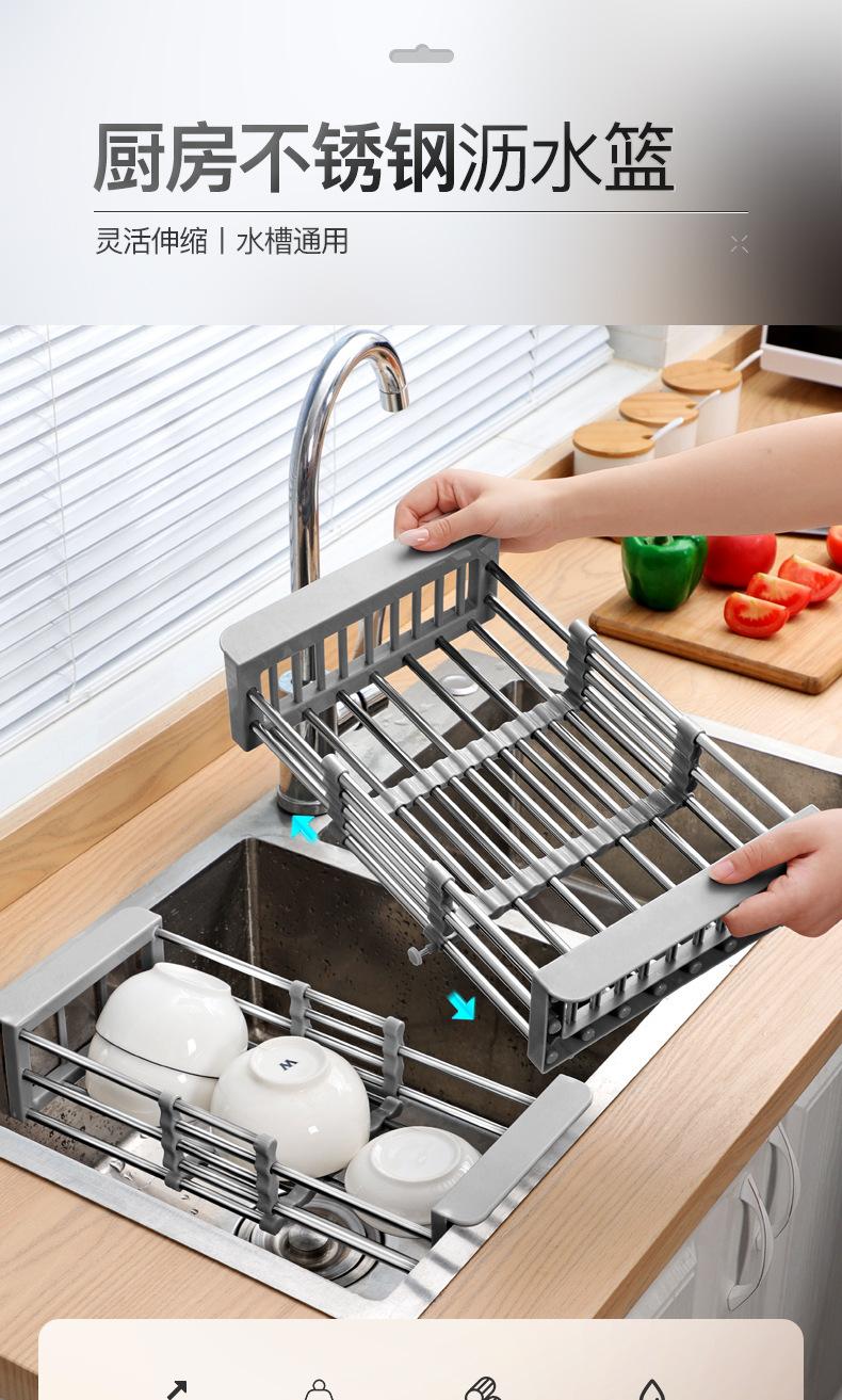 Escurridor de Cocina Doméstico de Acero Inoxidable para Fregadero, Estante para Vajilla, Cuencos y Palillos, Estante de Almacenamiento Retráctil, Hogar al Por Mayor