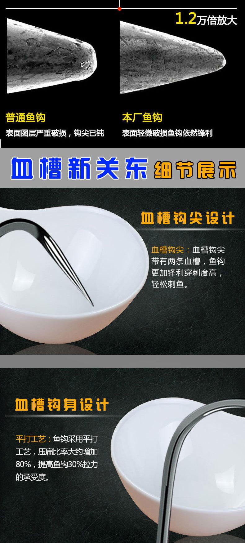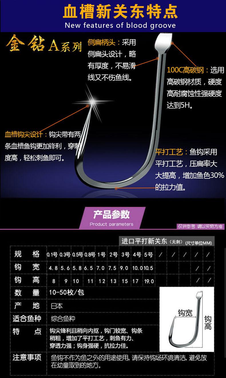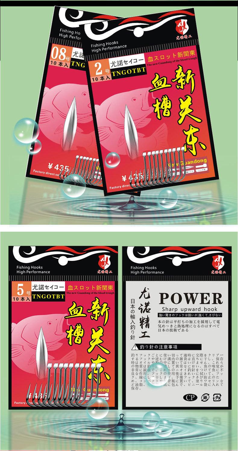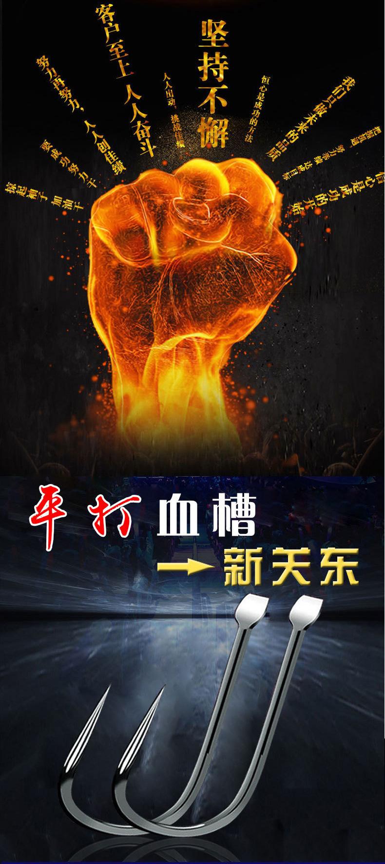 Manga: Este tipo de anzuelo no tiene púas. La punta es afilada, el mango es largo, el anzuelo es delgado y el cuerpo es ligero. Es adecuado para peces pequeños que se alimentan por succión. Es rápido de atrapar y de morder. Se utiliza principalmente para capturar carpas blancas, pequeños peces blancos, etc.