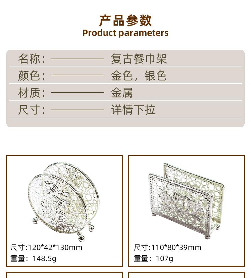 Portapañuelos Retro Hueco de Metal Hotel de Alta Gama Café Restaurante Caja de Pañuelos Soporte para Servilletas Fabricante Diseño al por Mayor