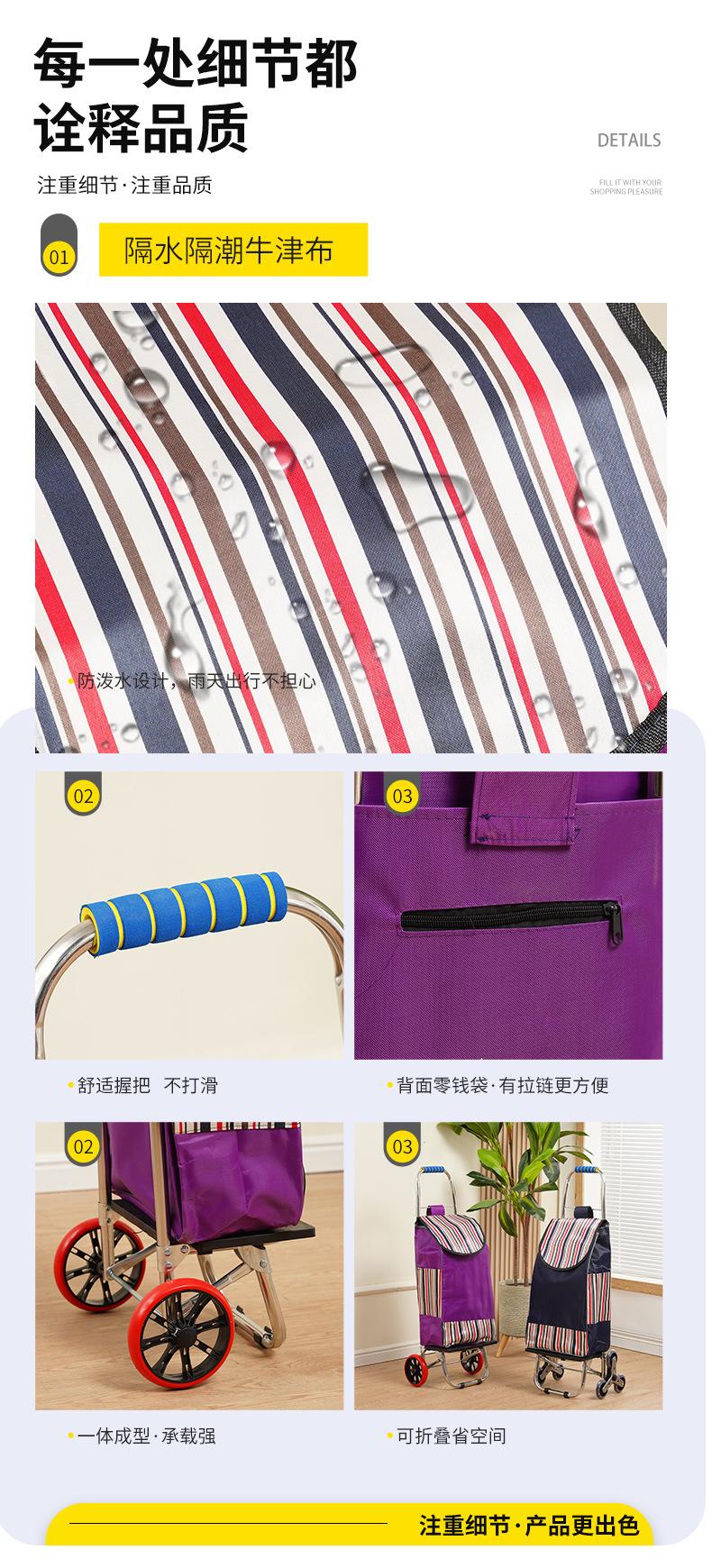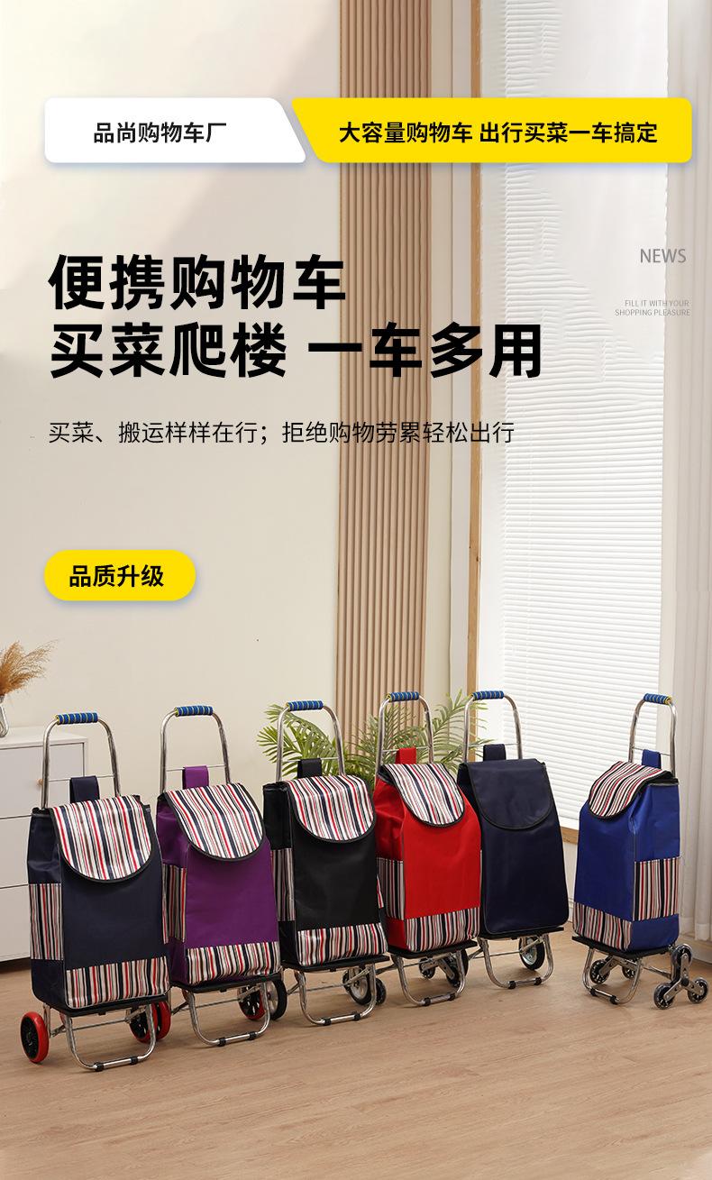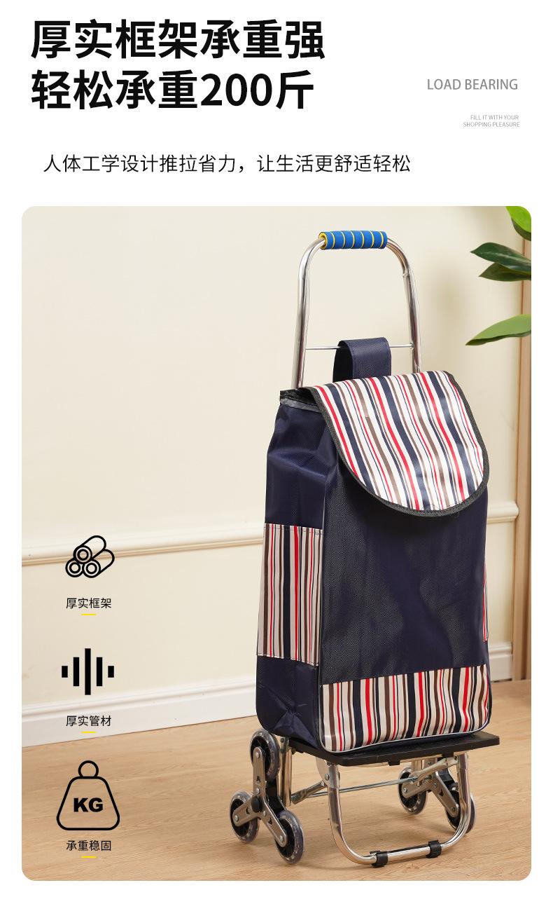 Carrito de Compras de Acero Inoxidable, Carrito Portátil, Carrito de Compras de Supermercado, Carrito para Subir Escaleras para Ancianos, Carrito Ligero Plegable, Remolque